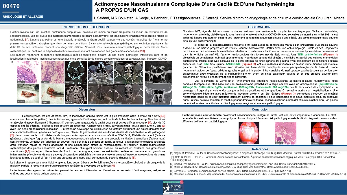 Actinomycose naso-sinusienne, sphénoïdite aigüe compliquée, infection post COVID-19