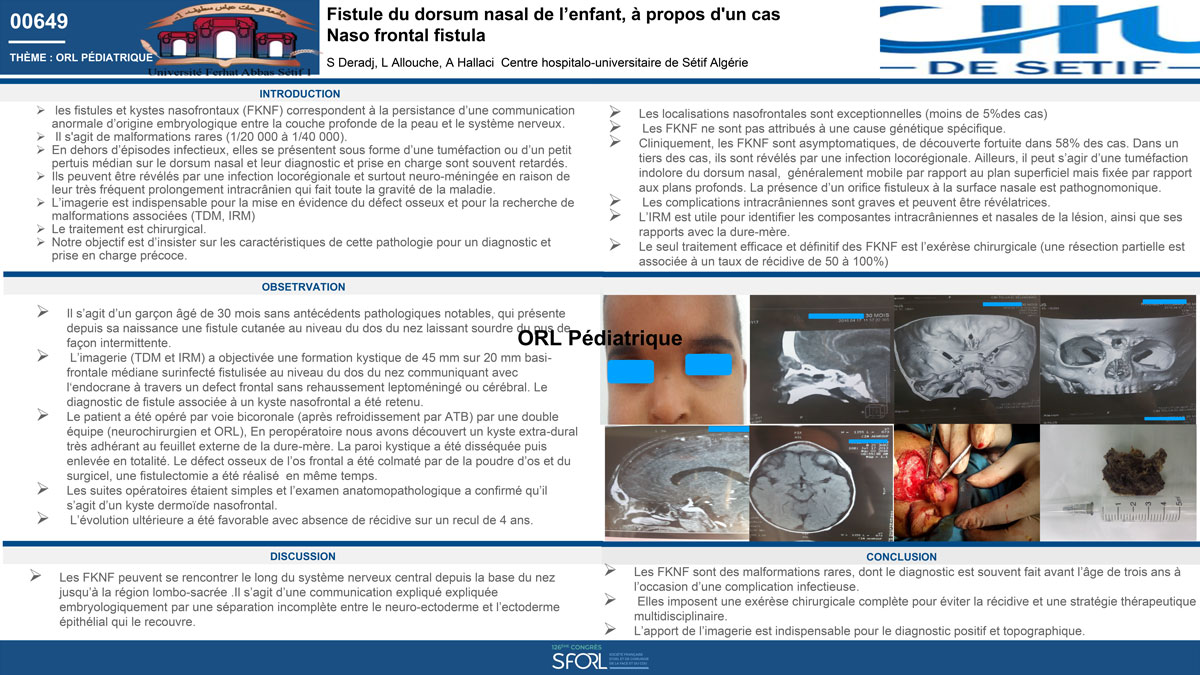 Fistules du dorsum nasal de l’enfant, à propos d’un cas