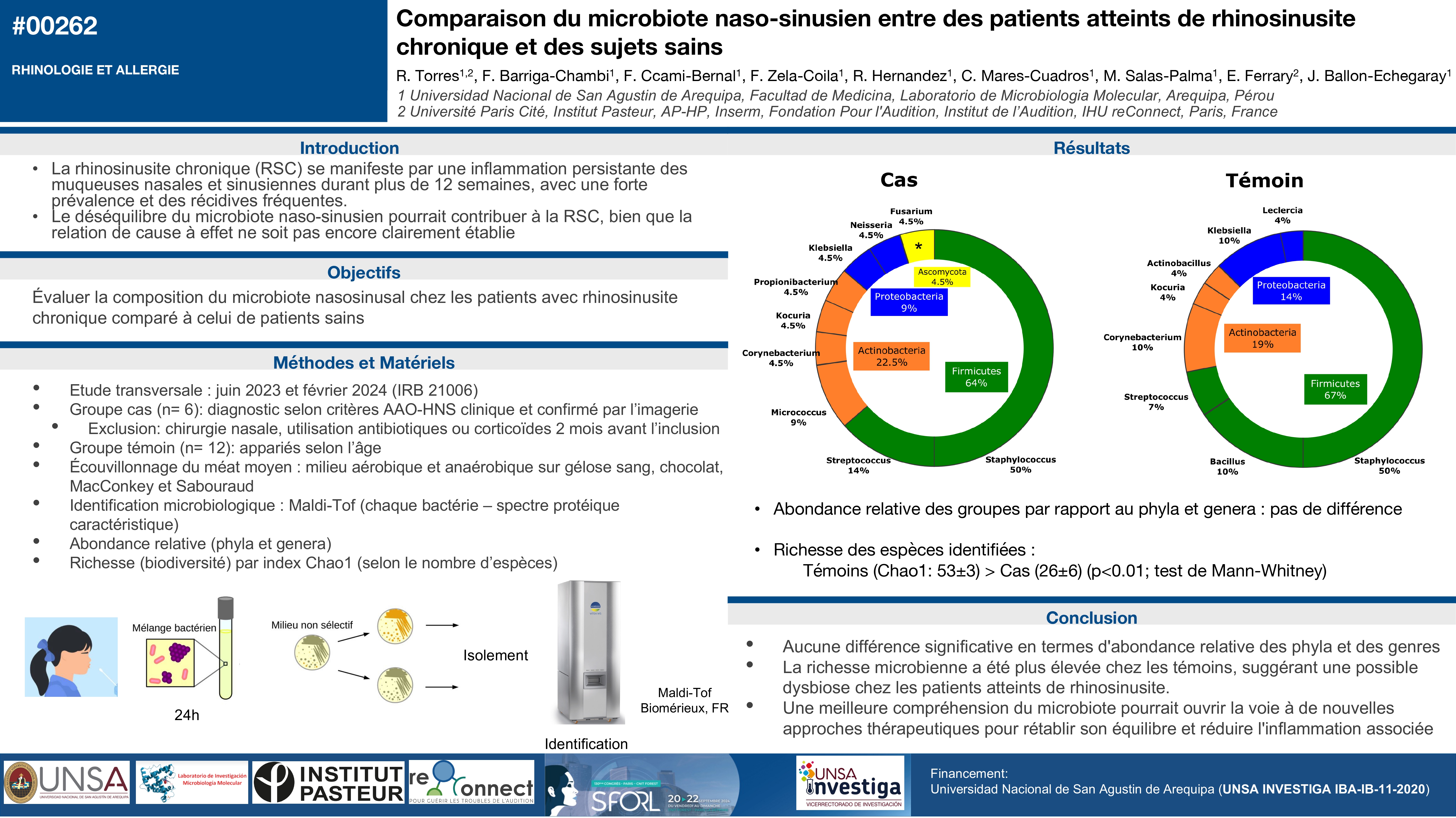 | PC039 – Comparaison du microbiote naso-sinusal entre des patients atteints de rhinosinusite chronique et des sujets sains | Rhinologie et Allergie | rhinologie-et-allergie | |