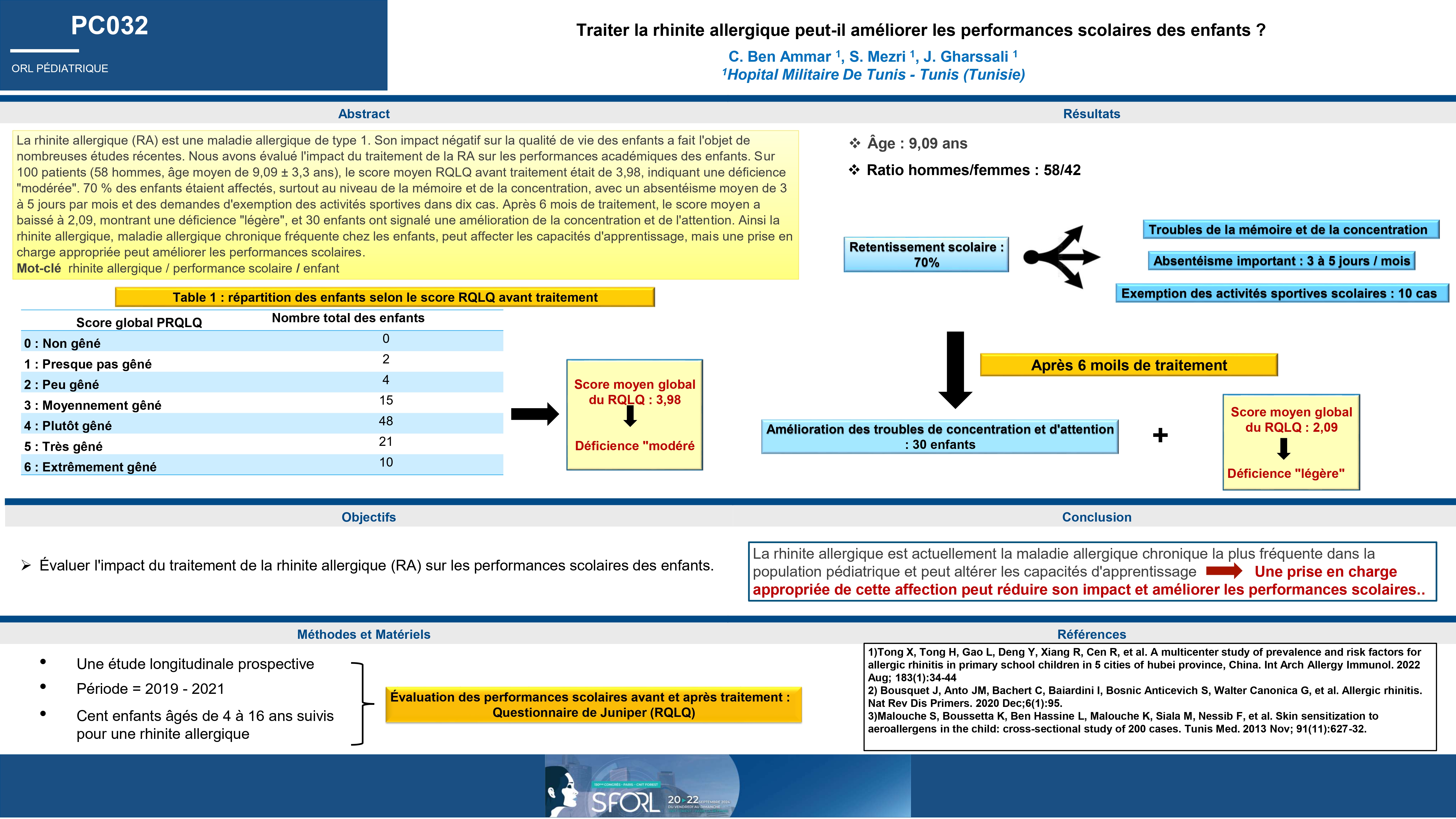 | PC032 – Traiter la rhinite allergique peut-il améliorer les performances scolaires des enfants ? | ORL Pédiatrique | orl-pediatrique | |