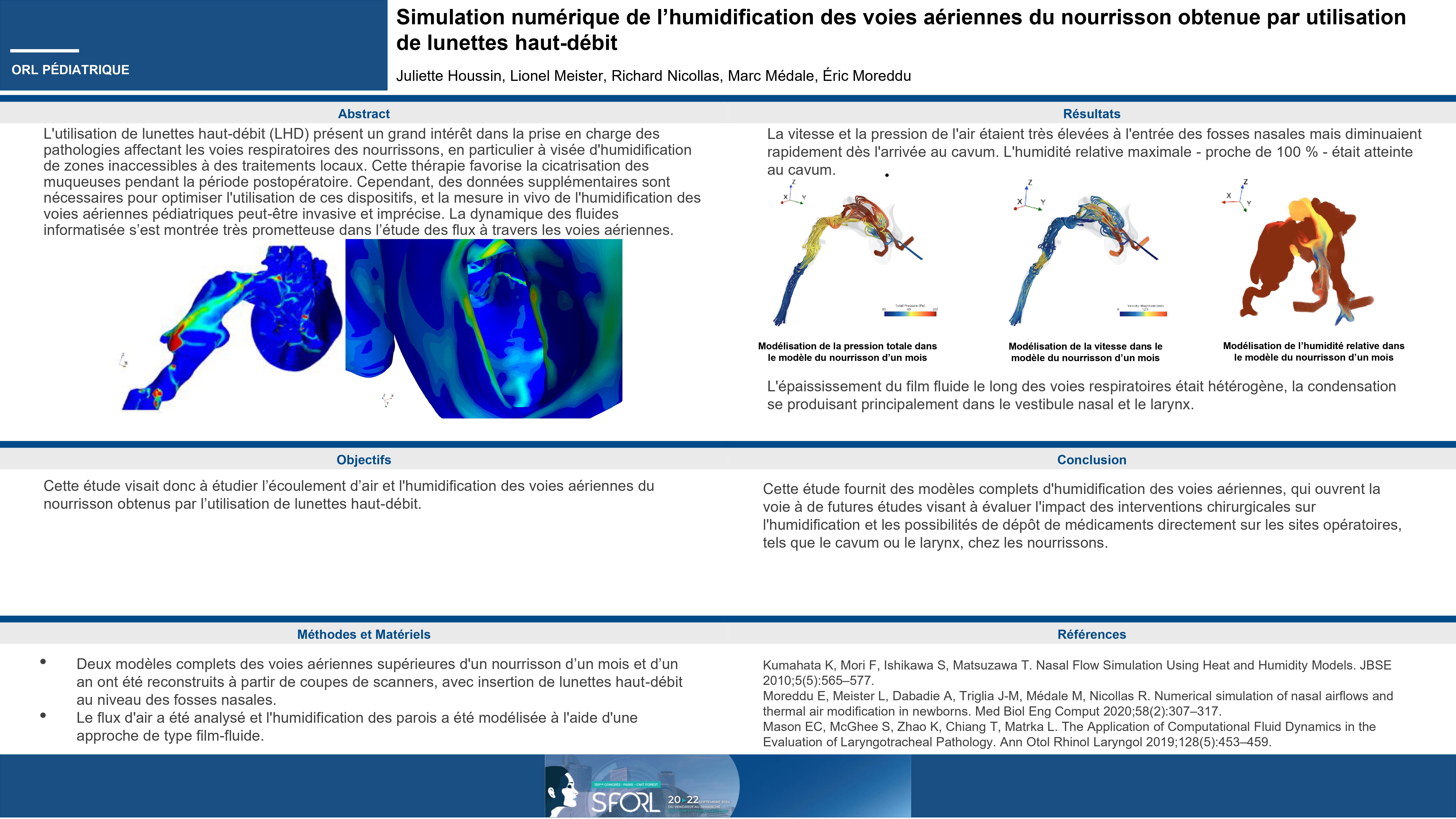 | PC029 – Simulation numérique de l’humidification des voies aériennes du nourrisson via lunettes haut-débit | ORL Pédiatrique | orl-pediatrique | |