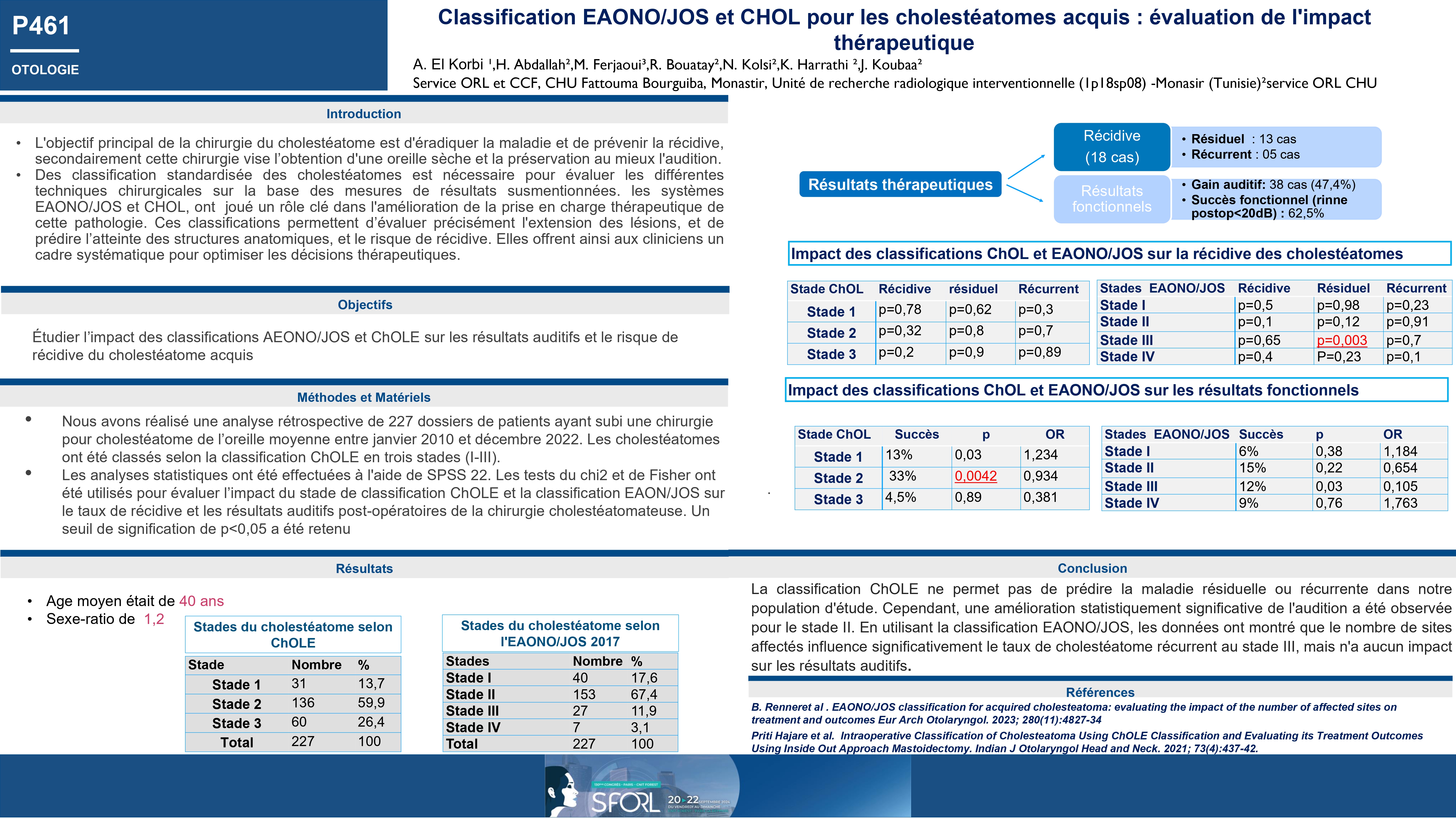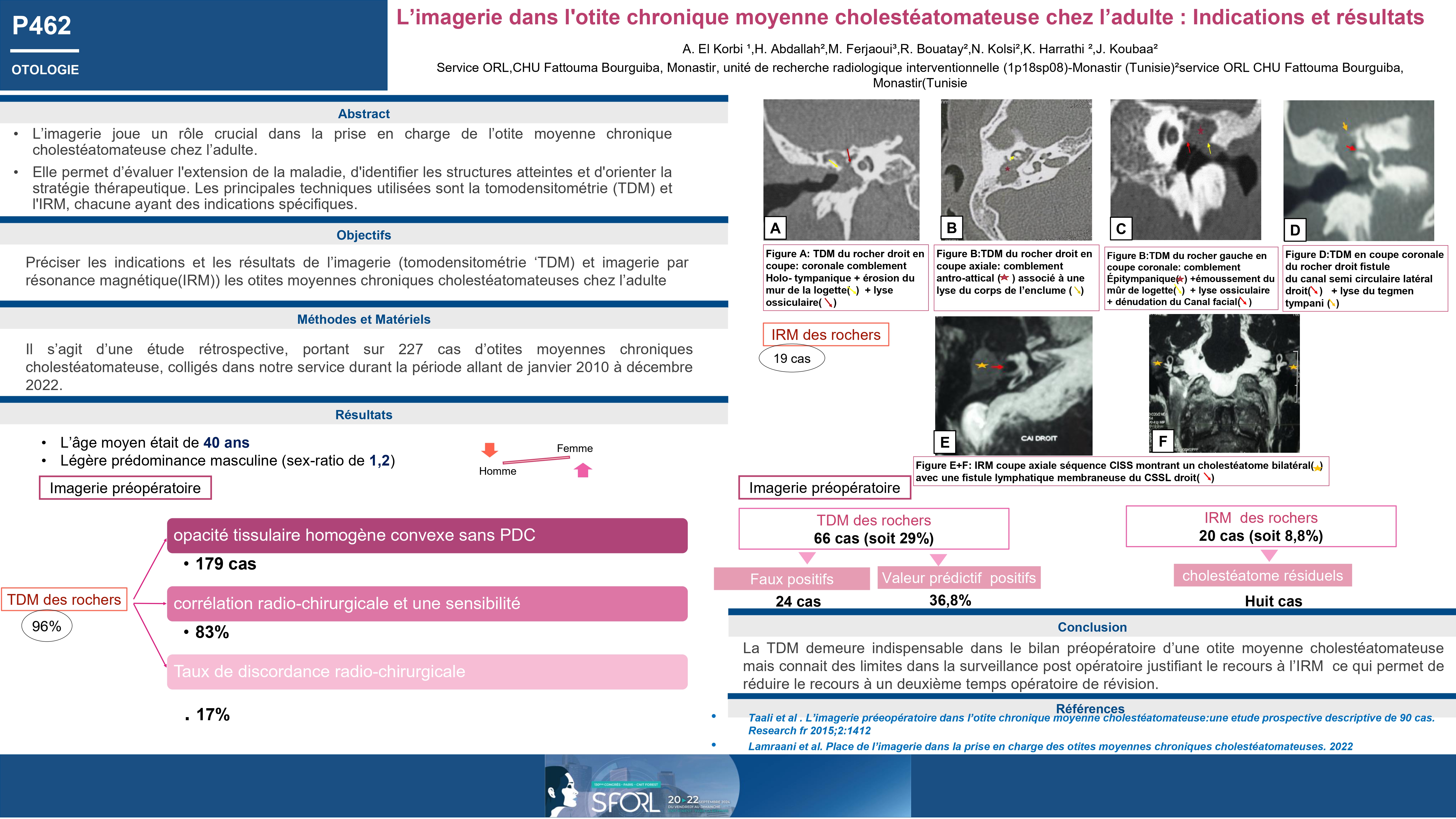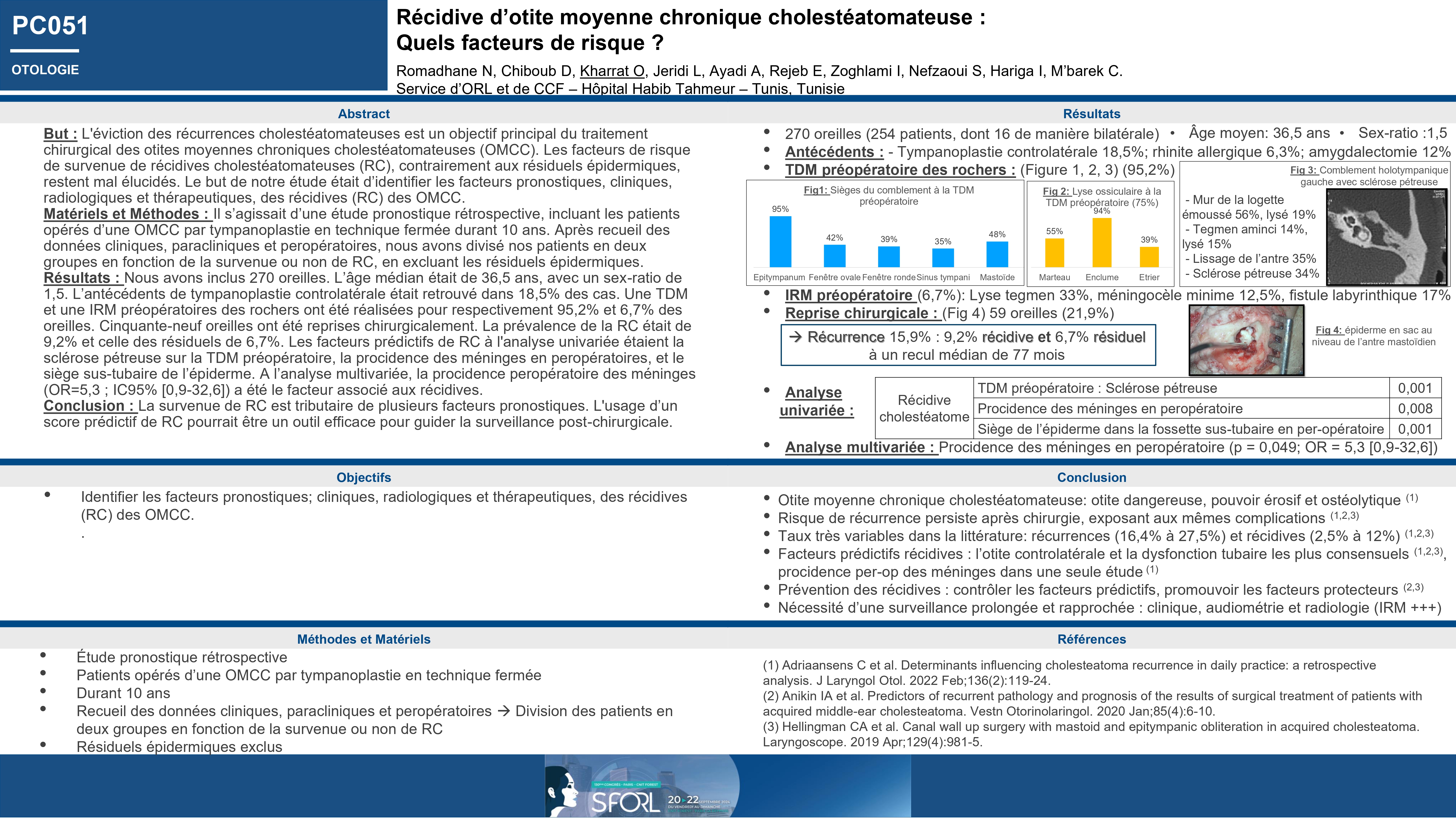 | PC051 – Récidive d’otite moyenne chronique cholestéatomateuse : Quels facteurs de risque ? | Otologie | otologie | |