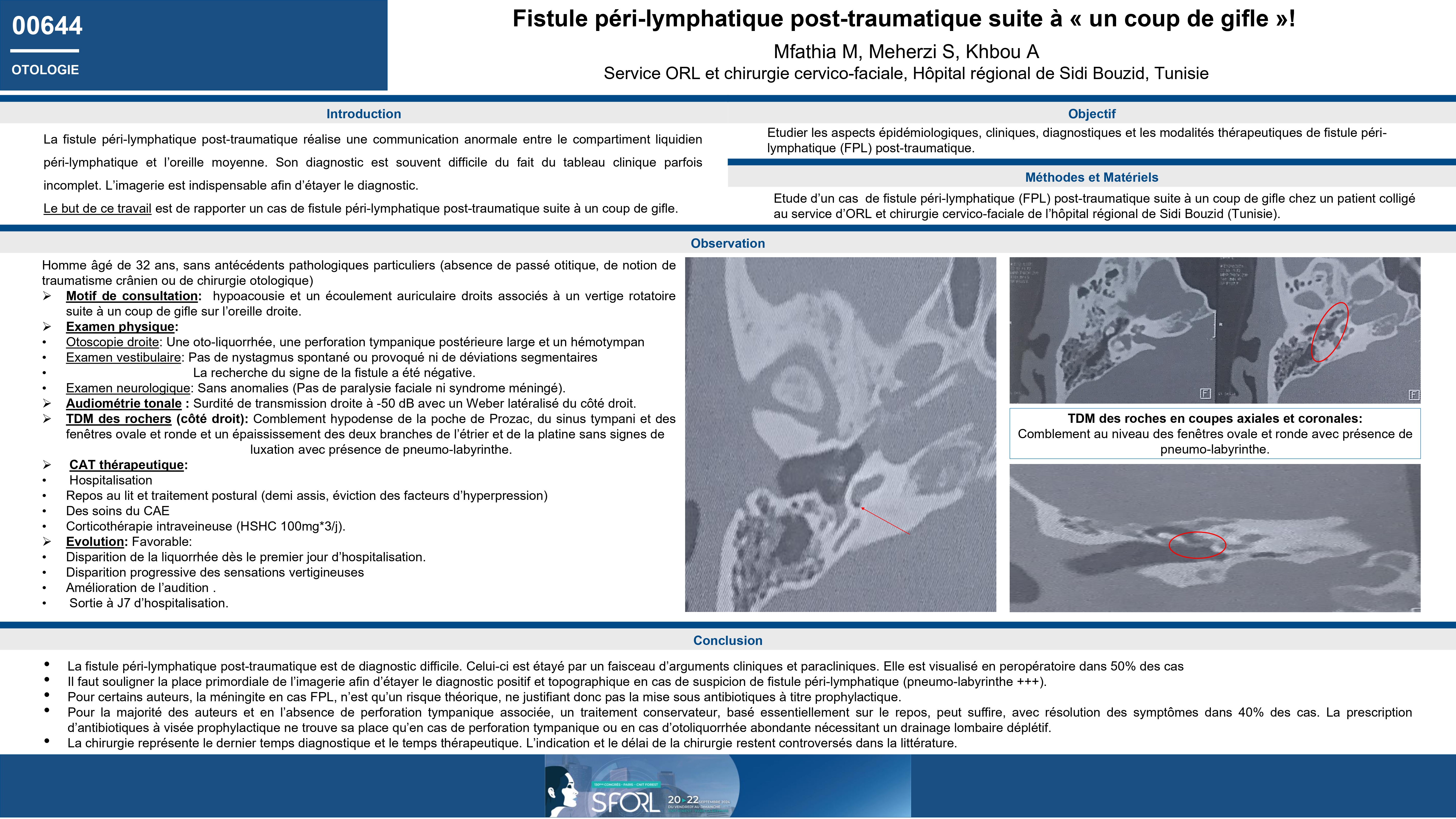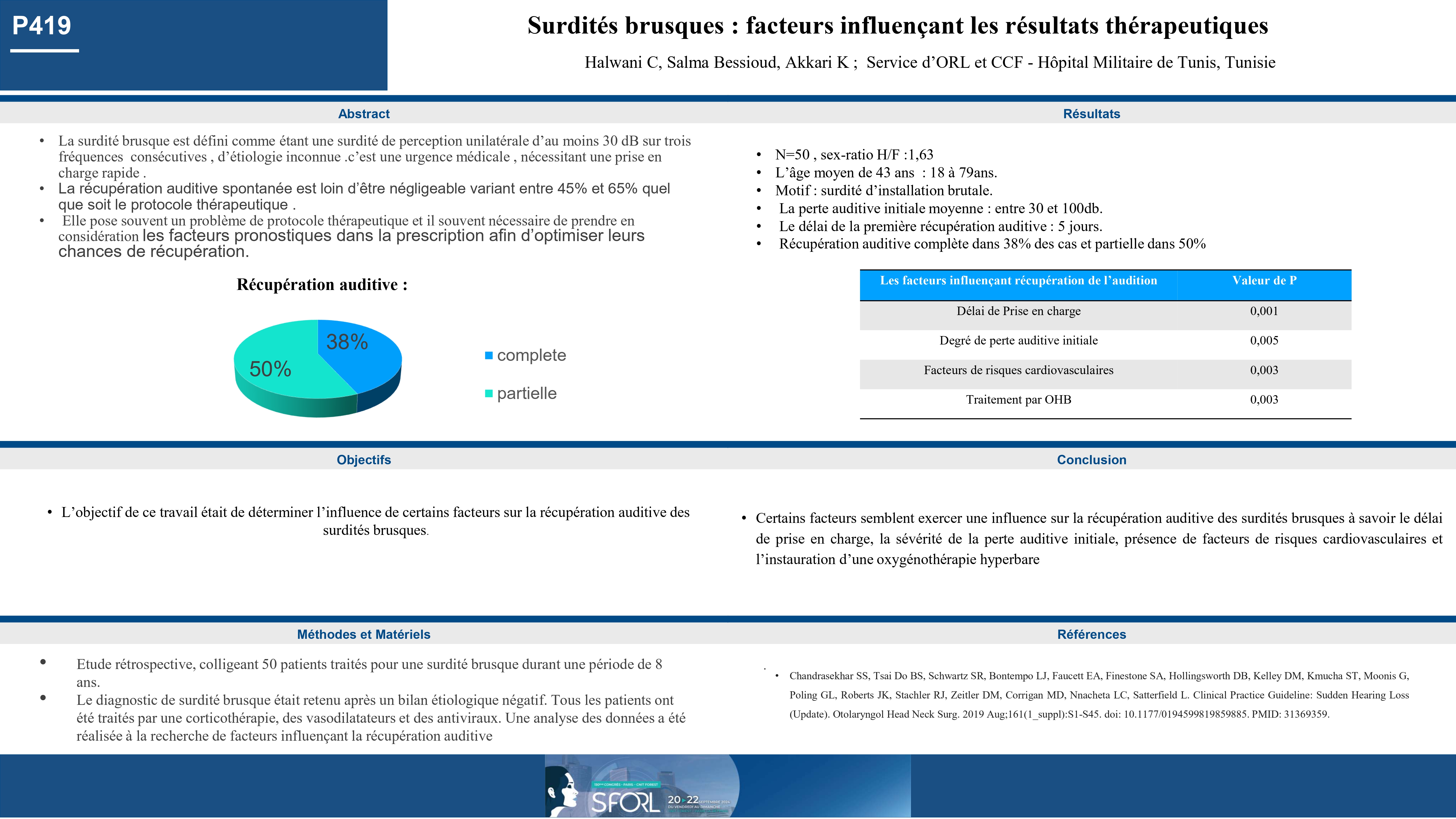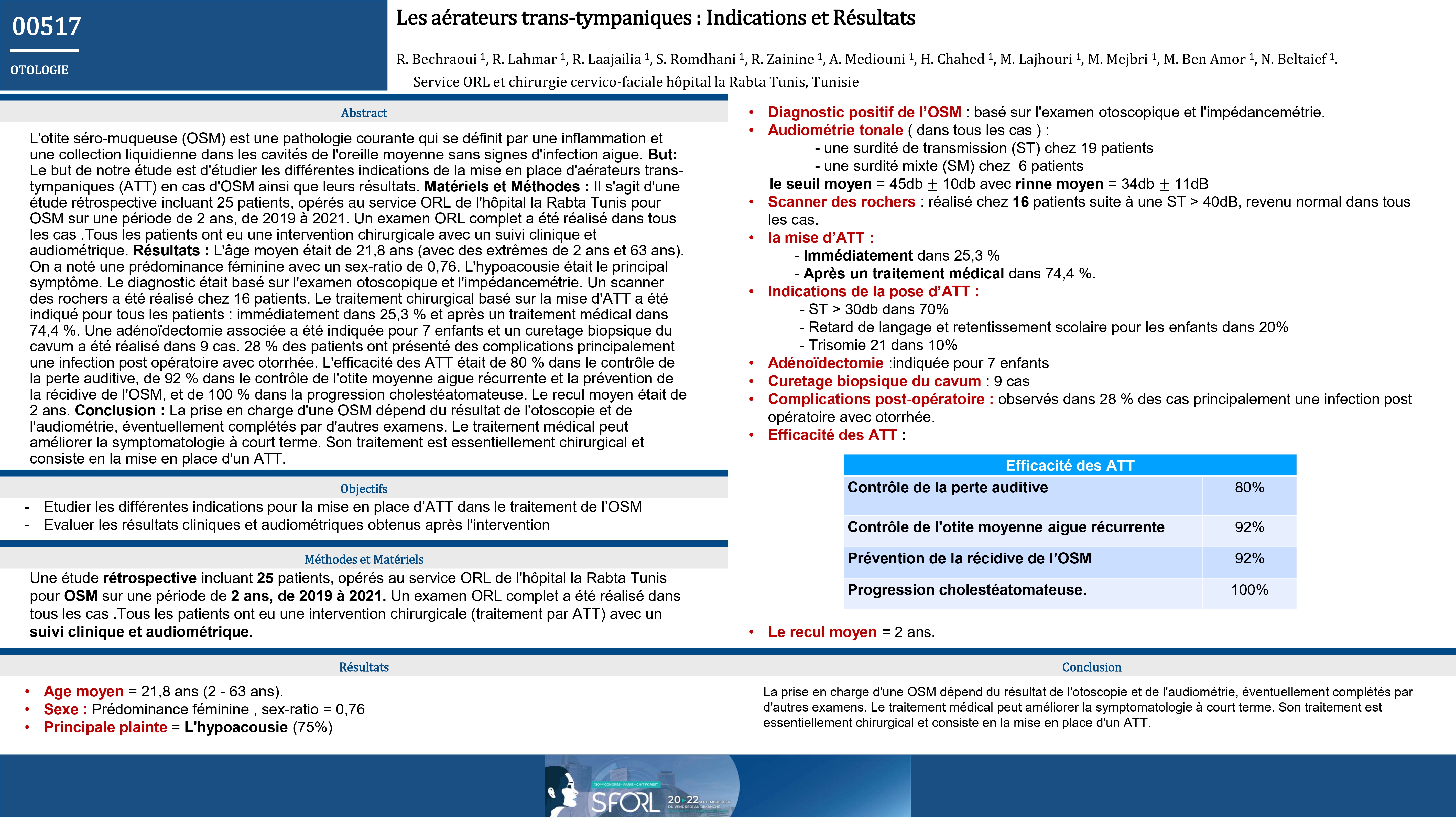 | PC051 – Récidive d’otite moyenne chronique cholestéatomateuse : Quels facteurs de risque ? | Otologie | otologie | |
