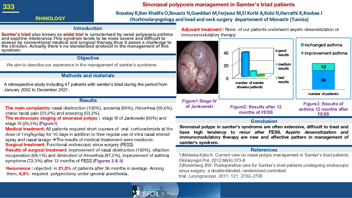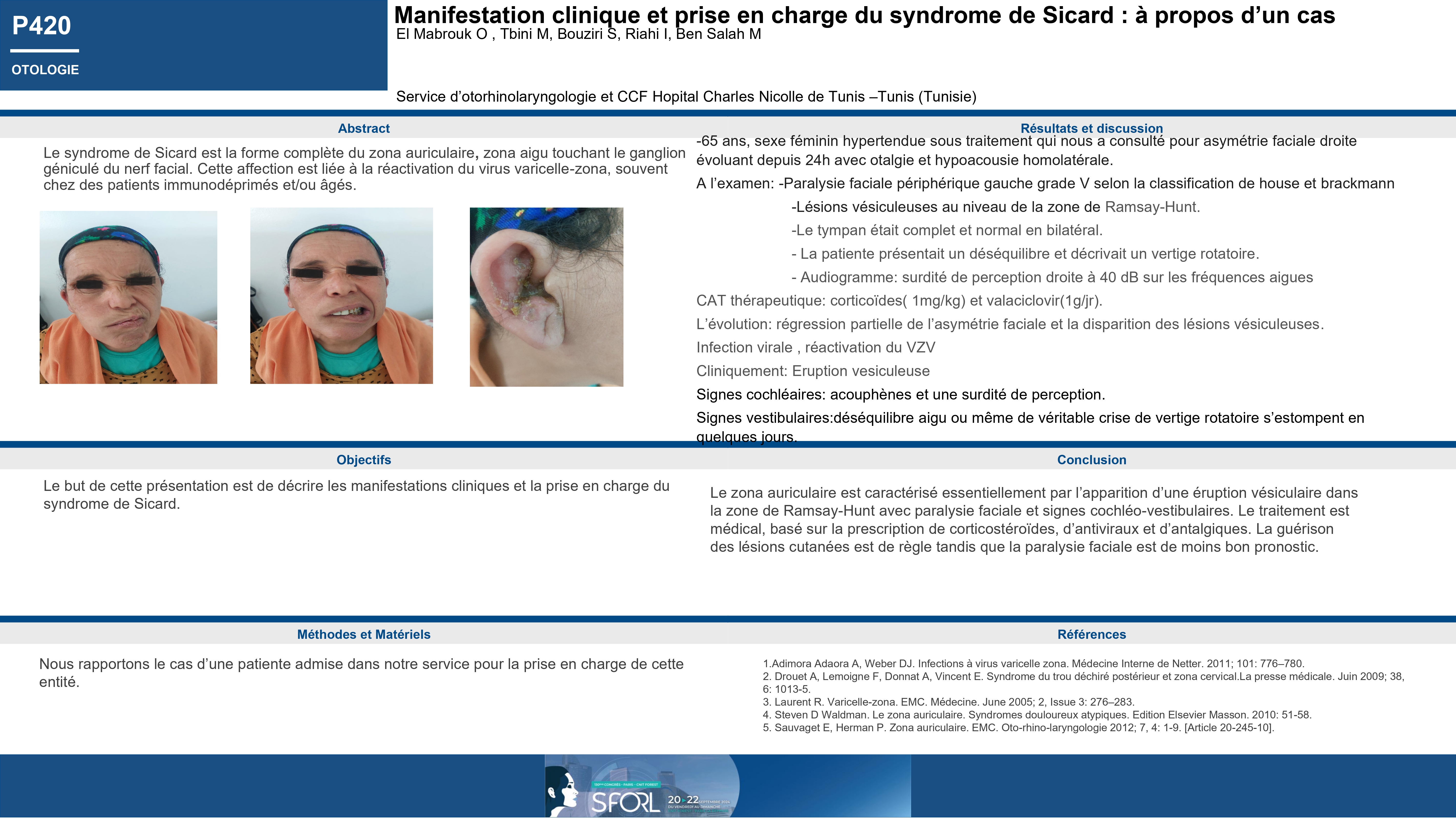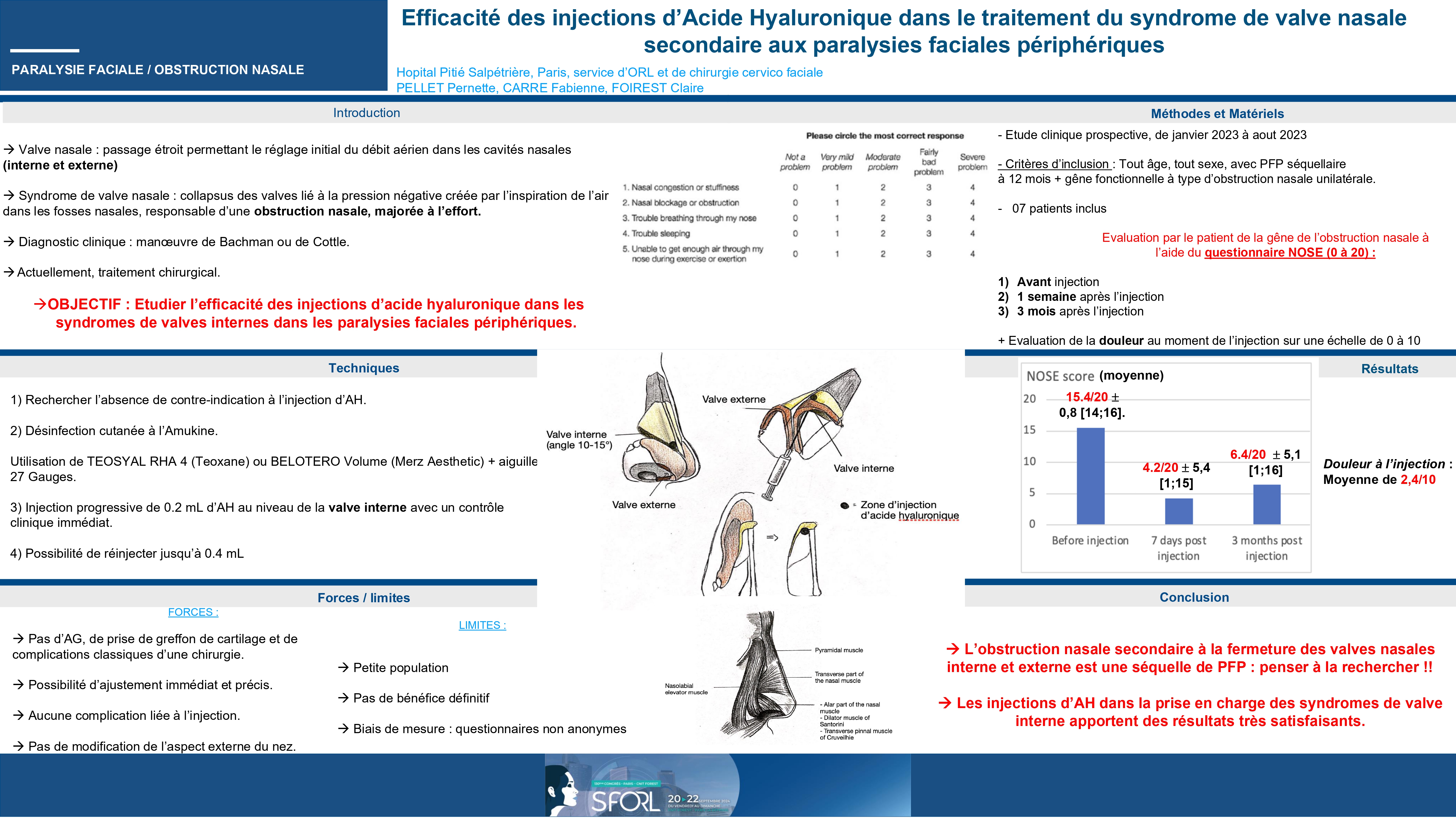 | PC043 – Management of internal nasal valve dysfunction secondary to peripheral facial paralysis: technical note and preliminary study. | Rhinologie et Allergie | rhinologie-et-allergie | |