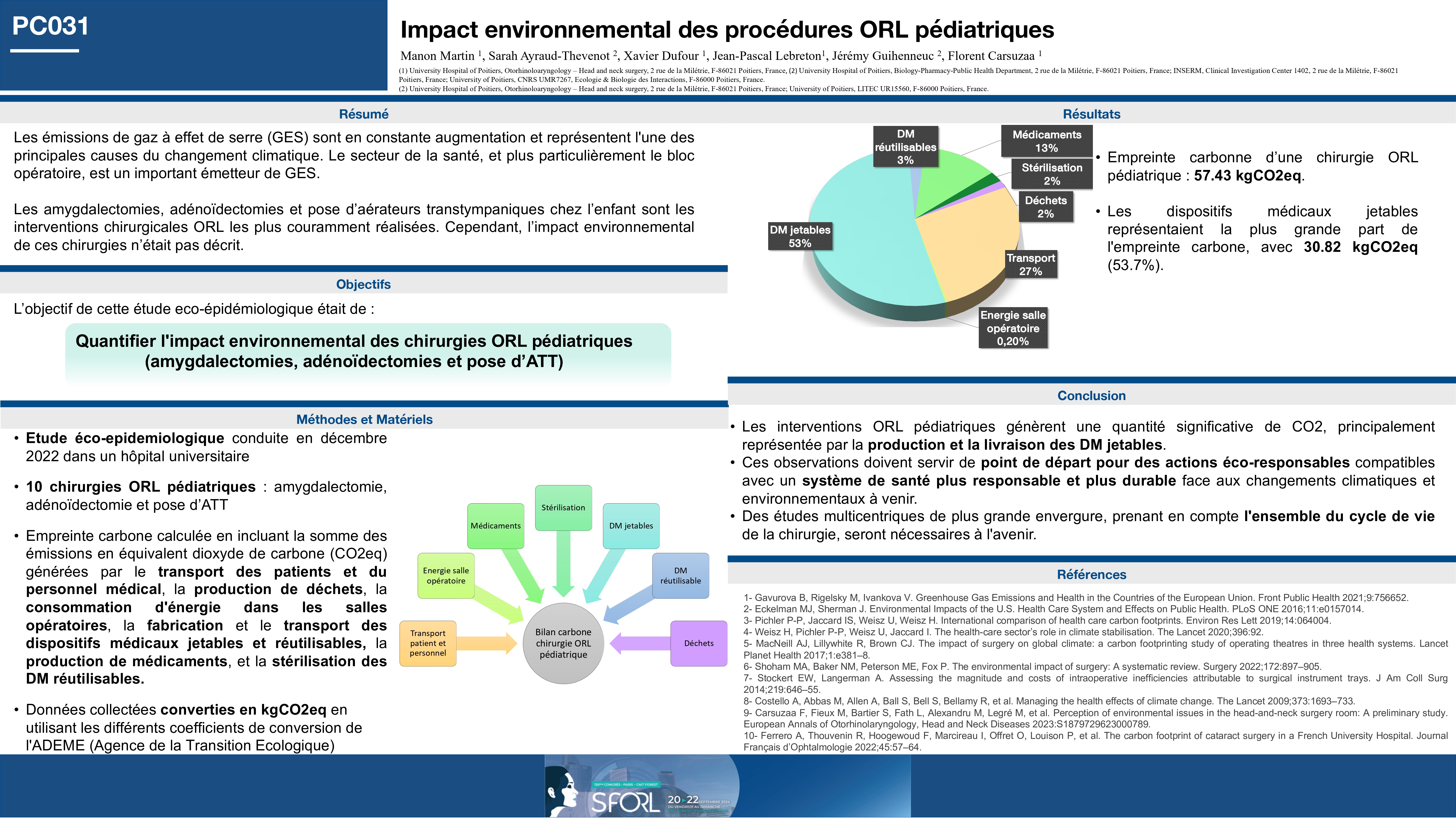 | PC031 – Impact environnemental des procédures pédiatriques en ORL | ORL Pédiatrique | orl-pediatrique | |