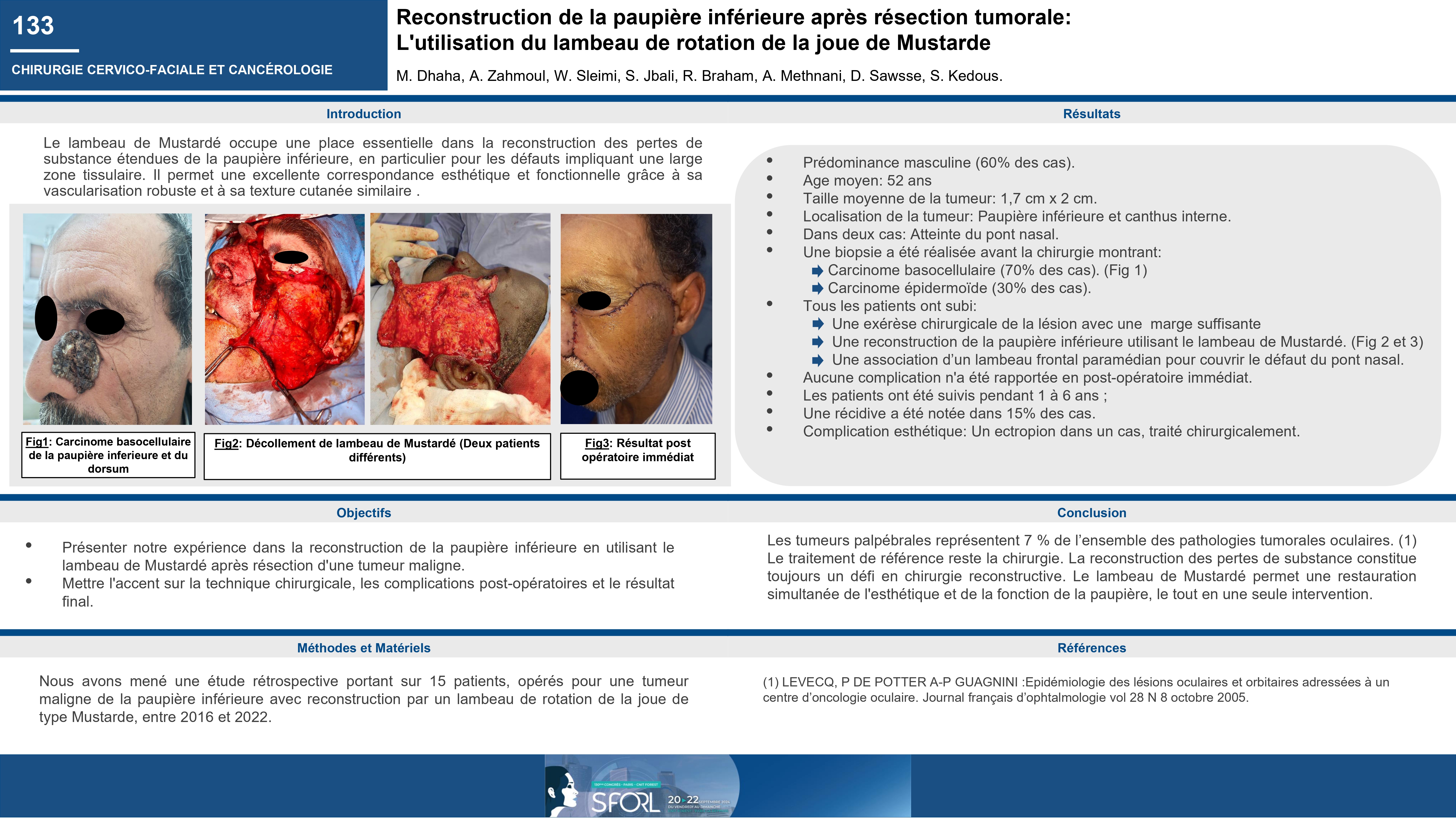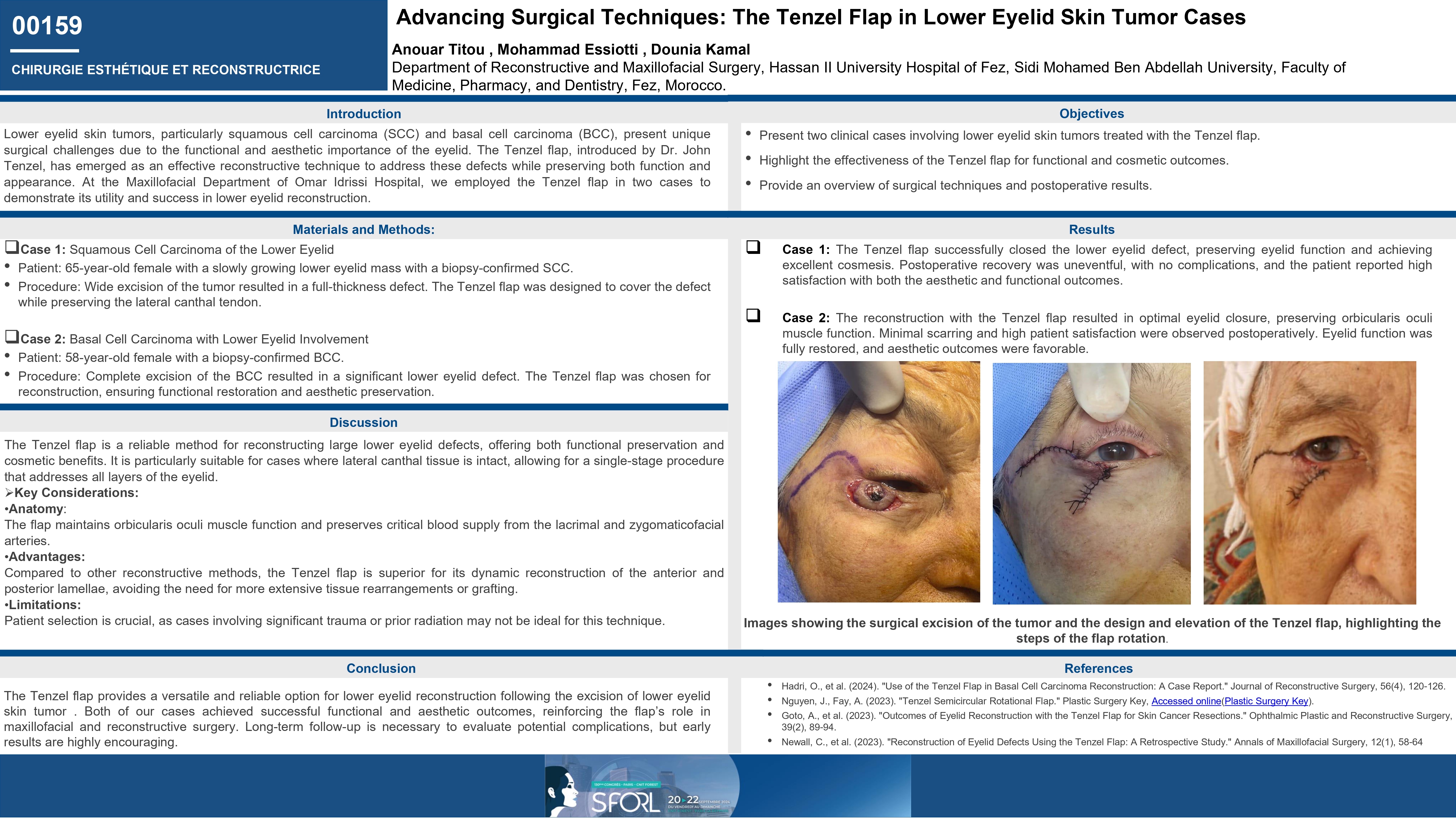 | PC011 – Advancing Surgical Techniques: The Tenzel Flap in Lower Eyelid Skin Tumor Cases | Chirurgie esthétique et reconstructrice | chirurgie-esthetique-et-reconstructrice | |