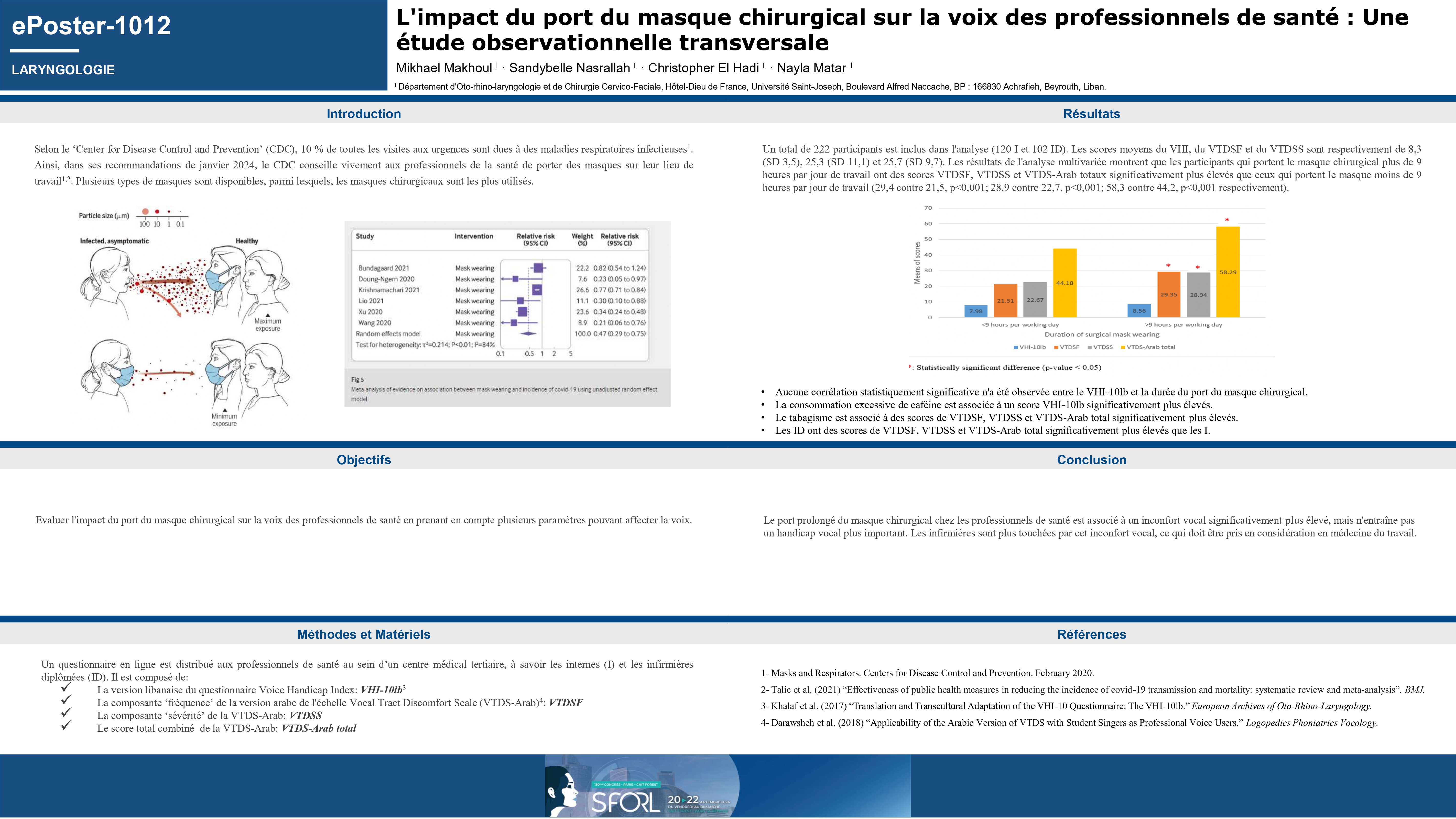 | PC024 – L’impact du port du masque chirurgical sur la voix des professionnels de santé : Une étude observationnelle transversale | Laryngologie et Phoniatrie | laryngologie-et-phoniatrie | |