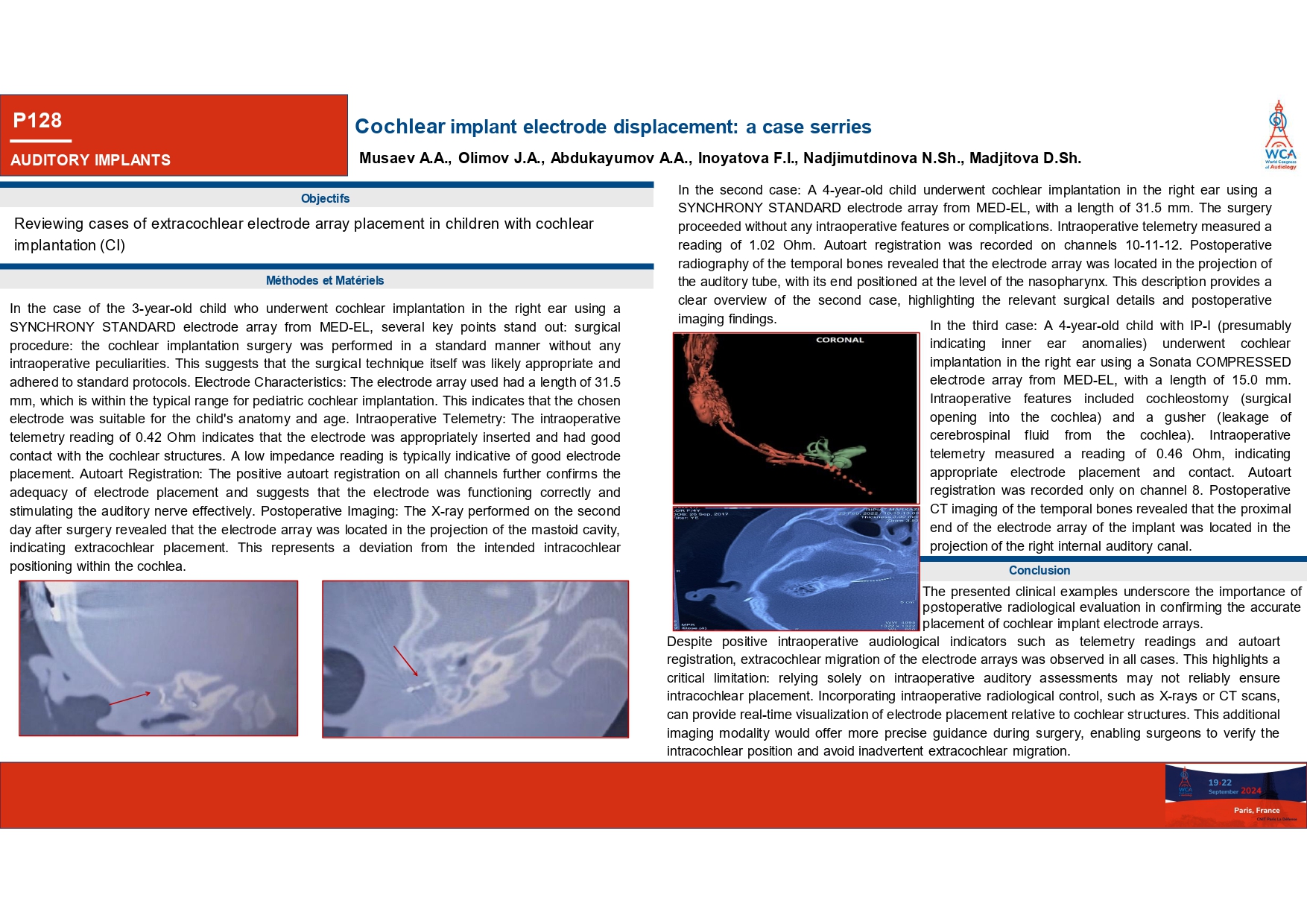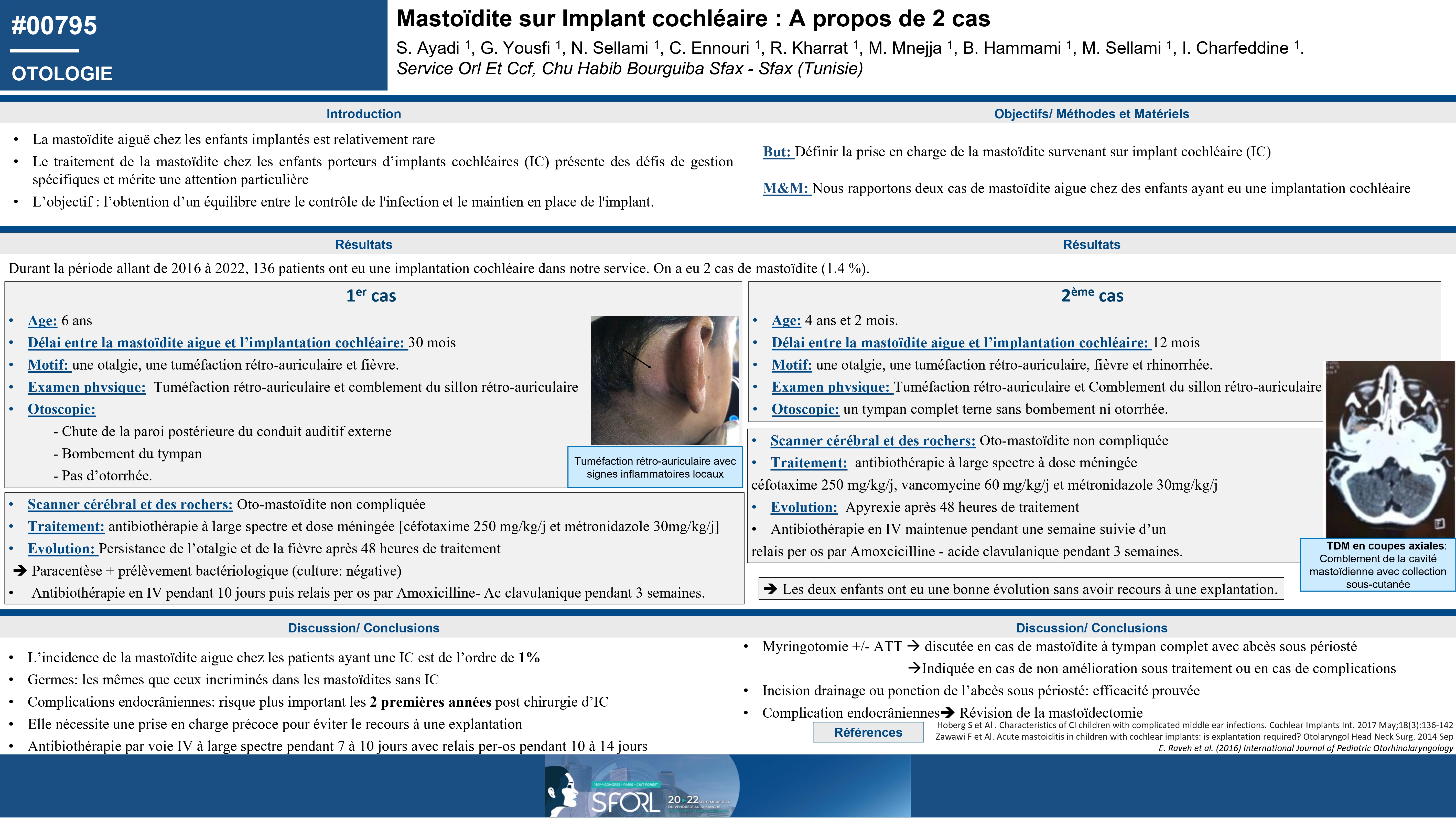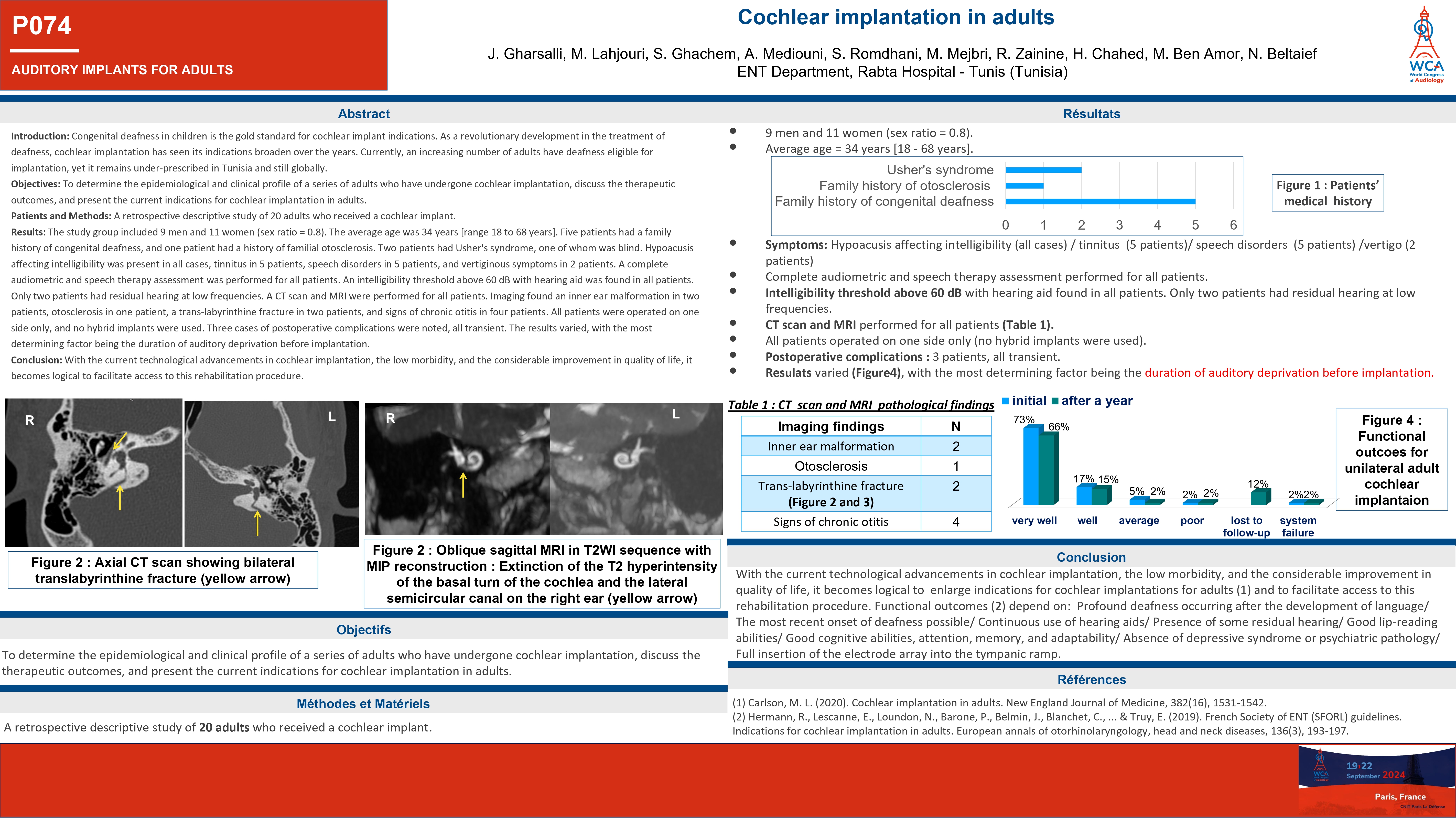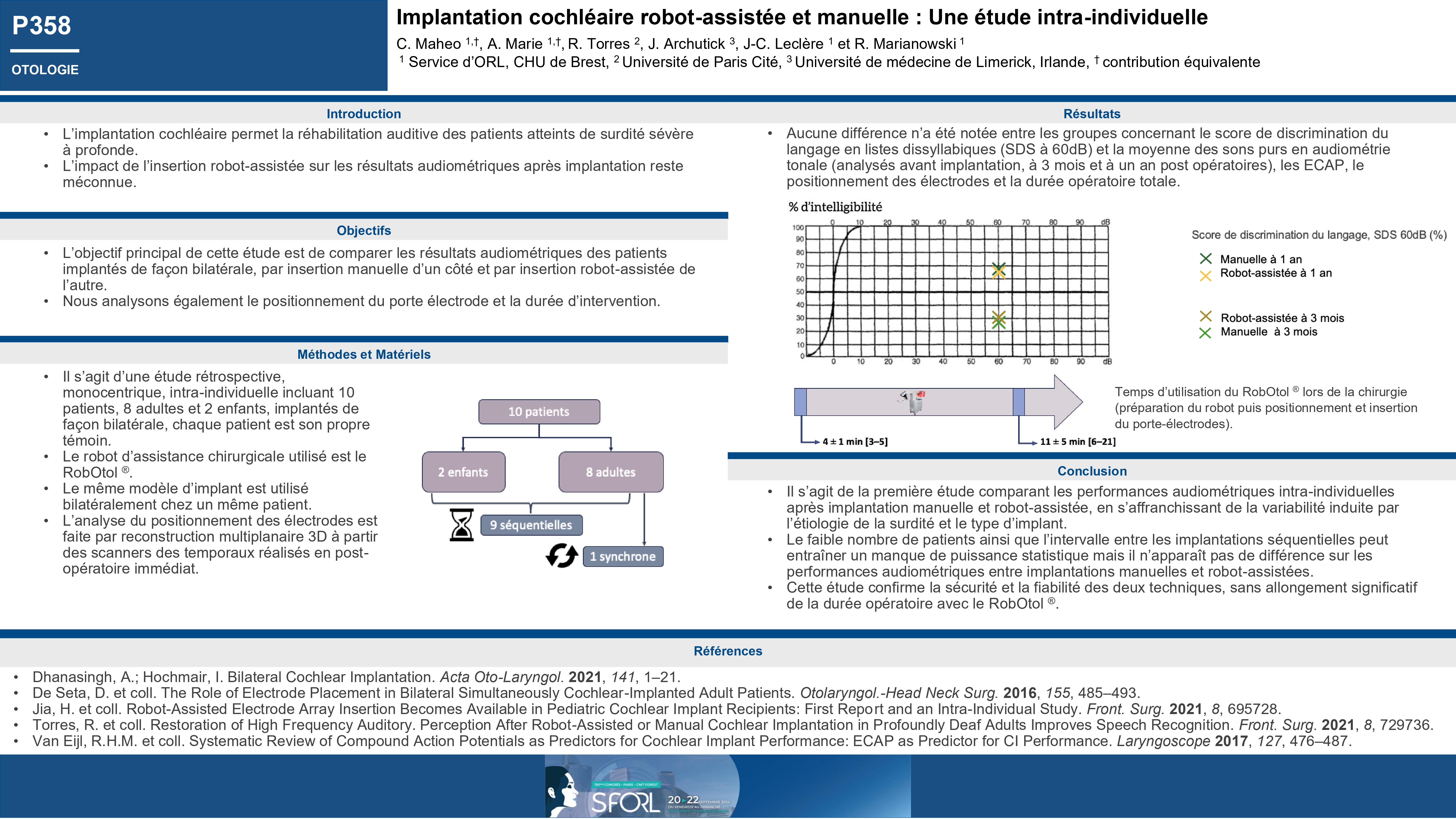 | PC047 – L’implantation cochléaire est adaptée à la chirurgie ambulatoire à tout âge de l’enfant, même chez les nourrissons | Otoneurologie et chirurgie de la base du crâne | otoneurologie-et-chirurgie-de-la-base-du-crane | |