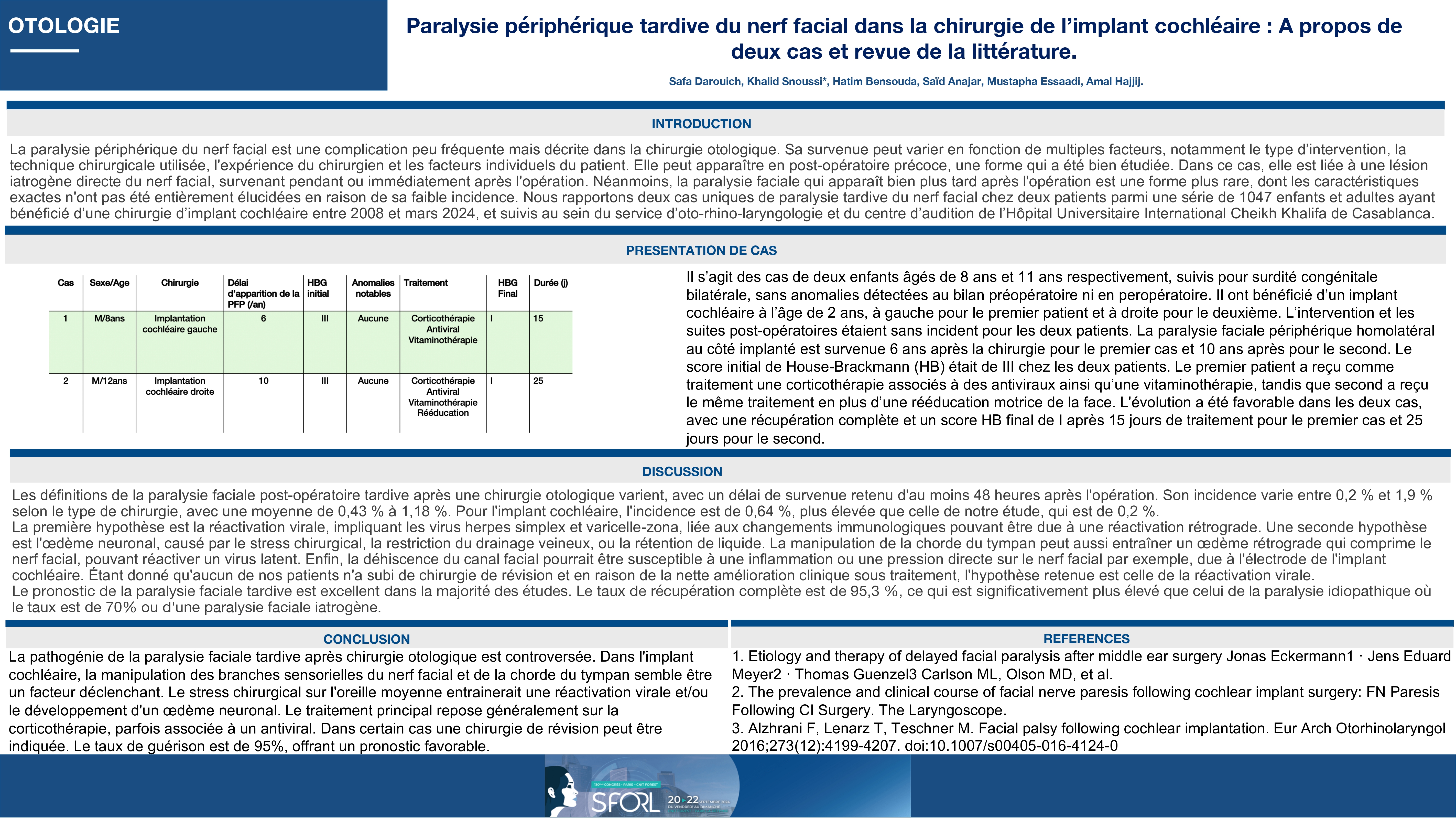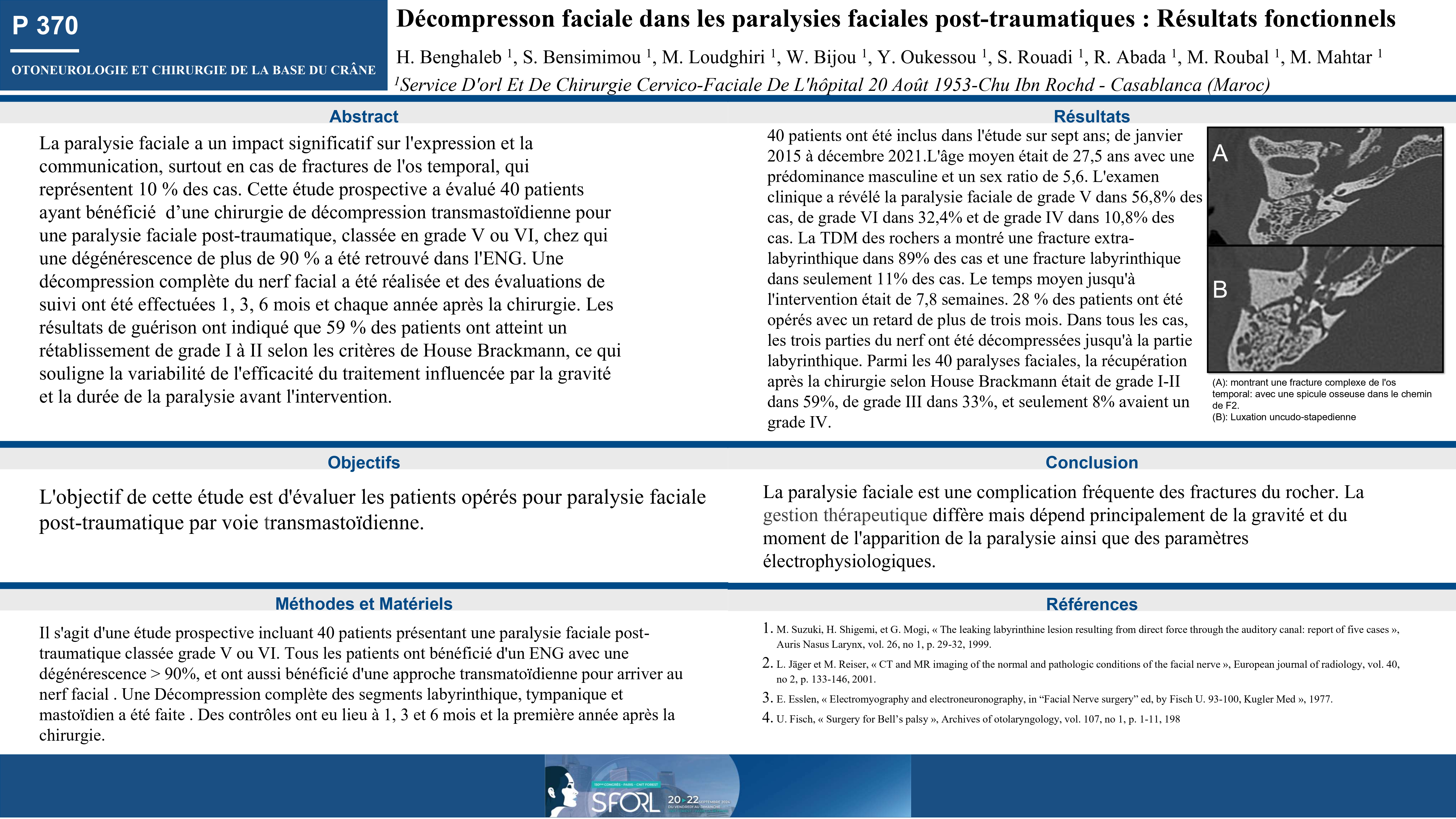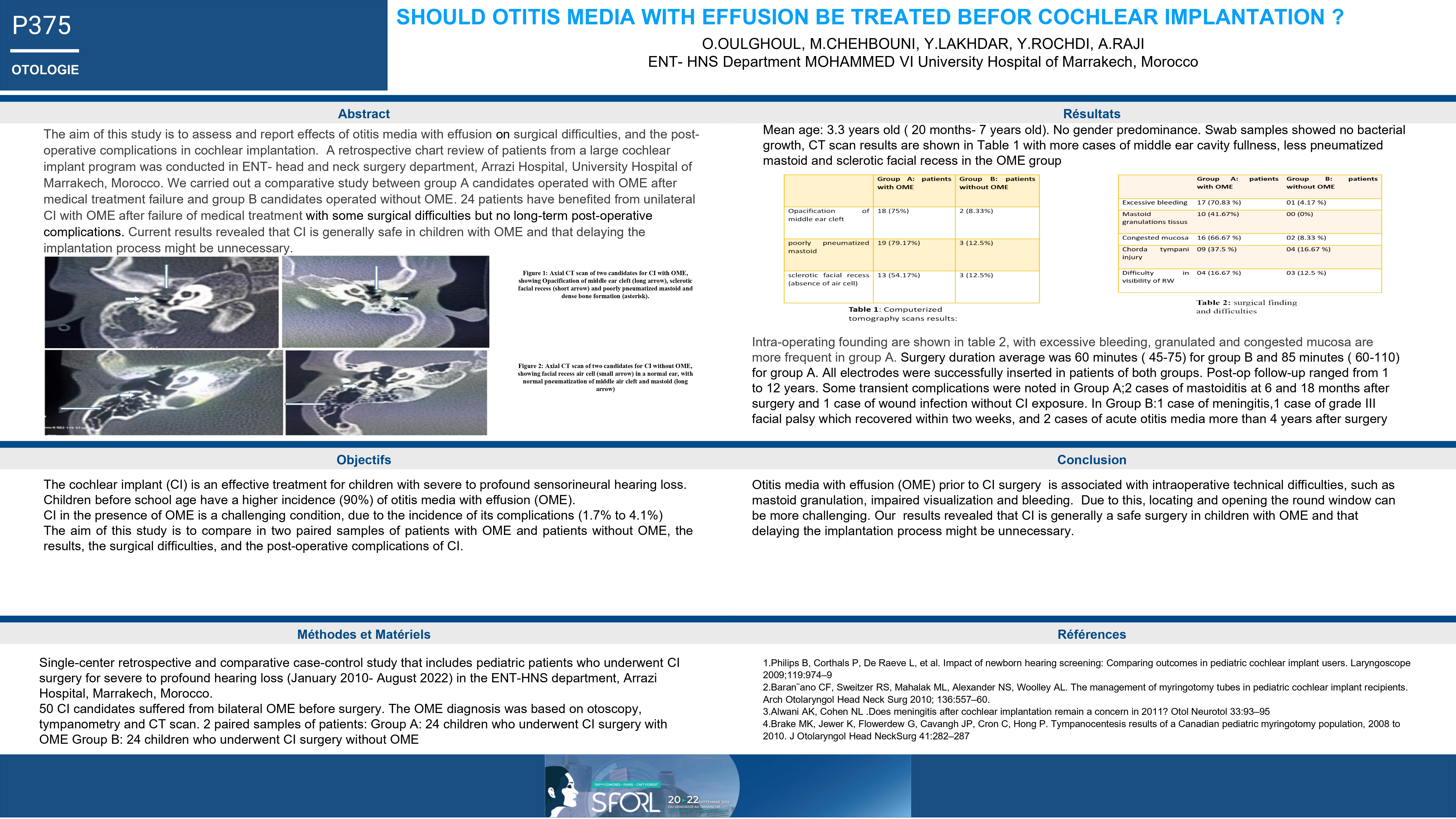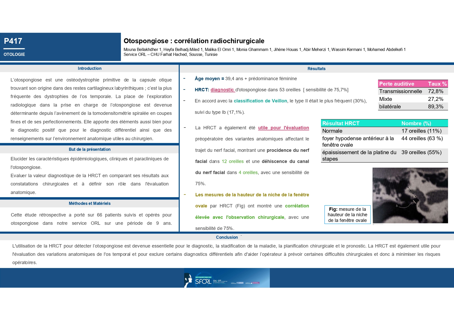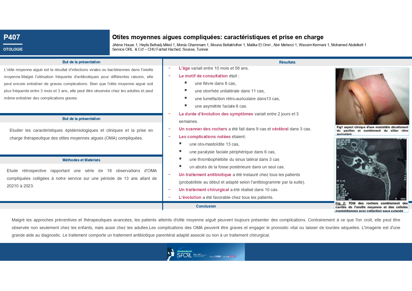 | PC054 – Pediatric Middle Ear Cholesteatoma: Retrospective Analysis of Surgical Cases | Otologie | otologie | |