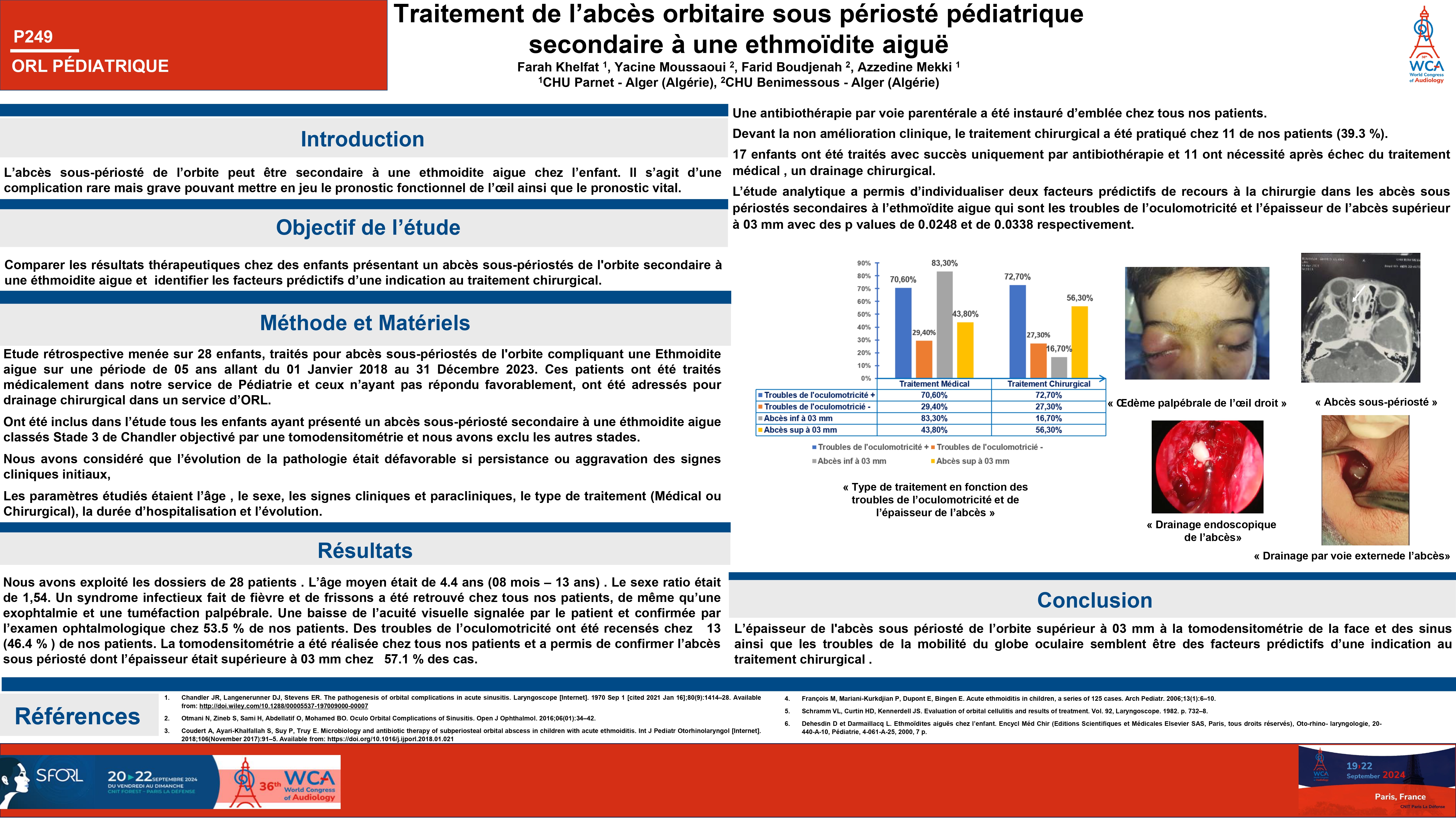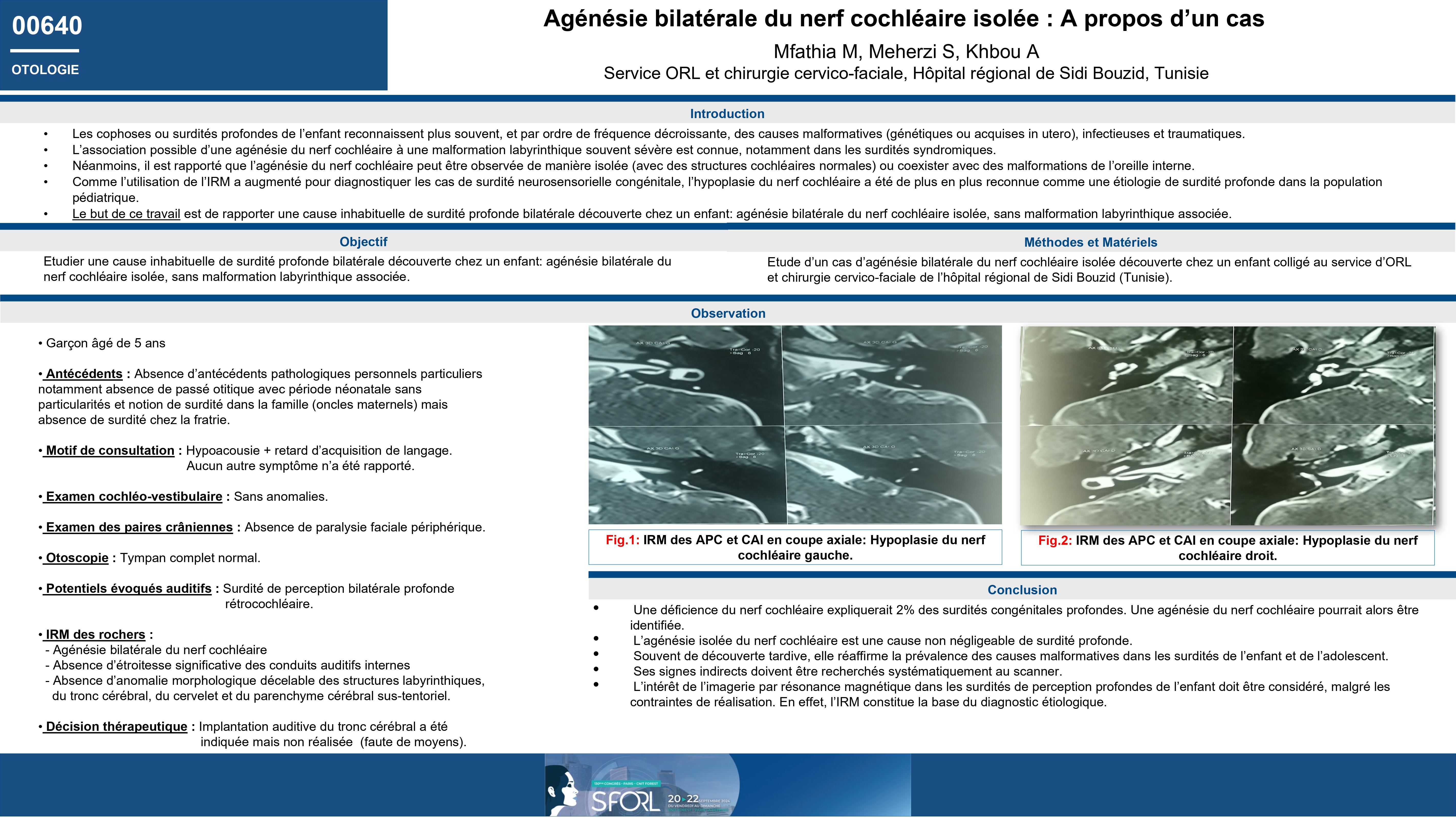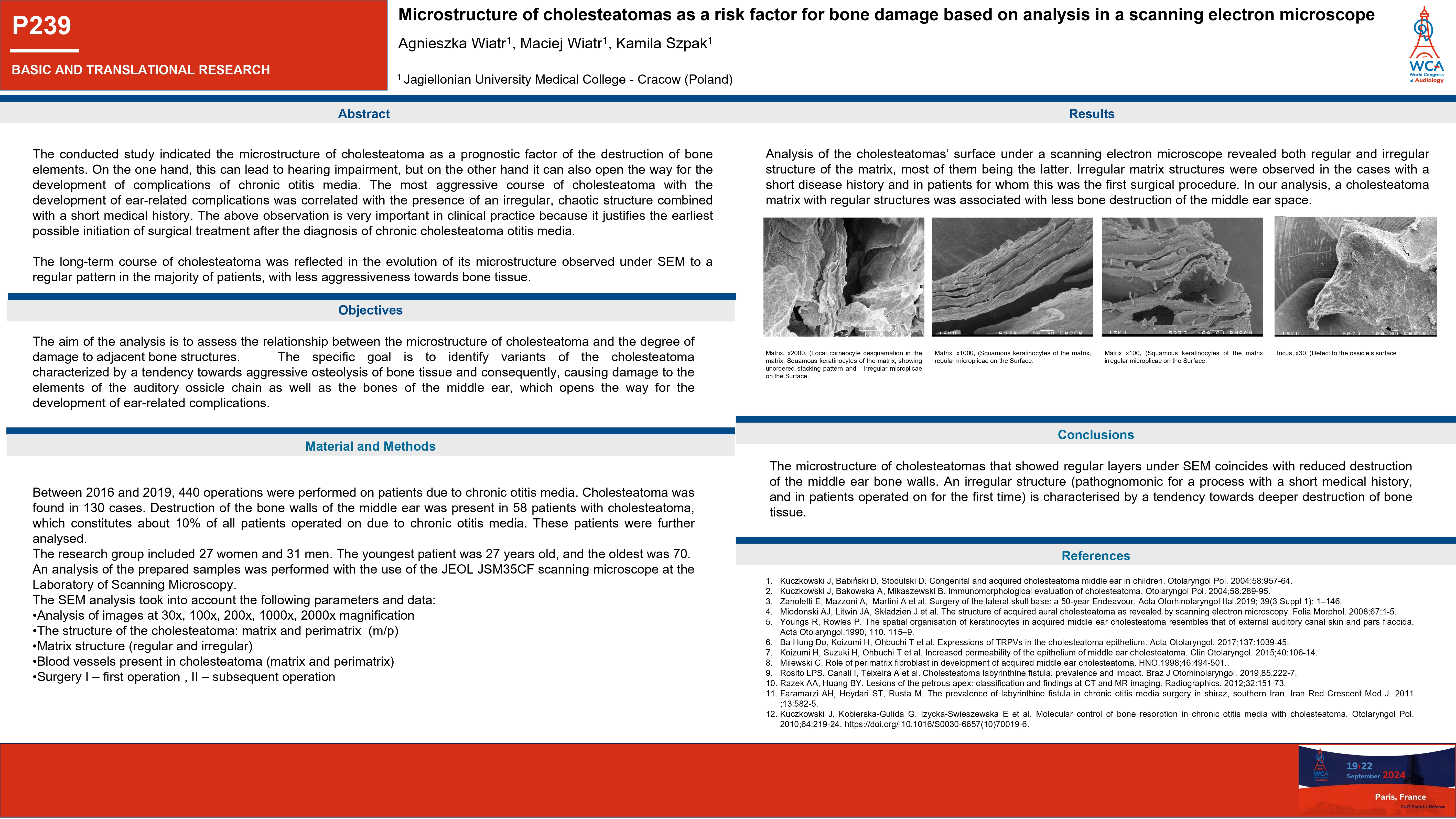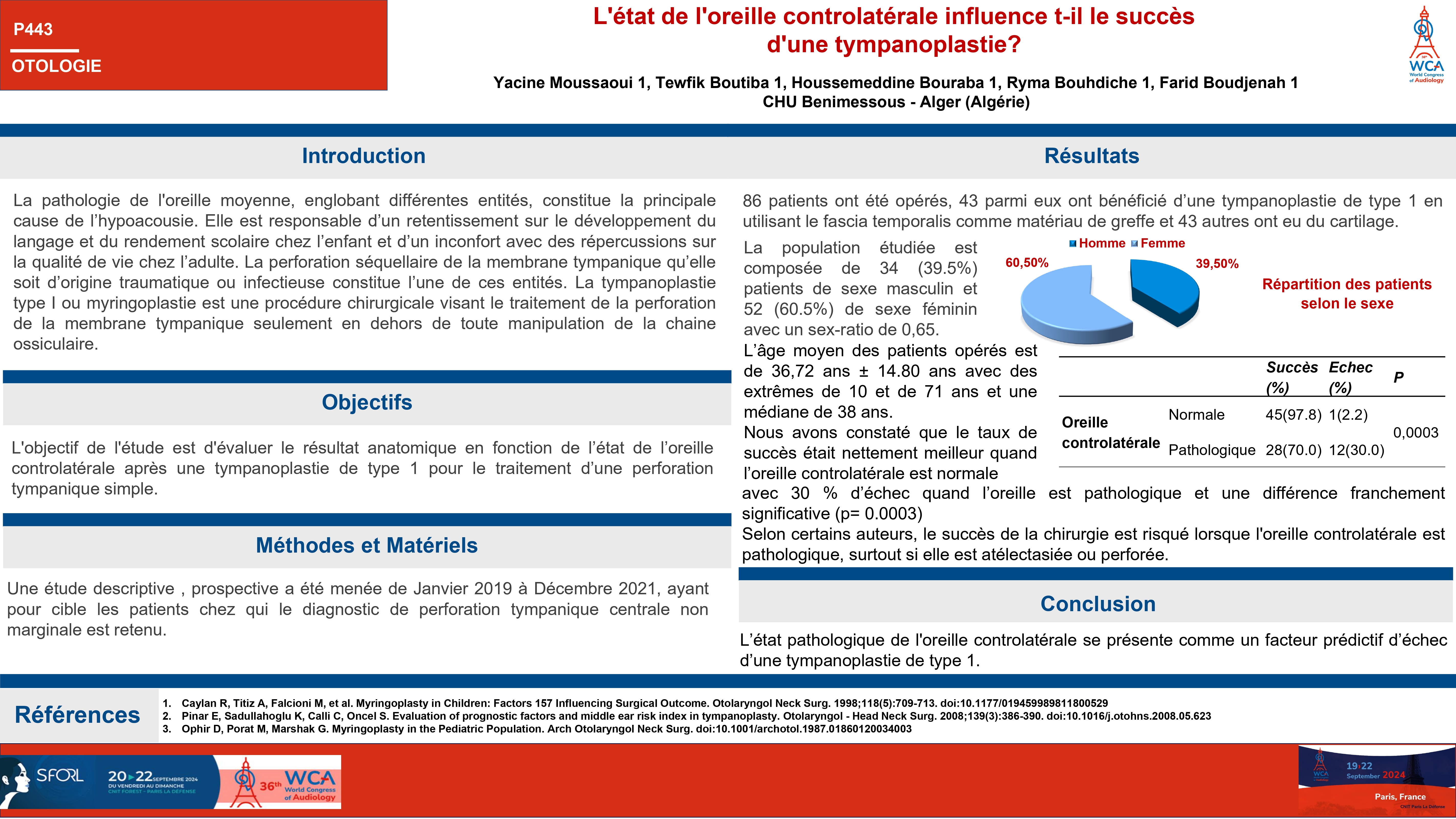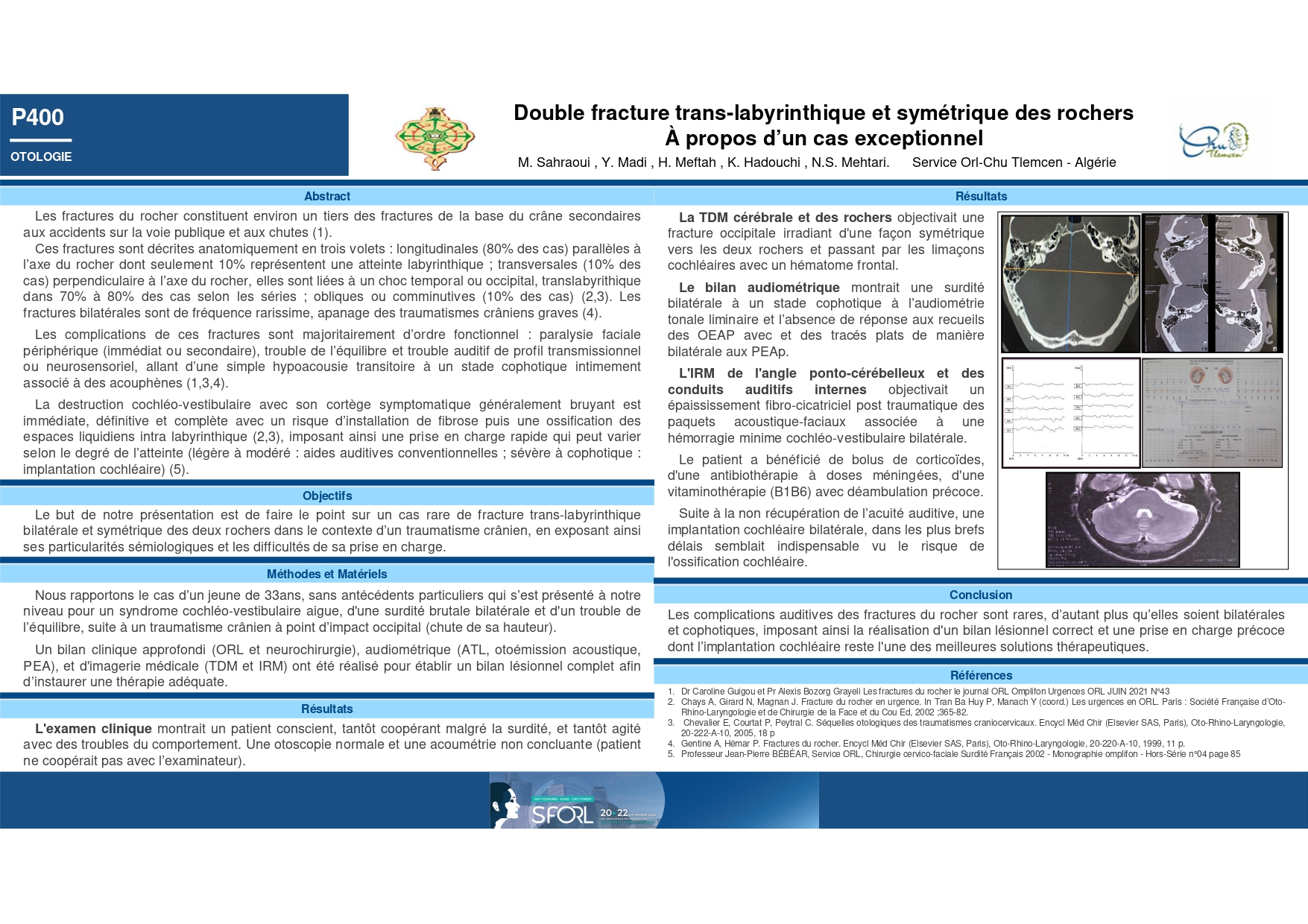 | PC054 – Pediatric Middle Ear Cholesteatoma: Retrospective Analysis of Surgical Cases | Otologie | otologie | |