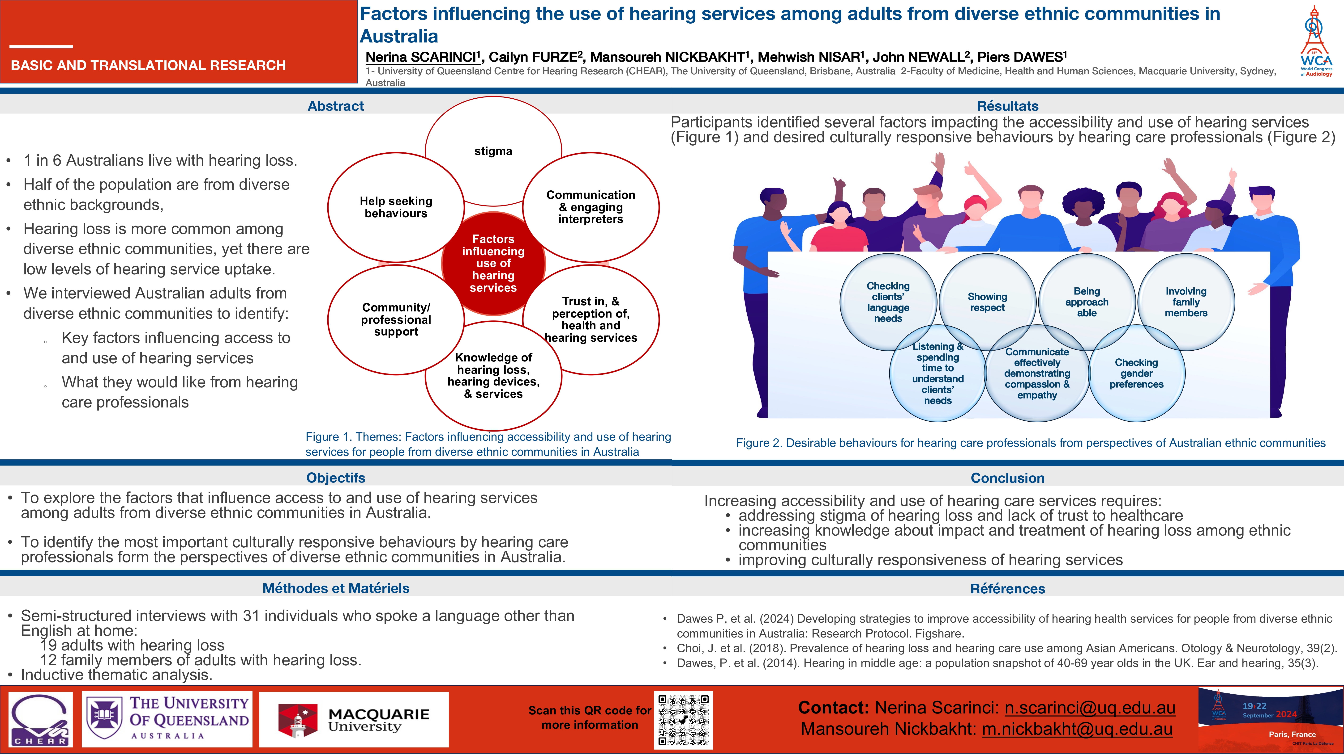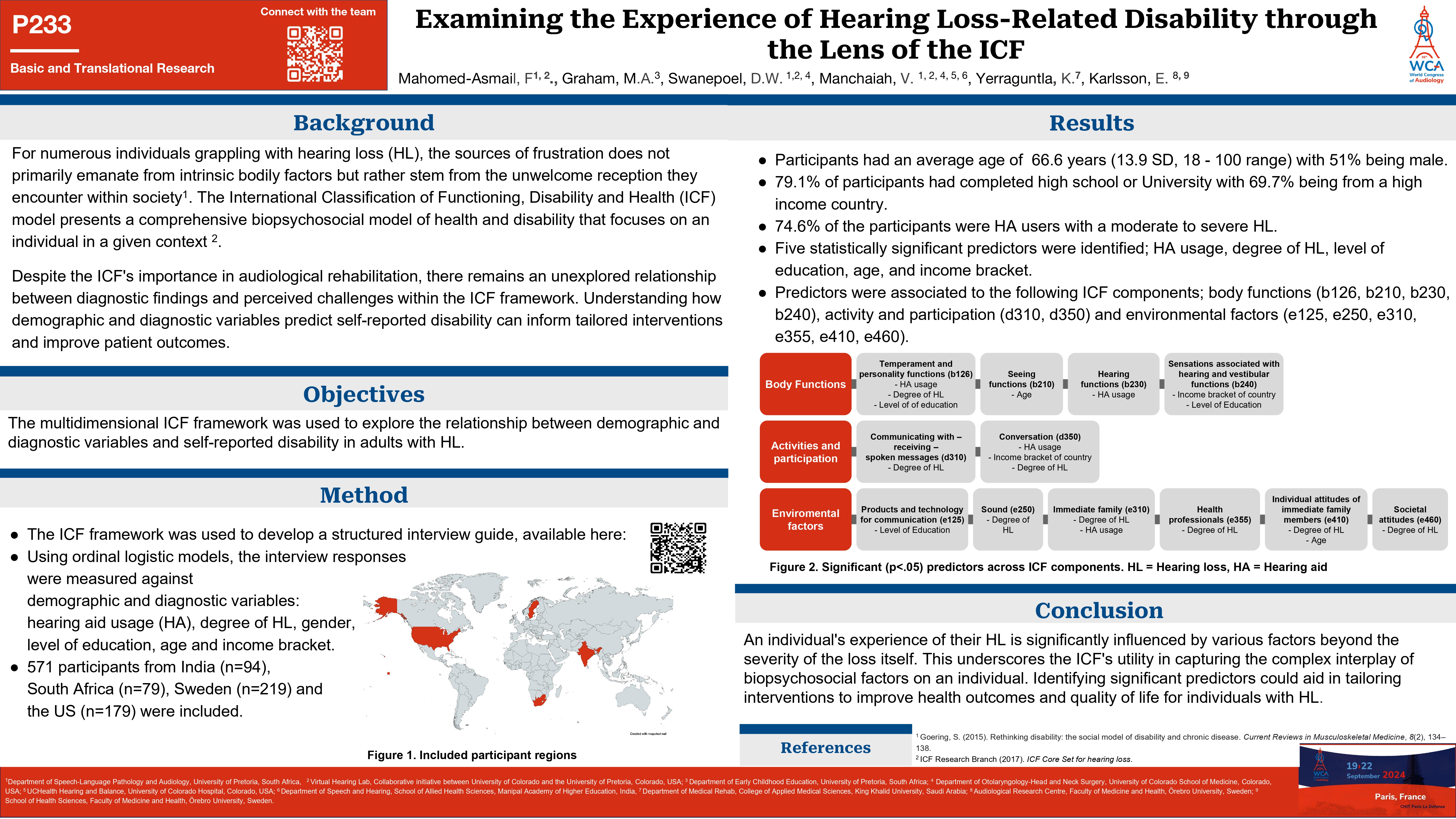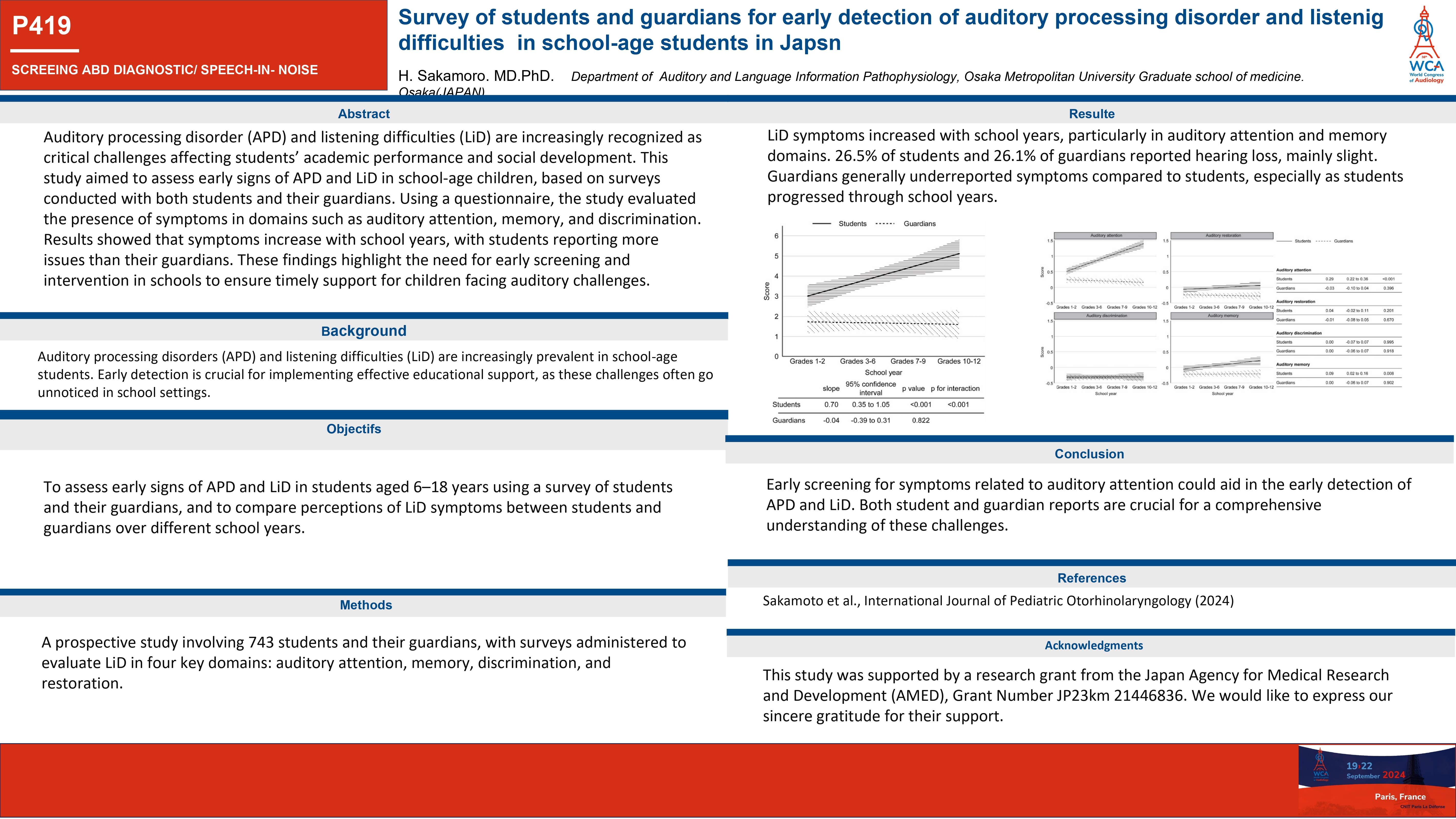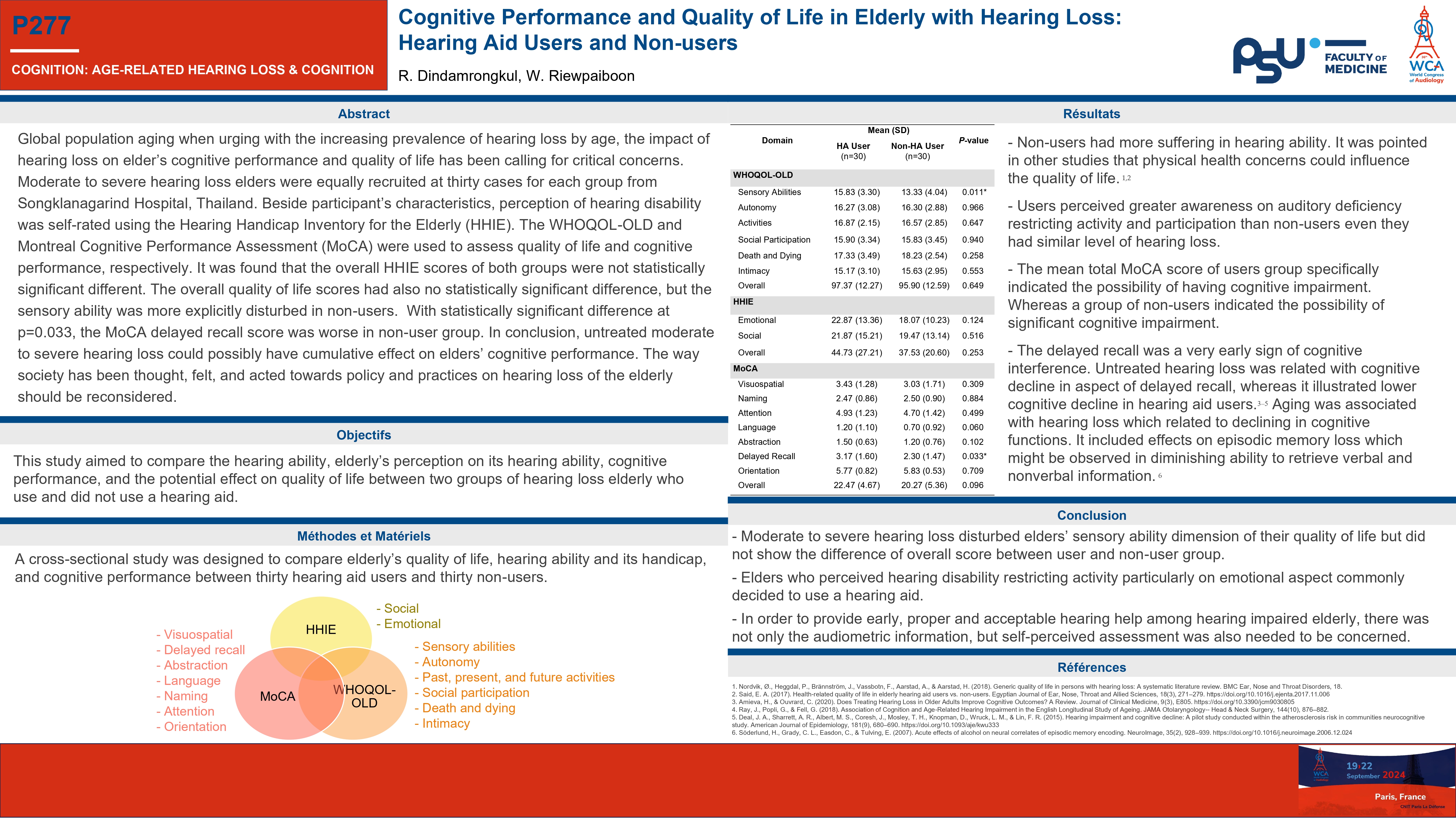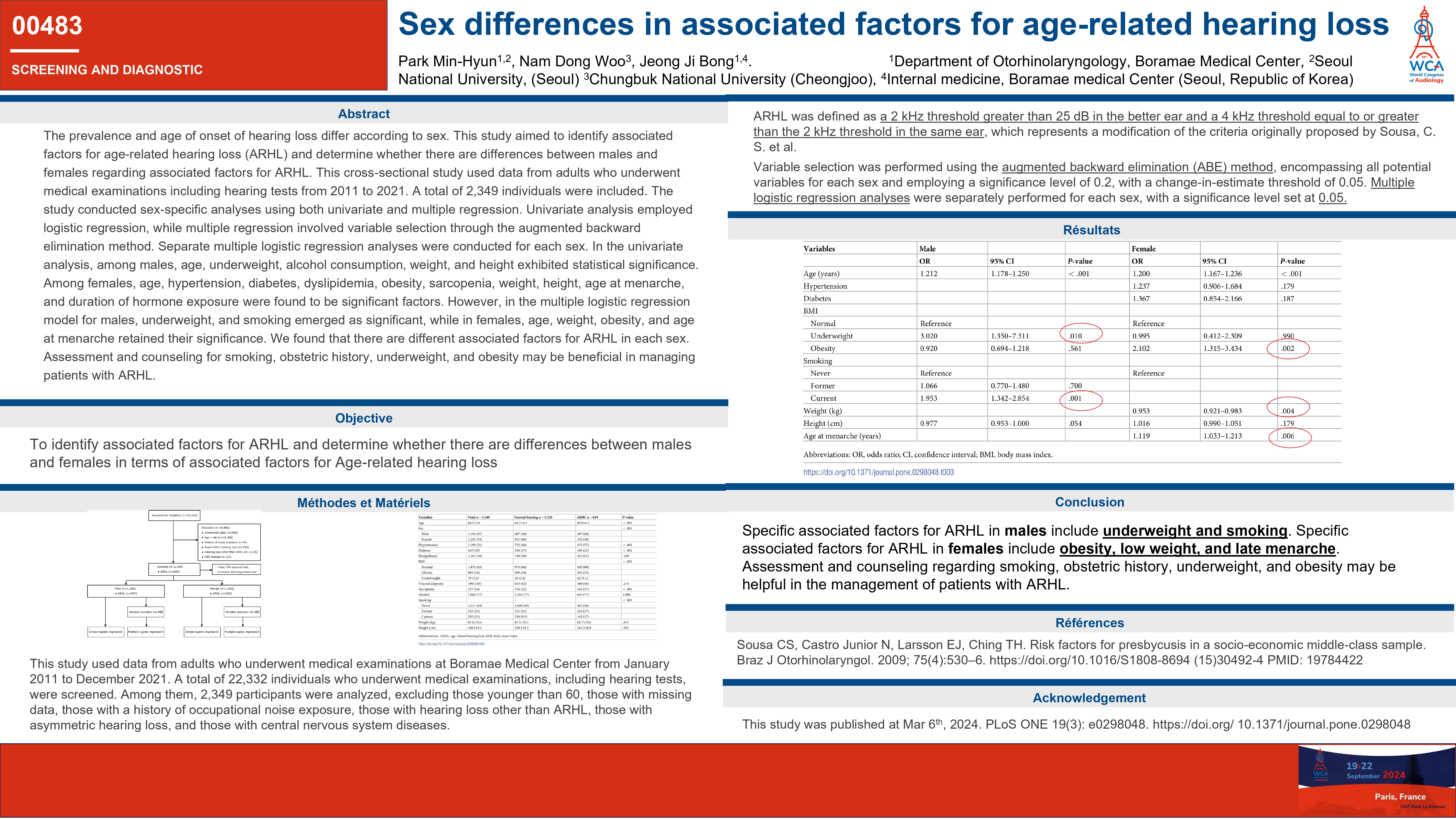 | P046 – Sex differences in associated factors for age-related hearing loss | Screening and Diagnostic | screening-and-diagnostic | |