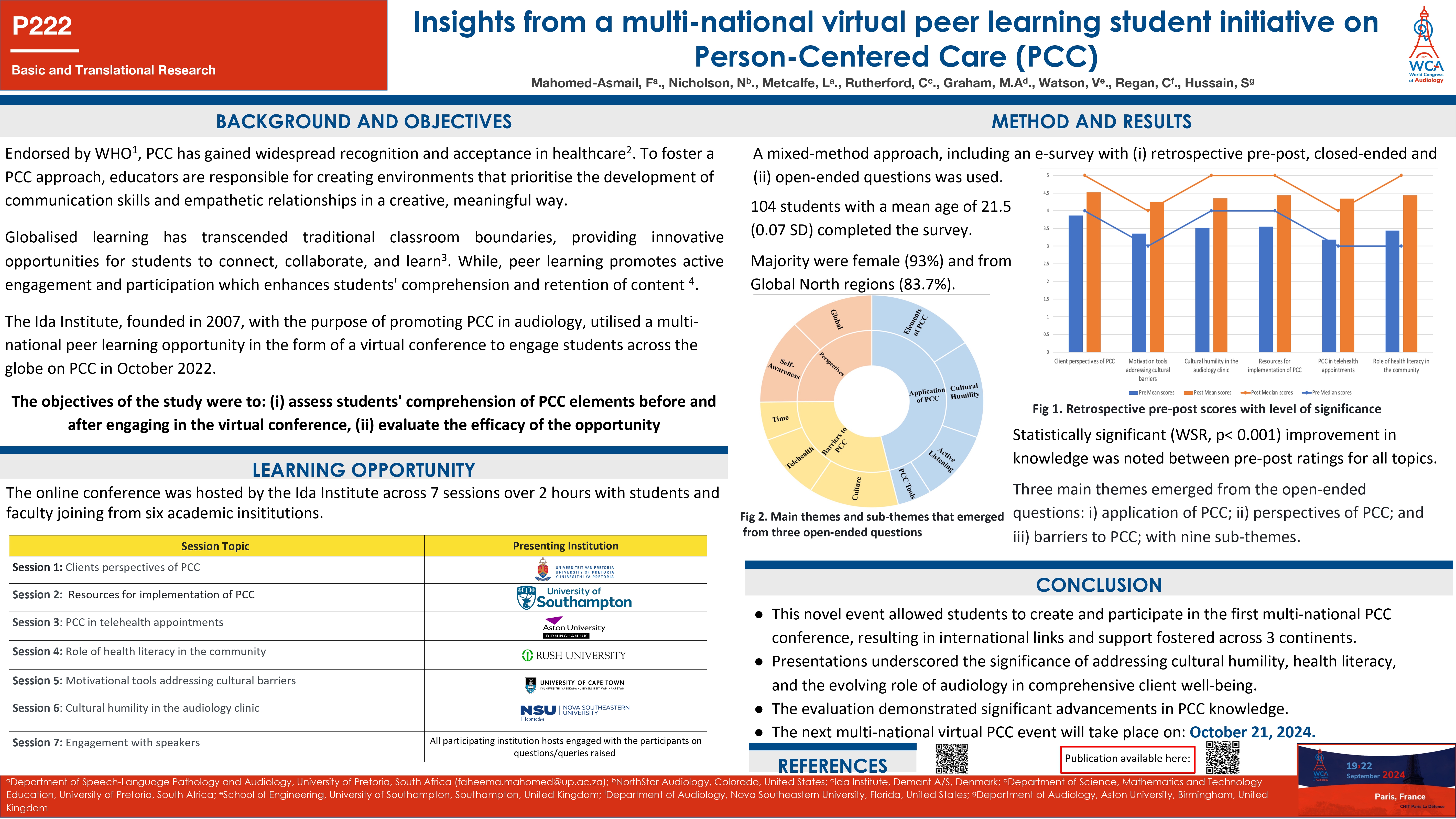 | P051 – The impact of using the Ida “My Hearing Explained” tool on audiologists’ language and patient understanding of hearing test results: a comparison with standard audiogram explanations. | Screening and Diagnostic | screening-and-diagnostic | |