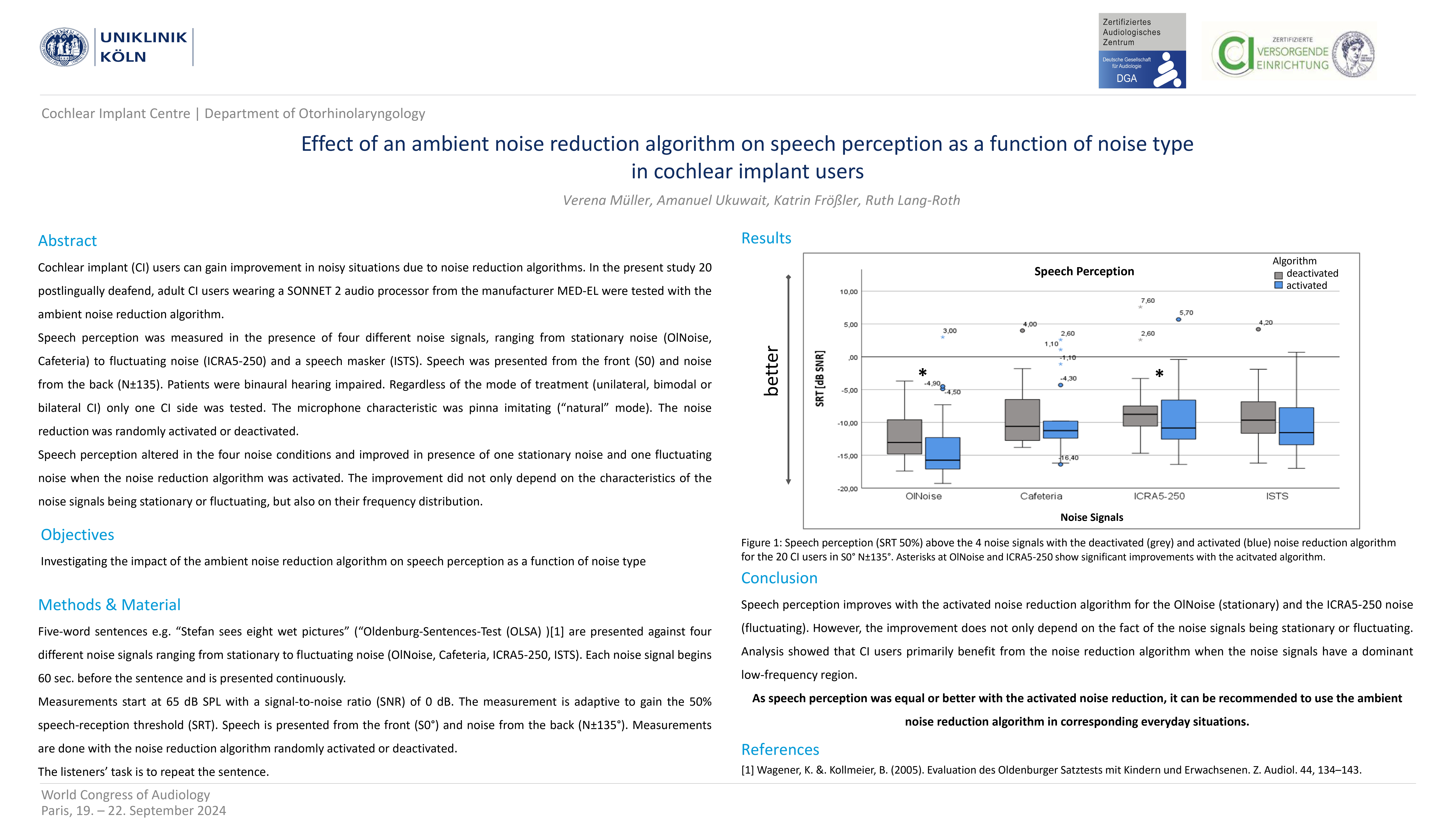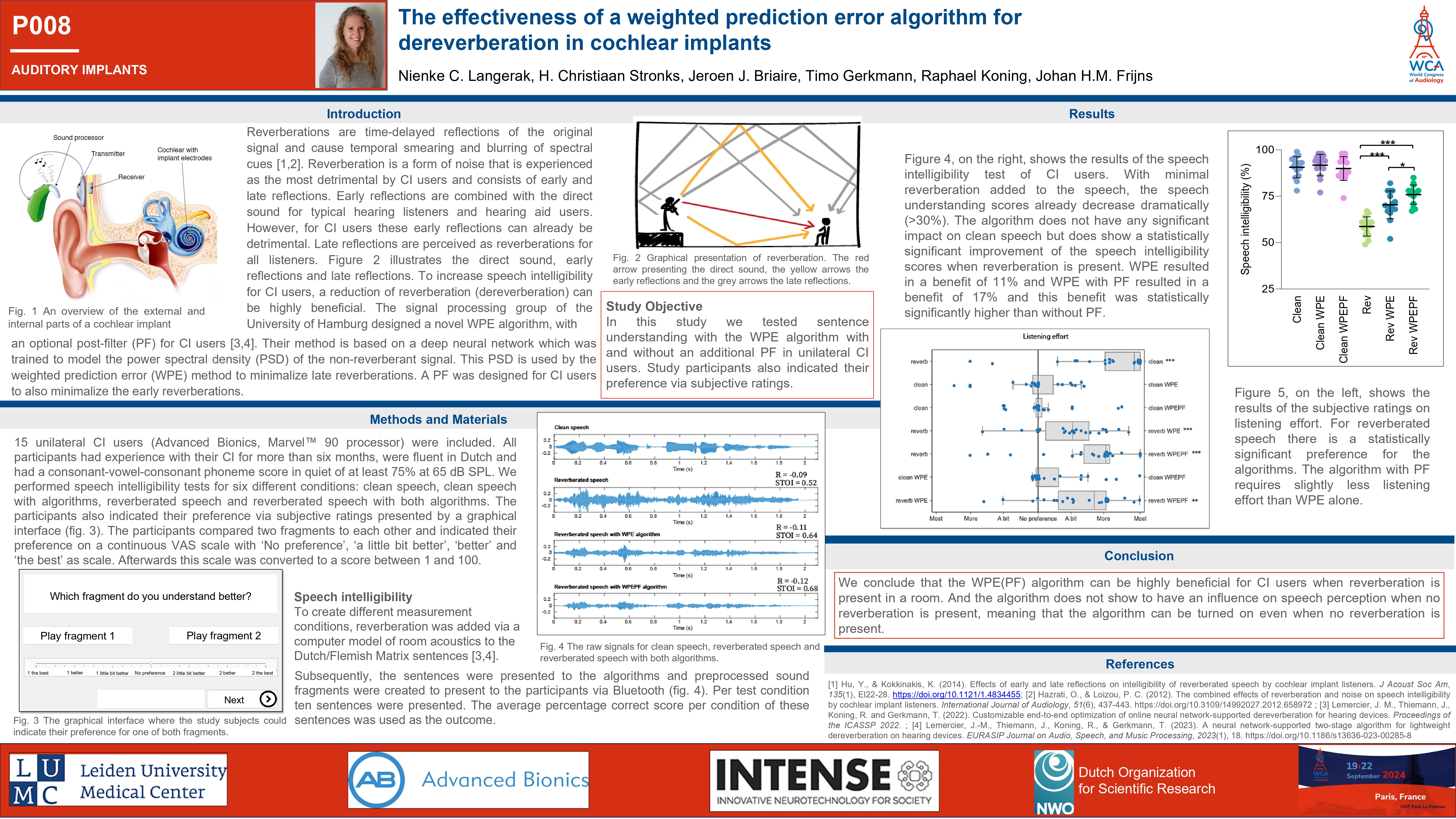 | P008 – The effectiveness of a weighted prediction error algorithm for dereverberation in cochlear implants | Auditory Implants | auditory-implants | |