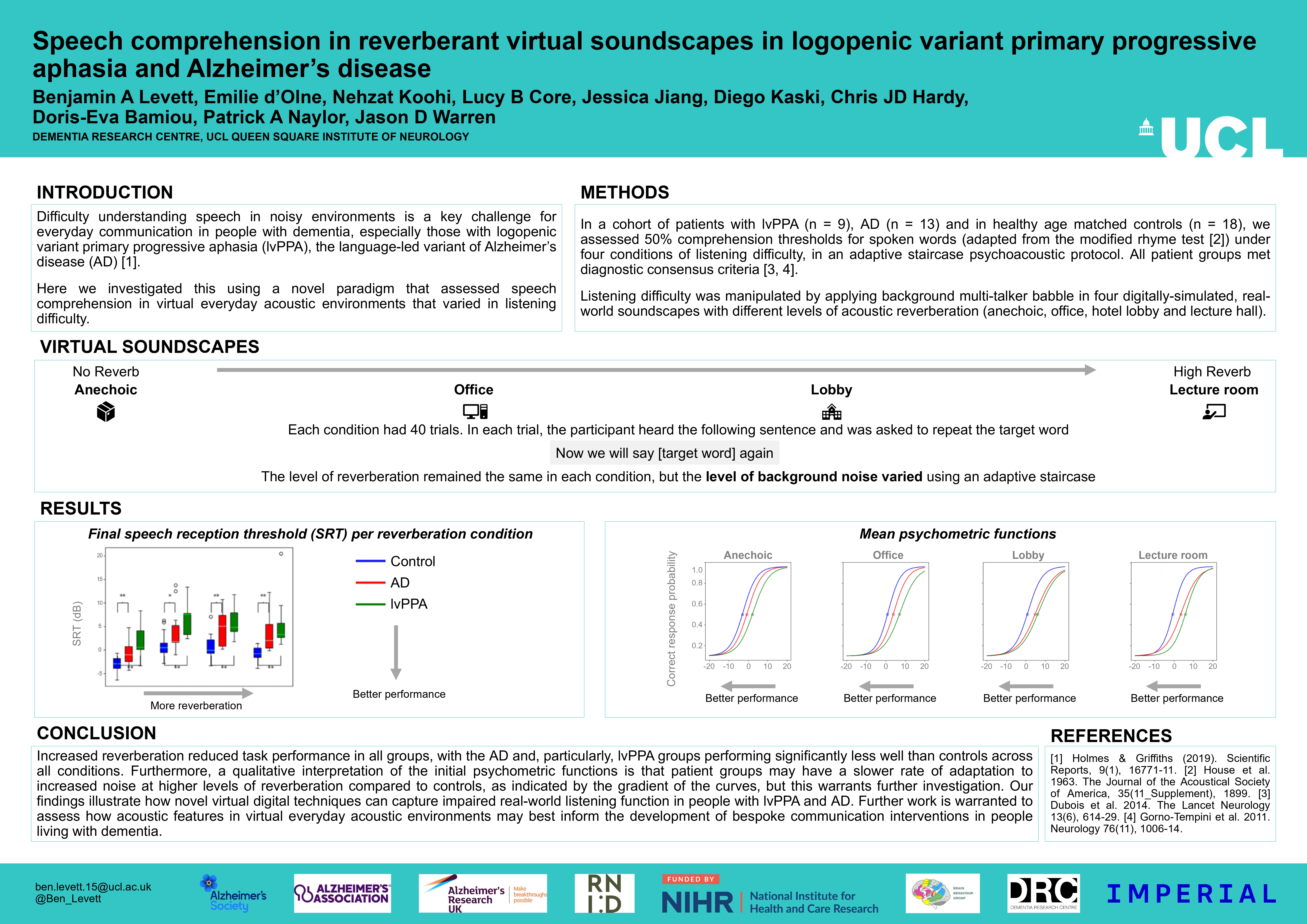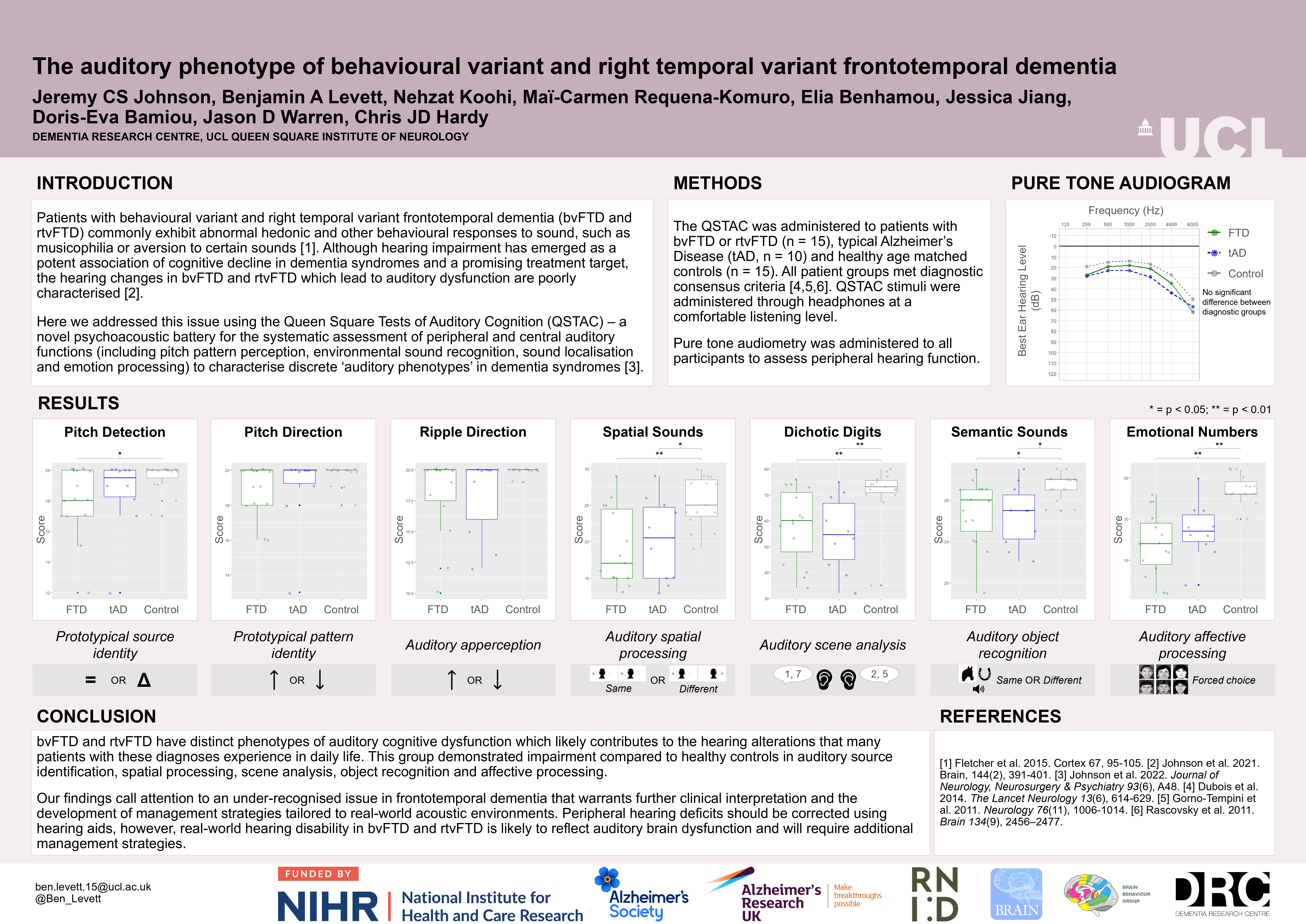| P027 – The auditory phenotype of behavioural variant and right temporal variant frontotemporal dementia | Cognition | cognition | |