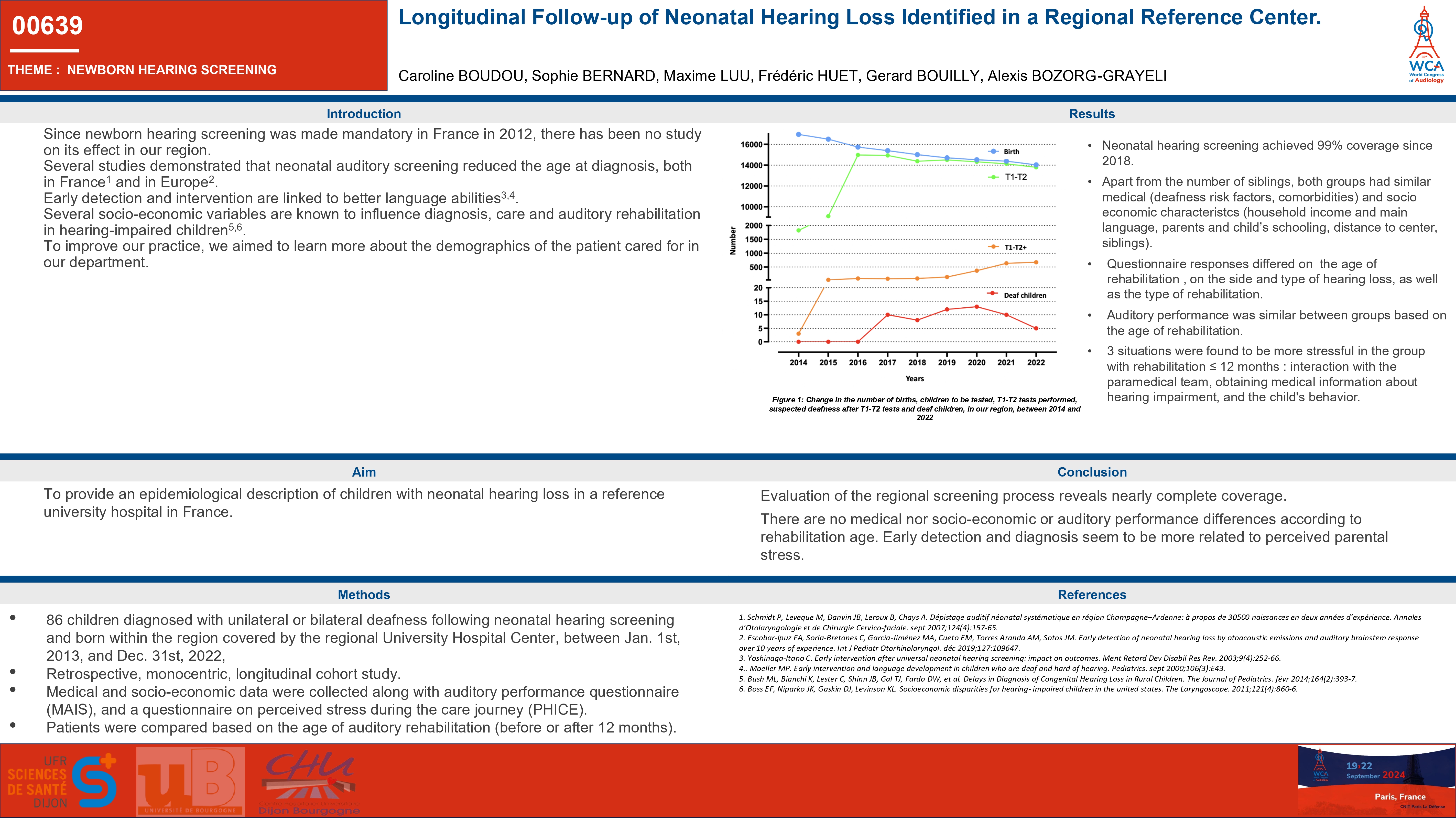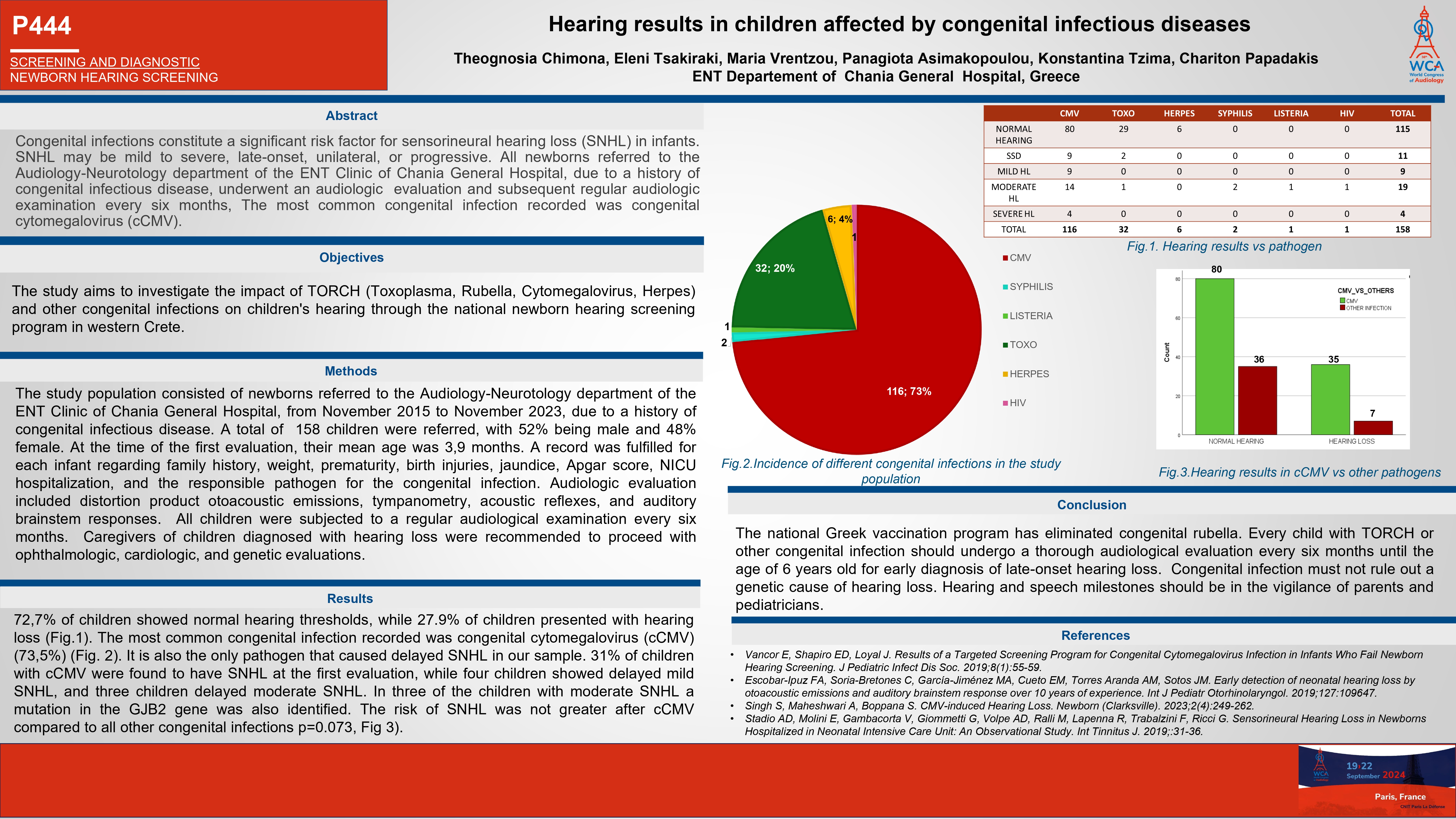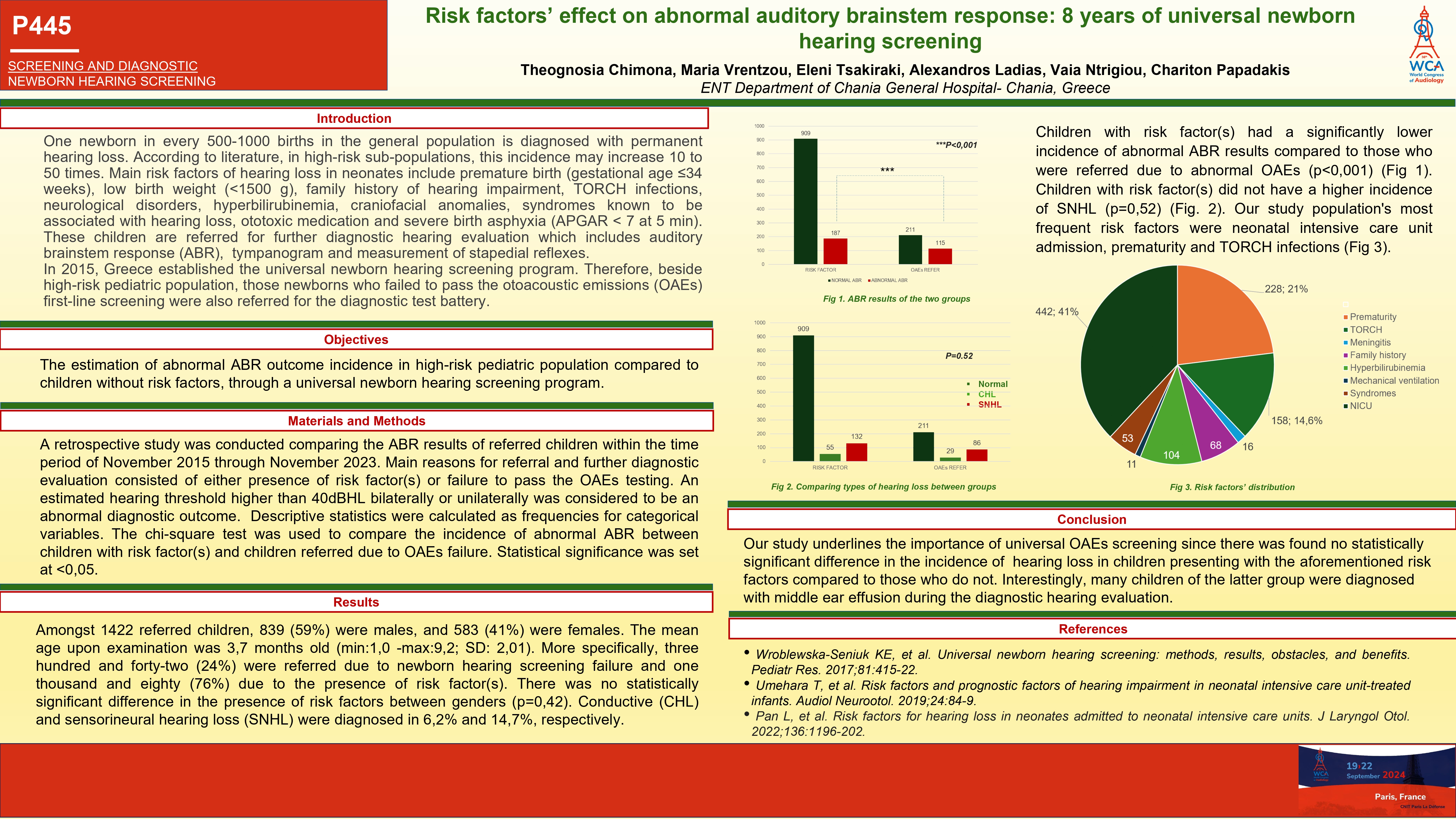 | P045 – Estimation of an audiogram using Chirp stimulus in children with sensorioneural hearing loss. | Screening and Diagnostic | screening-and-diagnostic | |