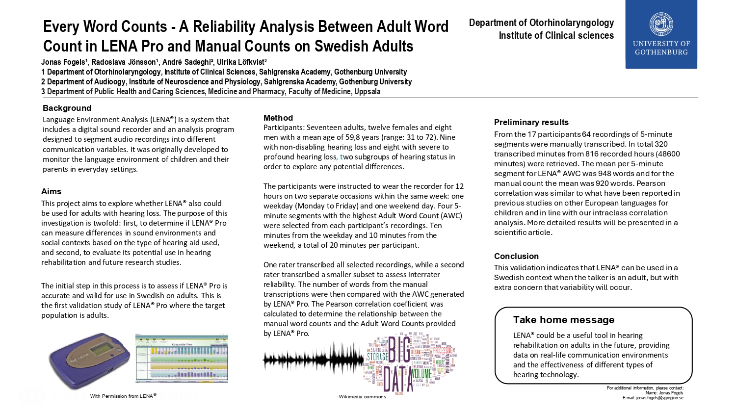 | P480 – Every word counts – a reliability analysis between Adult Word Count in LENA Pro and Manual Counts on Swedish Adults | Speech and Language | speech-and-language | |