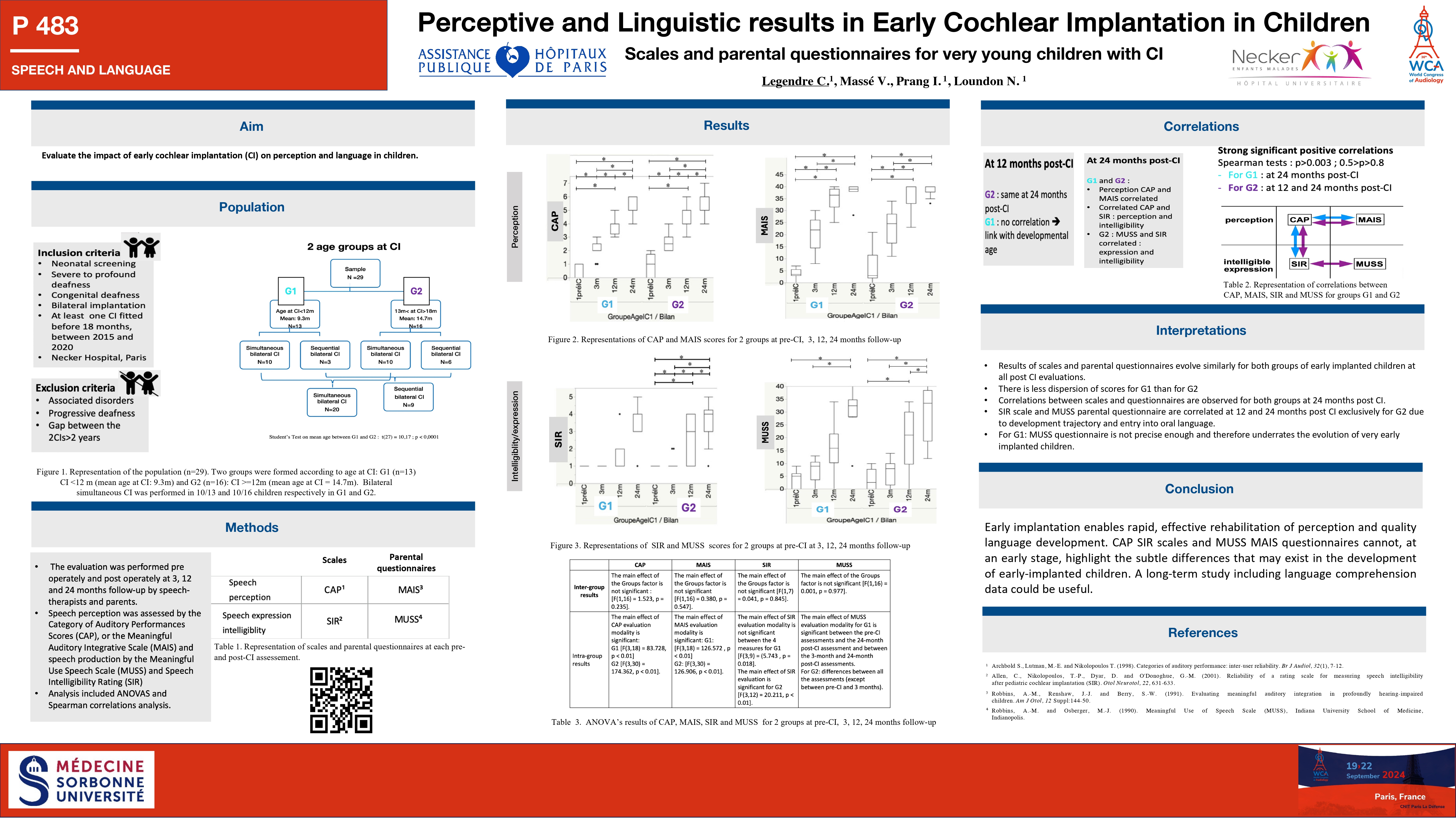 | P483 – Perceptive and Linguistic results in Early Cochlear Implantation in Children | Speech and Language | speech-and-language | |