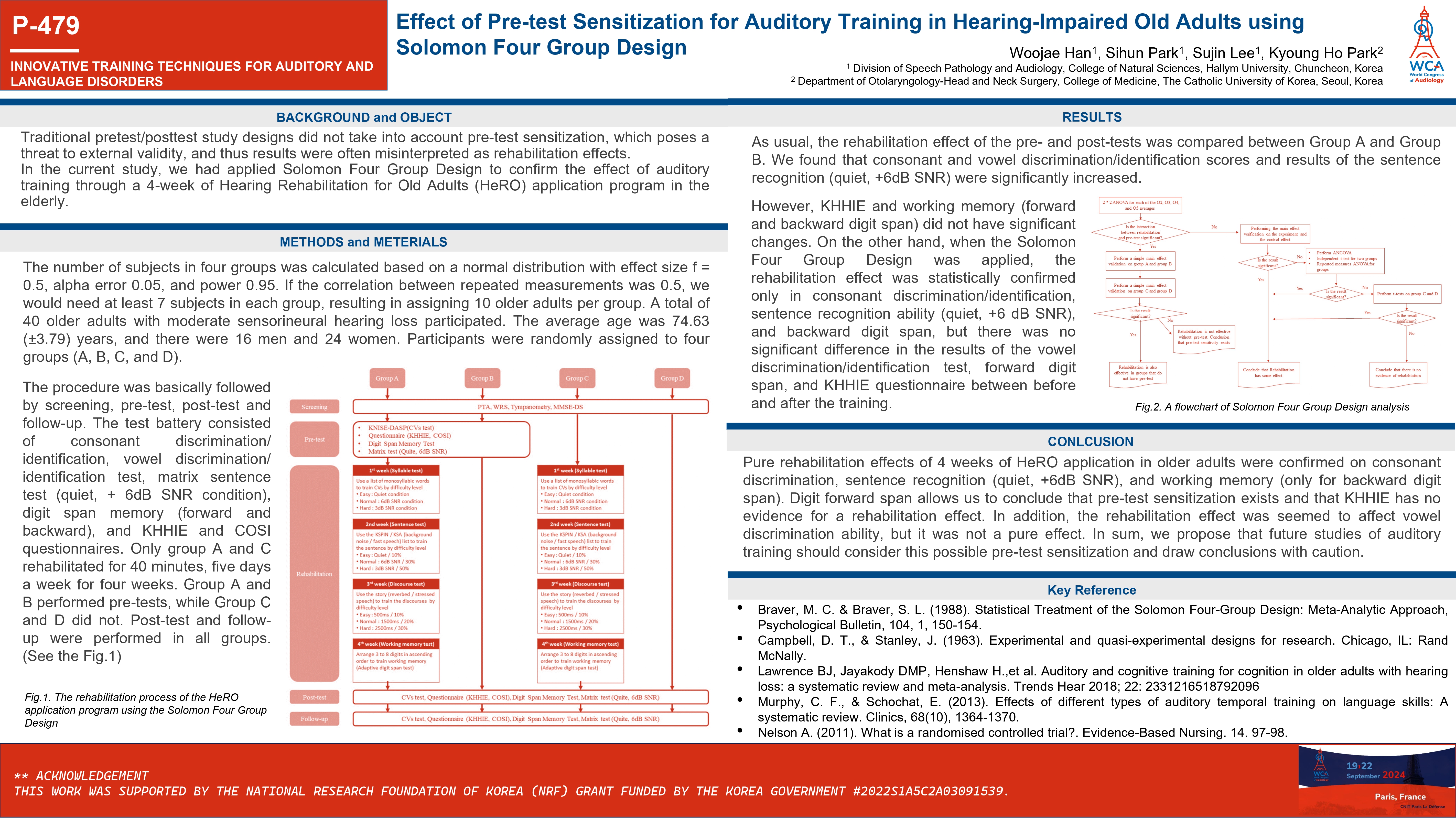 | P479 – Effect of Pre-test Sensitization for Auditory Training in Hearing-Impaired Old Adults using Solomon Four Group Design | Speech and Language | speech-and-language | |