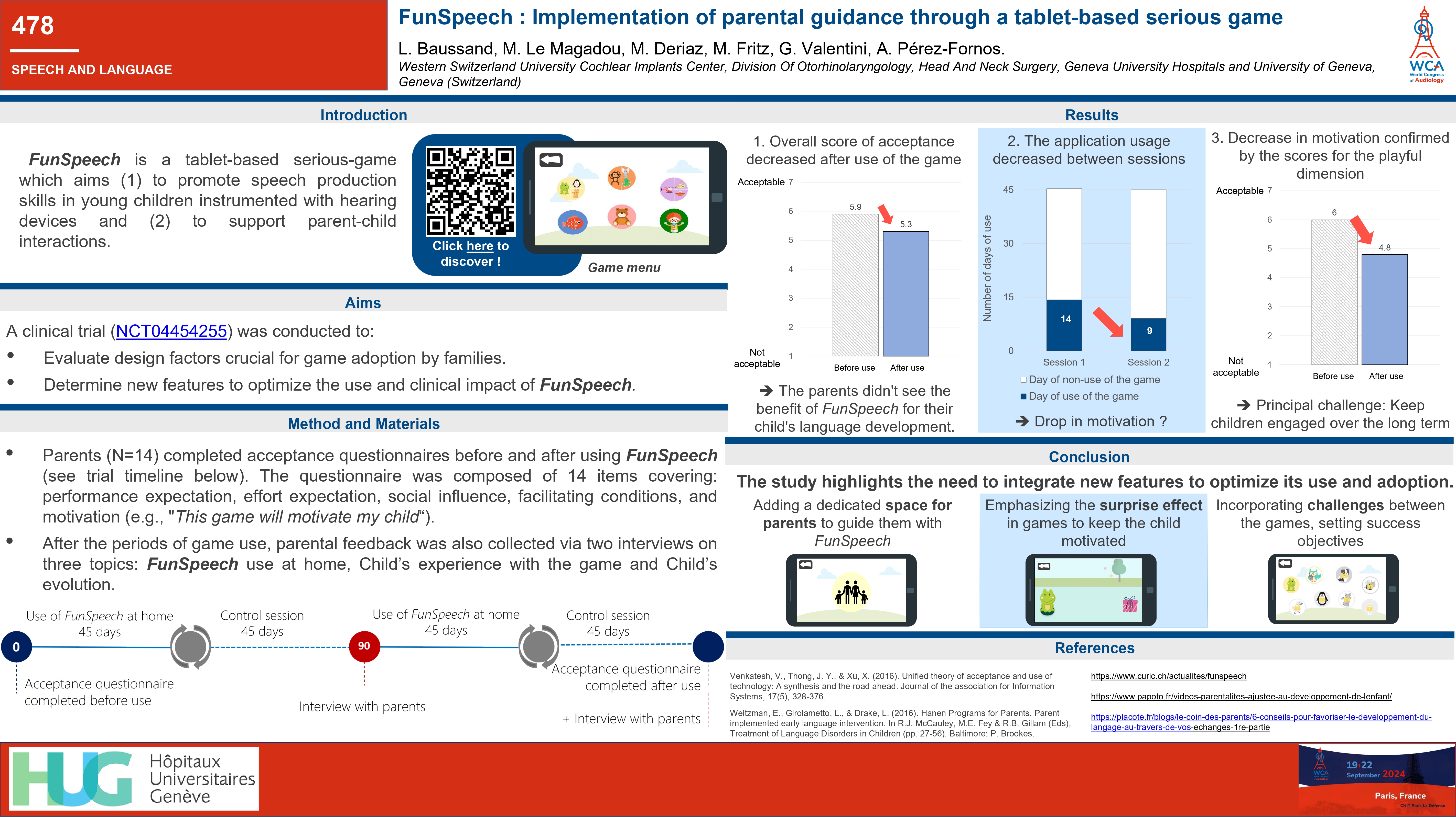 | P478 – Funspeech : Implementation of parental guidance tools through a tablet-based serious game | Speech and Language | speech-and-language | |