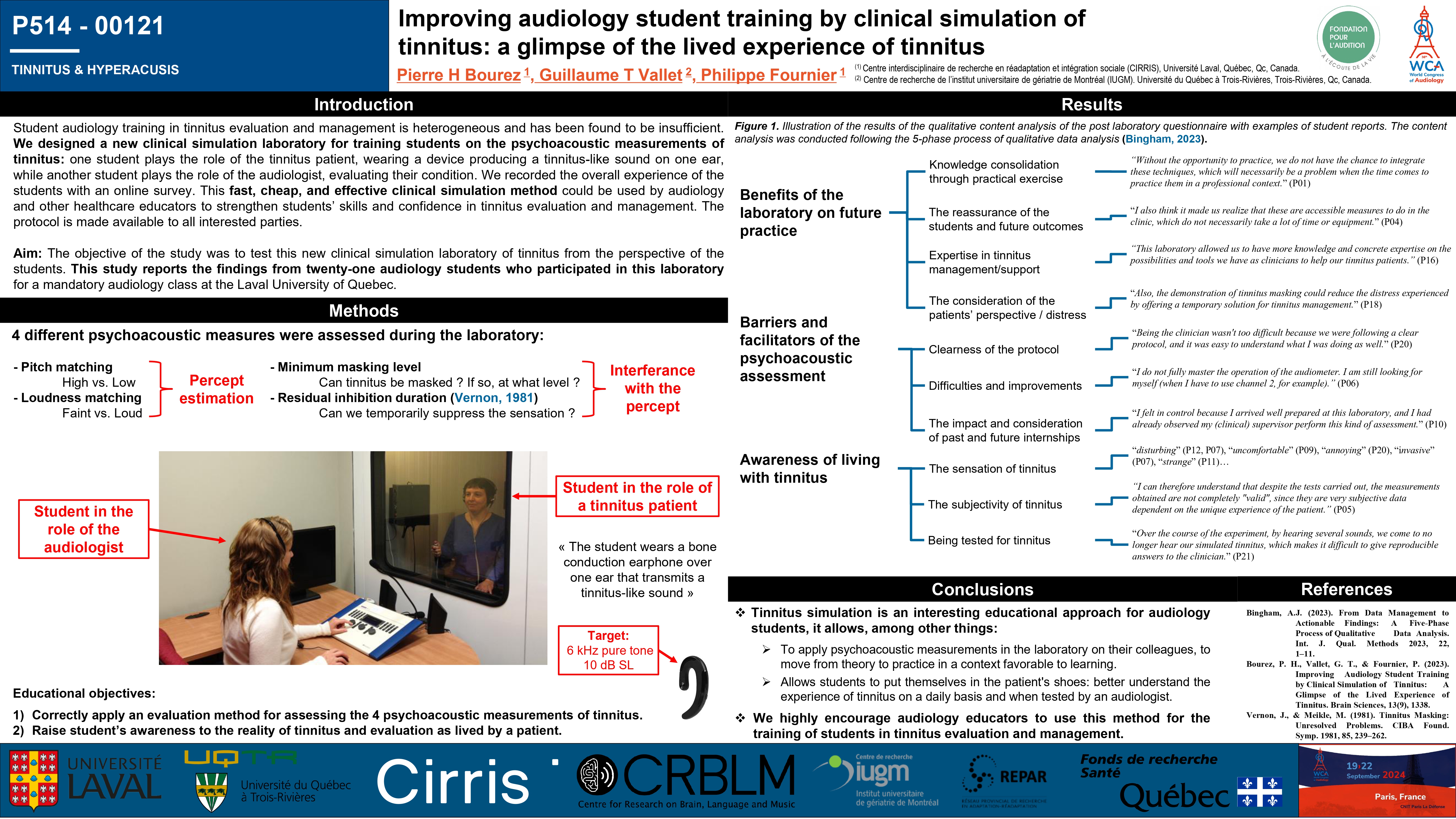 | P514 – Improving audiology student training by clinical simulation of tinnitus: a glimpse of tinnitus lived experience | Tinnitus and Hypercusis | tinnitus-and-hypercusis | |