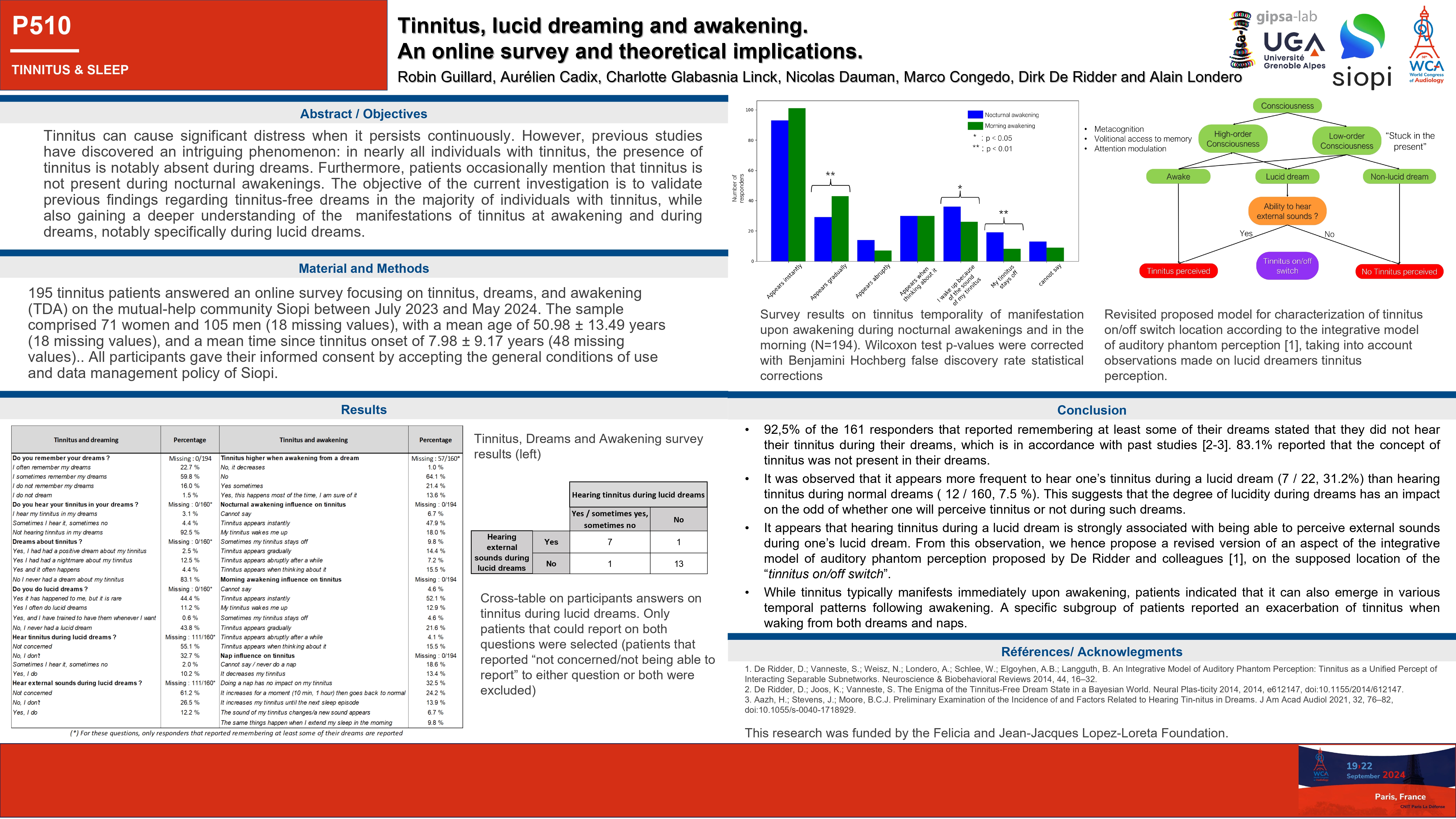 | P510 – Tinnitus, dreams and awakening: new insights and theoretical implications | Tinnitus and Hypercusis | tinnitus-and-hypercusis | |