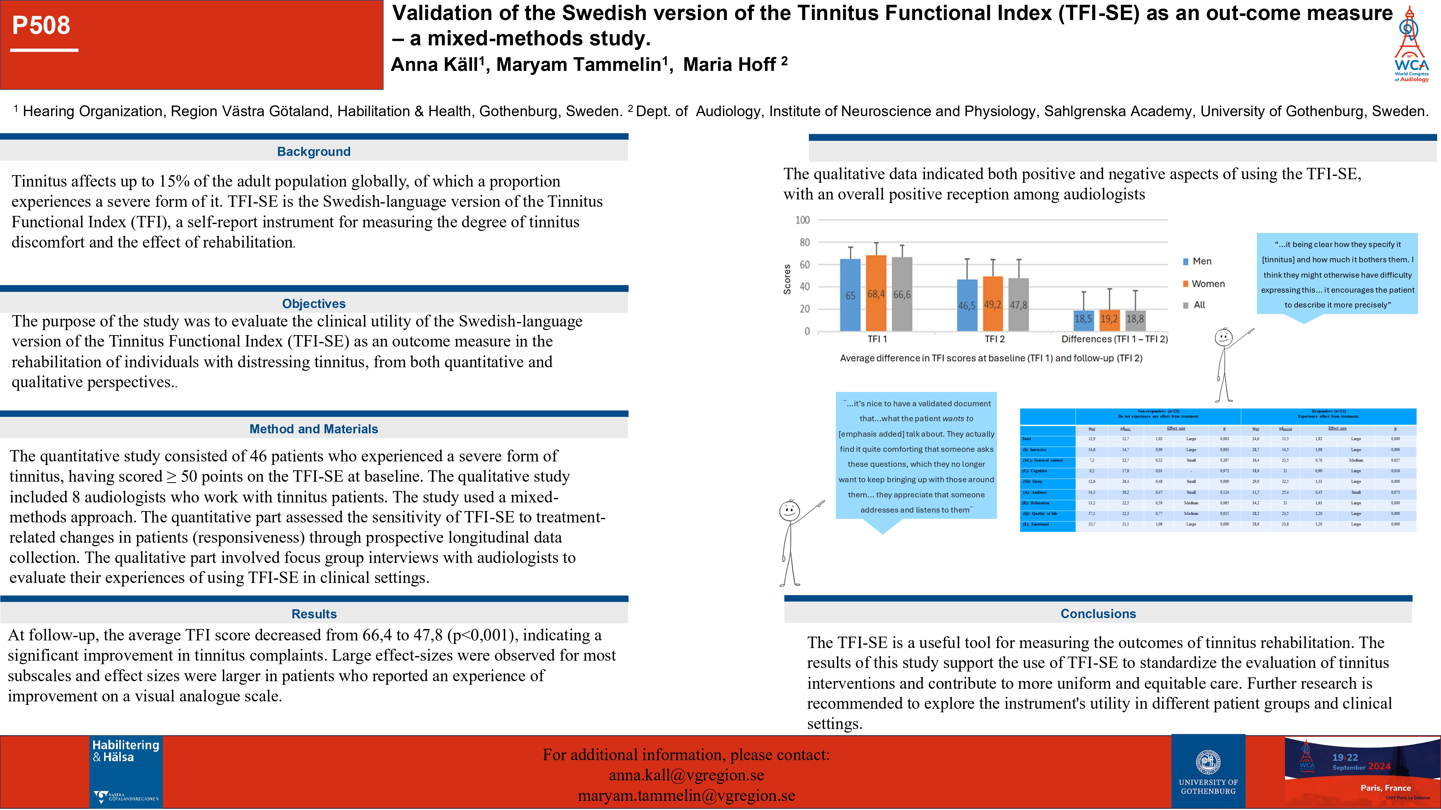 | P508 – Validation of the Swedish version of the Tinnitus Functional index | Tinnitus and Hypercusis | tinnitus-and-hypercusis | |