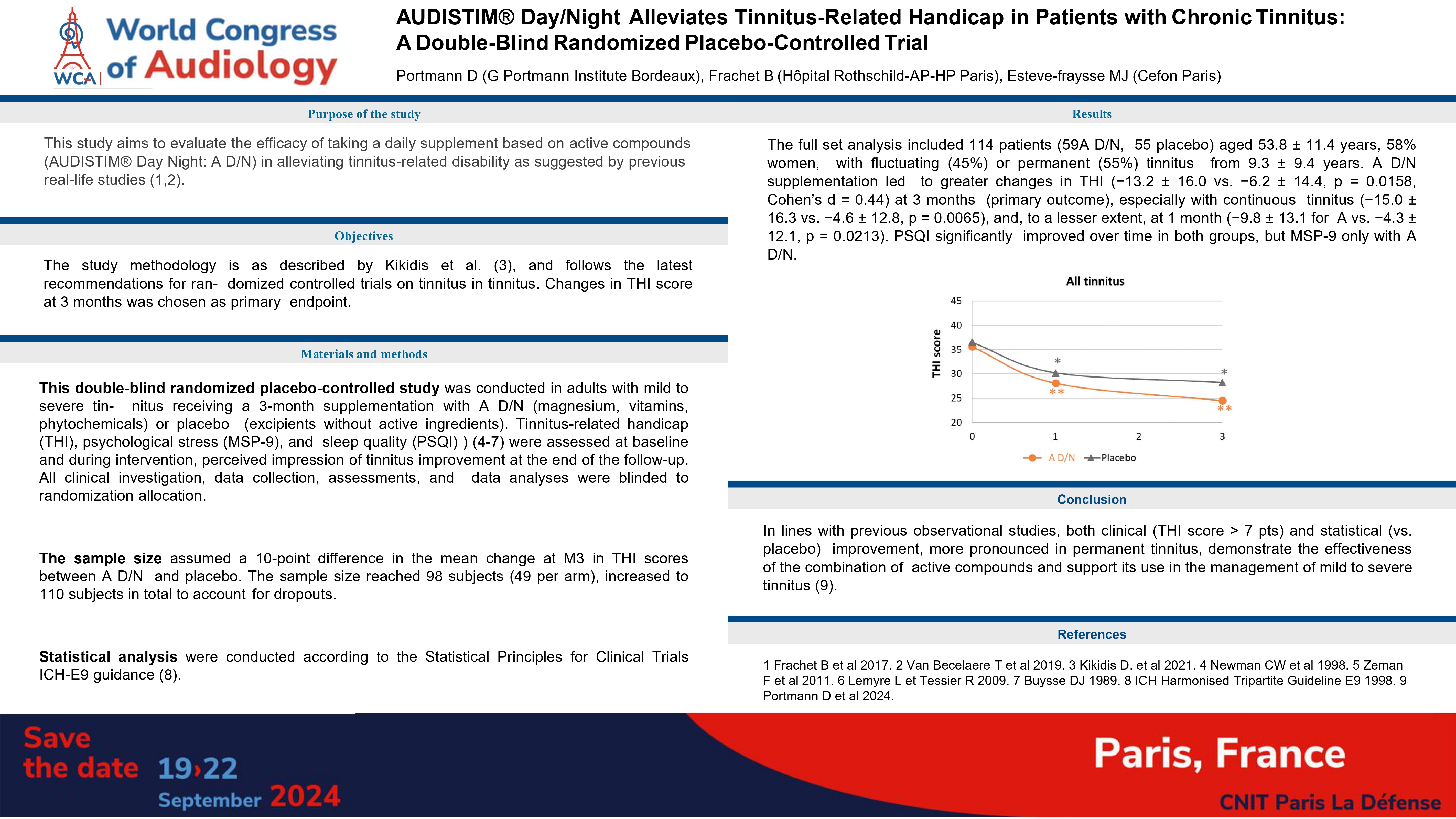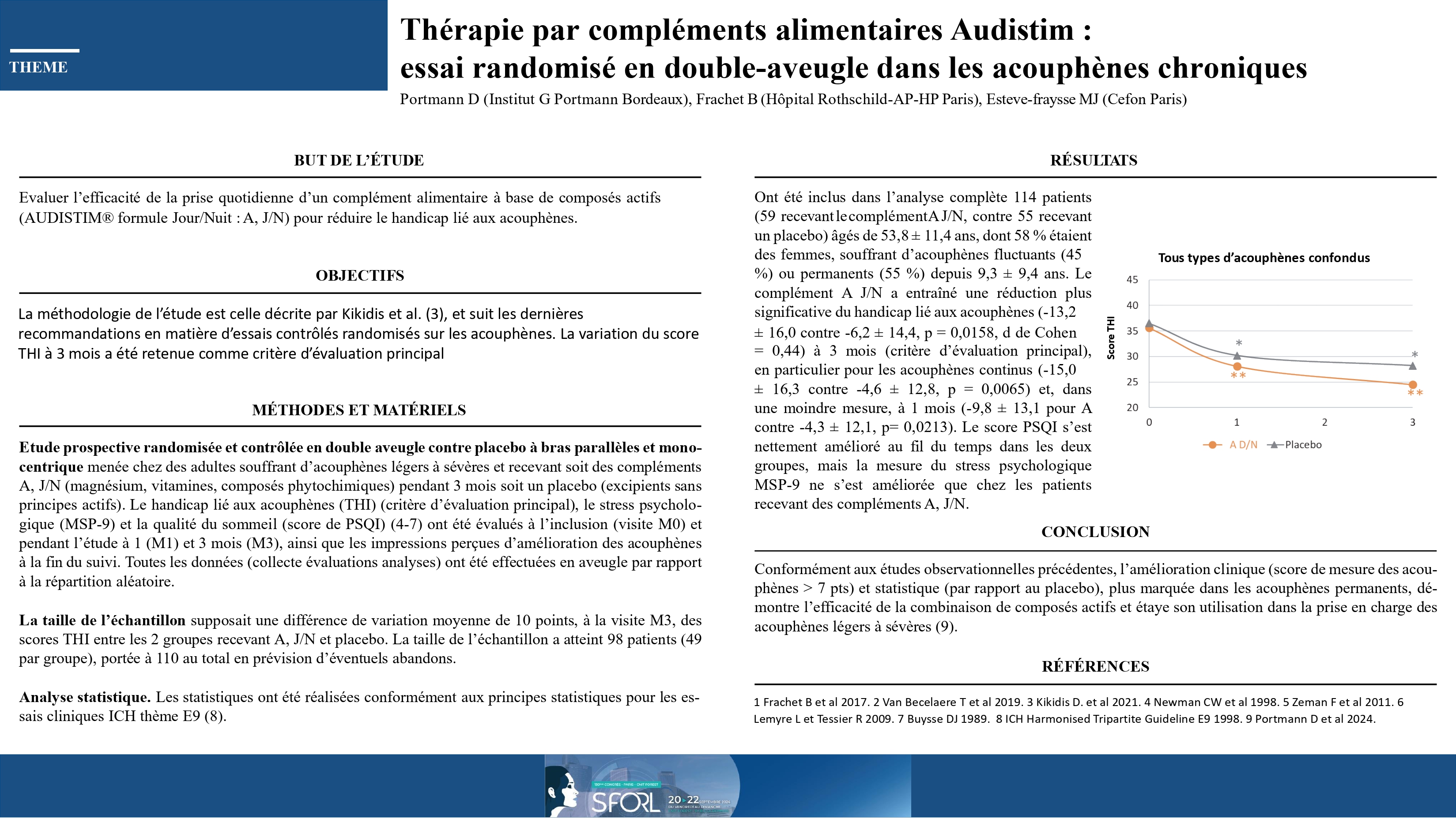 | P506 – Food supplement therapy Audistim : Randomized double-blind trial in chronic tinnitus | Tinnitus and Hypercusis | tinnitus-and-hypercusis | |