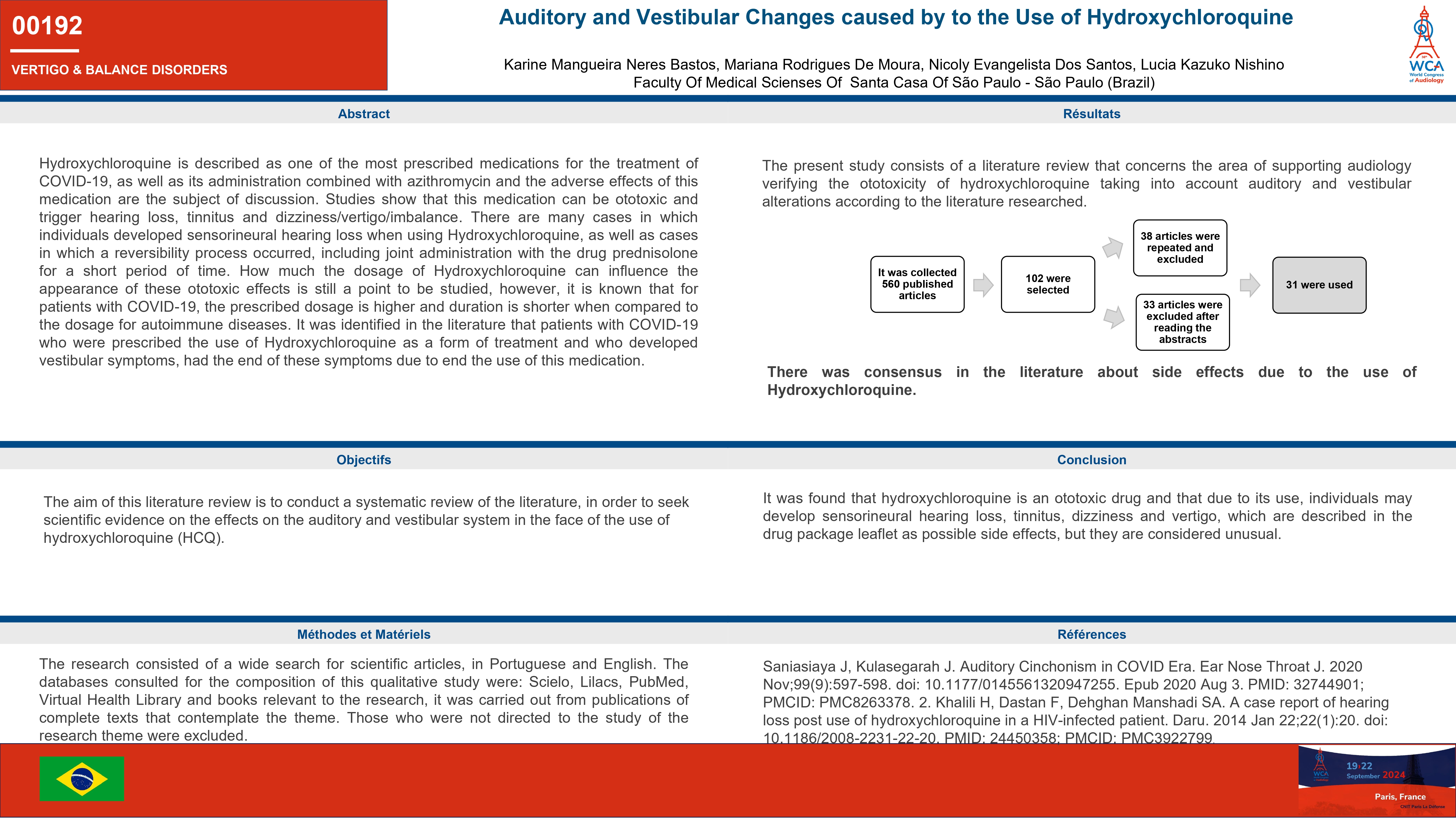 | P536 – Auditory and Vestibular Changes caused by to the Use of Hydroxychloroquine | Vertigo & Balance Disorders | vertigo-balance-disorders | |