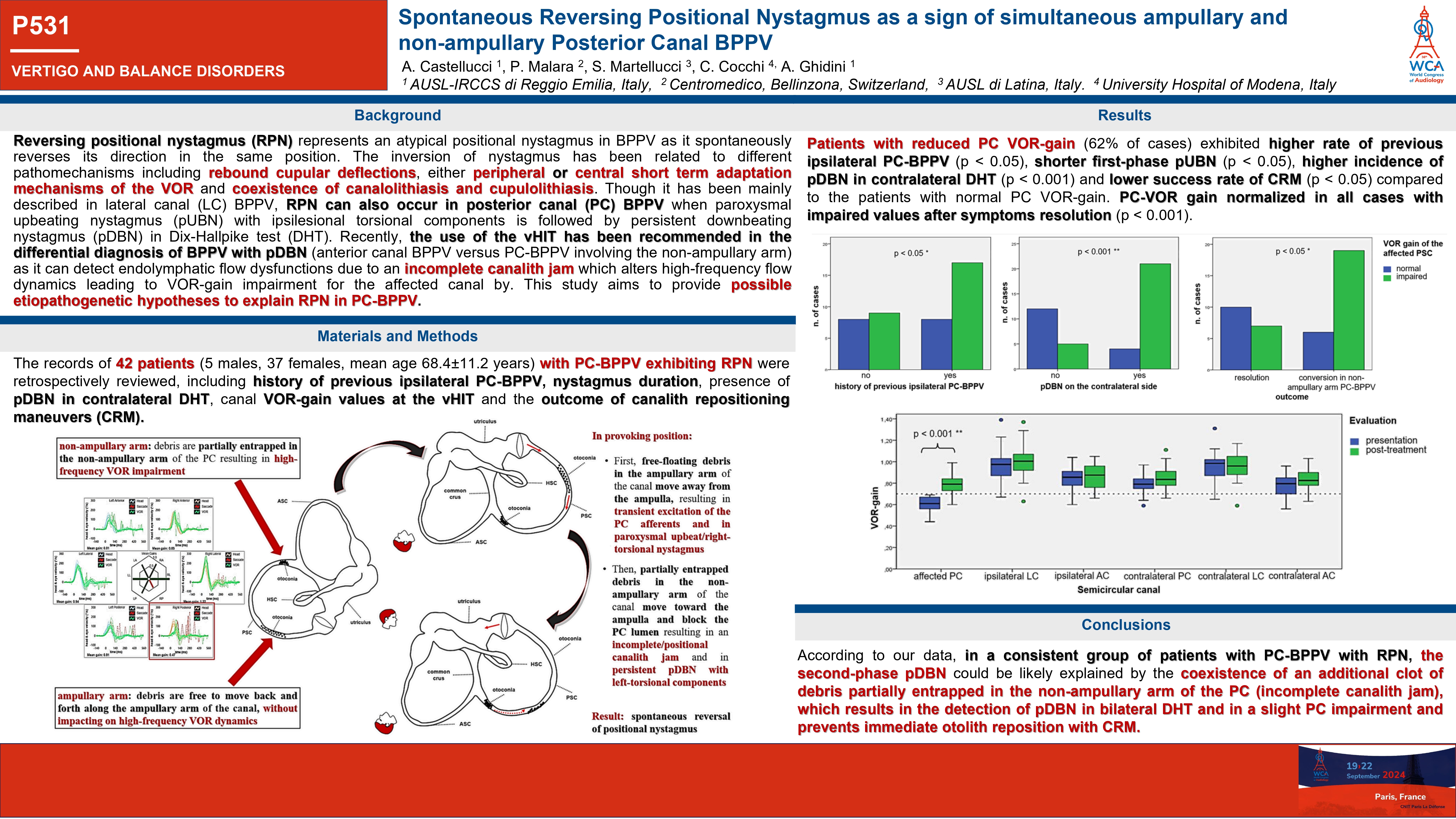| P531 – Spontaneous Reversing Positional Nystagmus as a sign of simultaneous ampullary and non-ampullary Posterior Canal BPPV | Vertigo & Balance Disorders | vertigo-balance-disorders | |