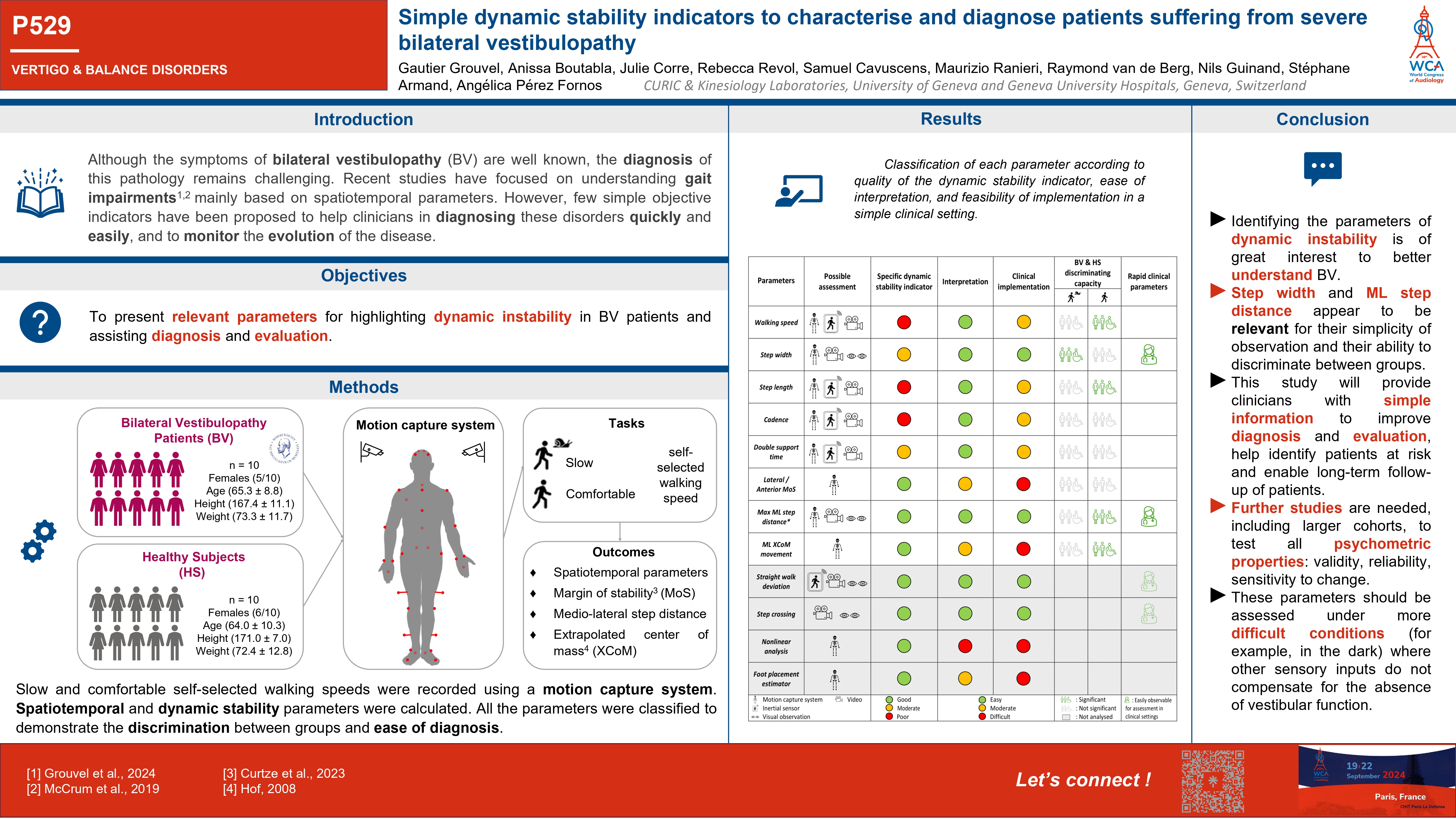| P529 – Simple dynamic stability indicators to characterise and diagnose patients suffering from severe bilateral vestibulopathy | Vertigo & Balance Disorders | vertigo-balance-disorders | |