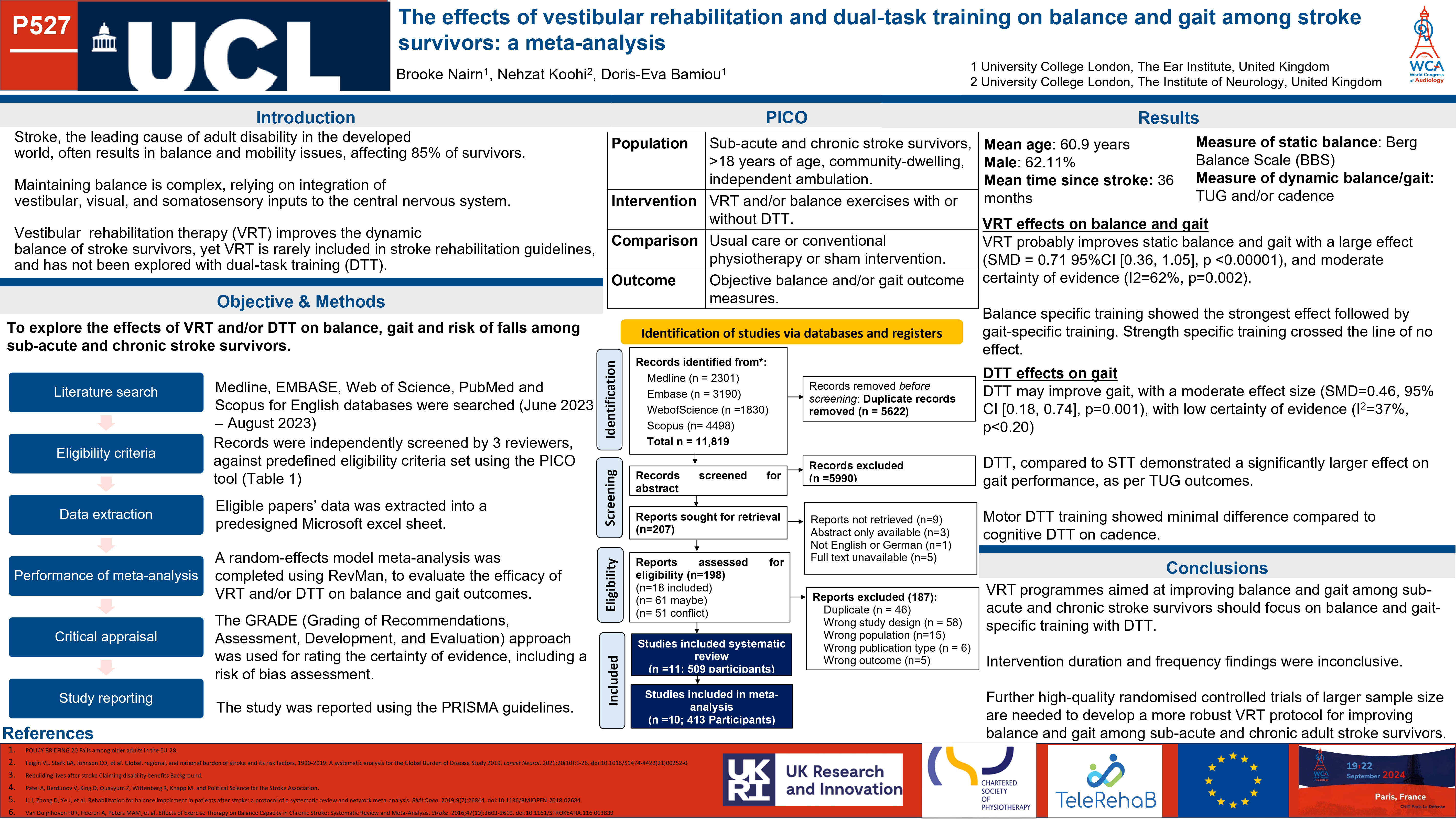 | P527 – The effects of vestibular rehabilitation and dual-task training on balance and gait in sub-acute and chronic stroke survivors | Vertigo & Balance Disorders | vertigo-balance-disorders | |