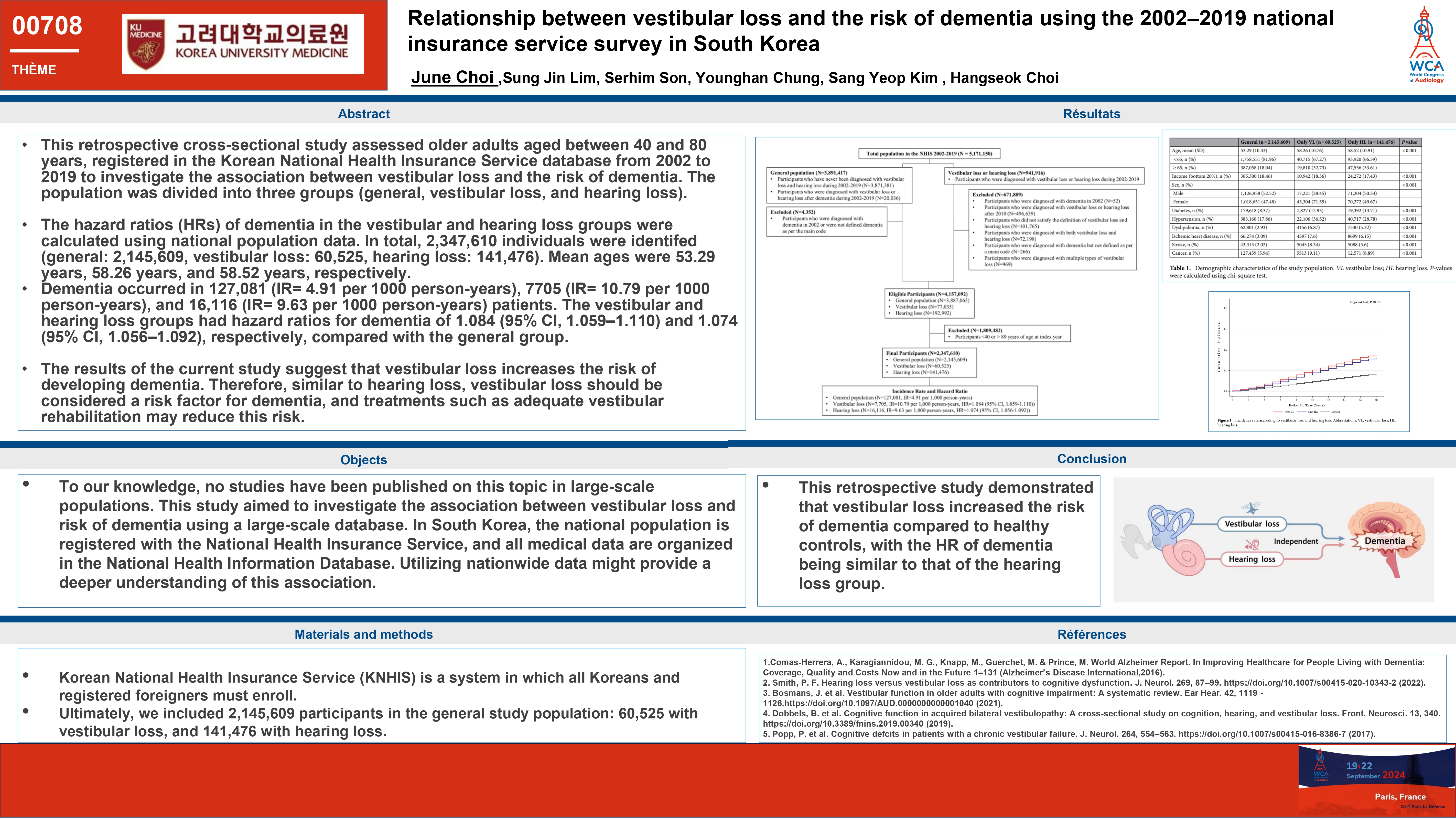 | P522 – Relationship between vestibular loss and the risk of dementia using the 2002–2019 national insurance service survey in South Korea | Vertigo & Balance Disorders | vertigo-balance-disorders | |