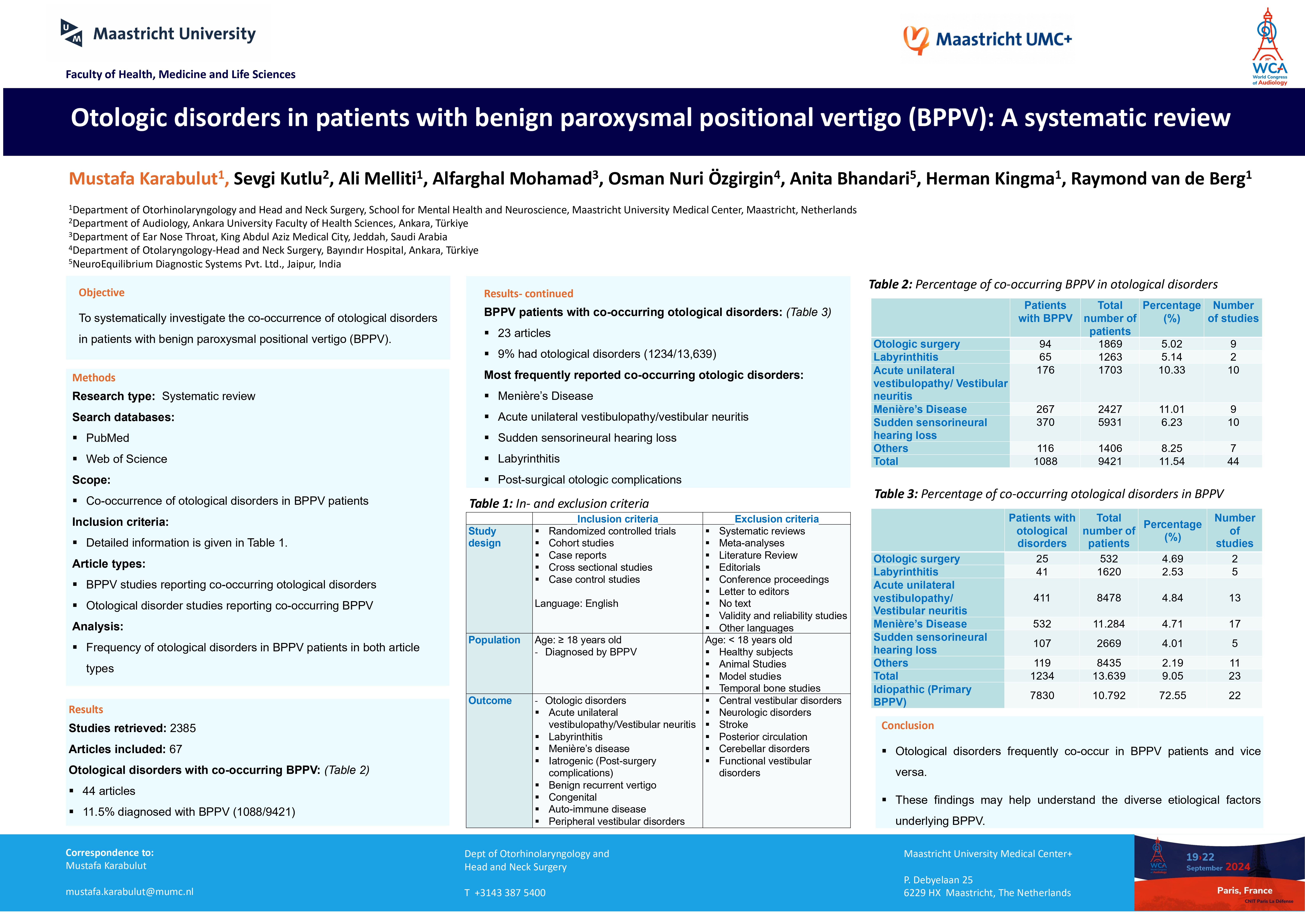 | P521 – Audiovestibular disorders in patients with benign paroxysmal positional vertigo (BPPV) : A systematic review | Vertigo & Balance Disorders | vertigo-balance-disorders | |