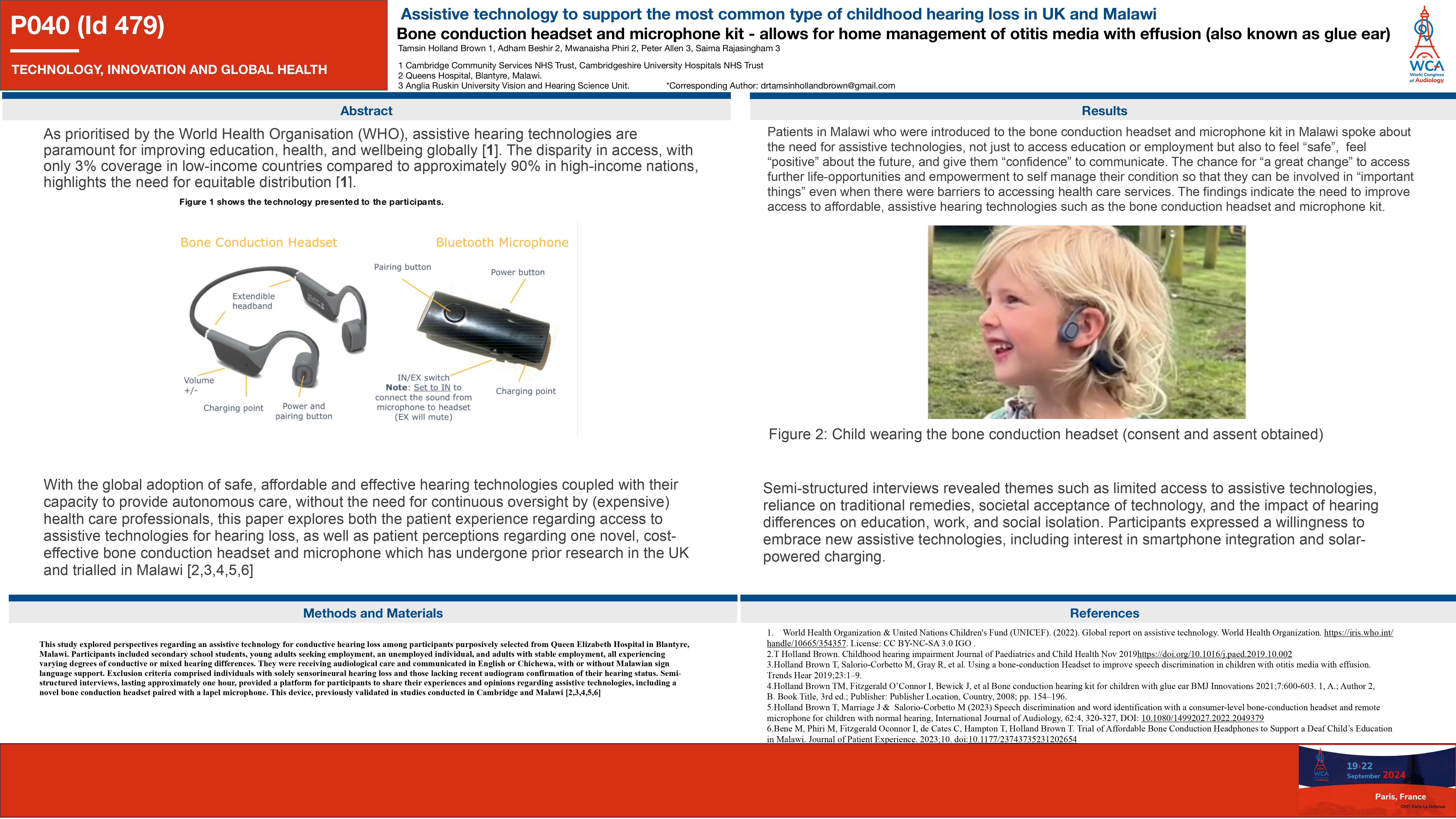 | P040 – Assistive technology to support the most common type of childhood hearing loss in UK and Malawi | Innovative Technologies and Translational Therapies | innovative-technologies-and-translational-therapies | |