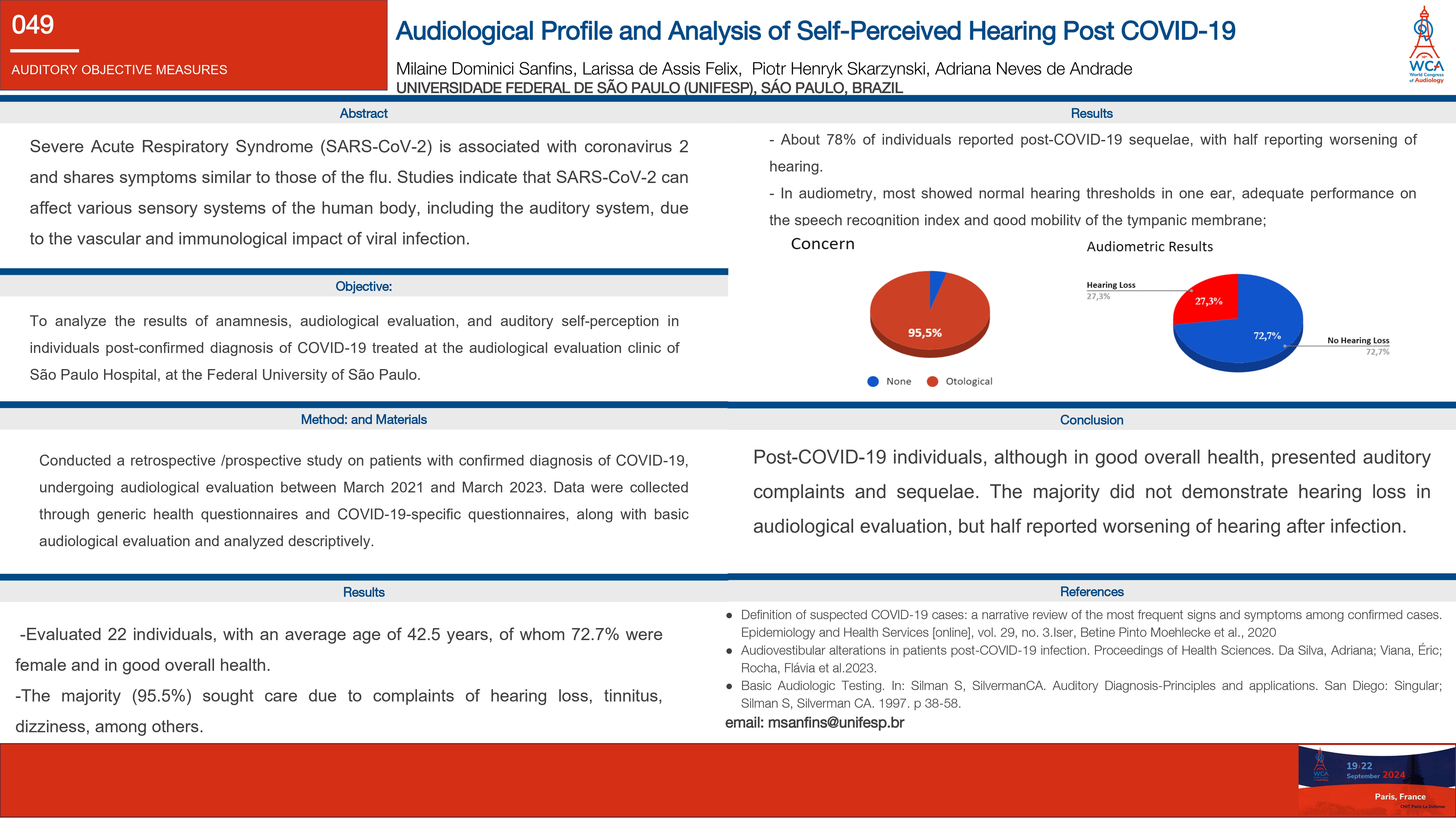 | P049 – Audiological profile and analysis of auditory self-perception post-covid-19 | Screening and Diagnostic | screening-and-diagnostic | |