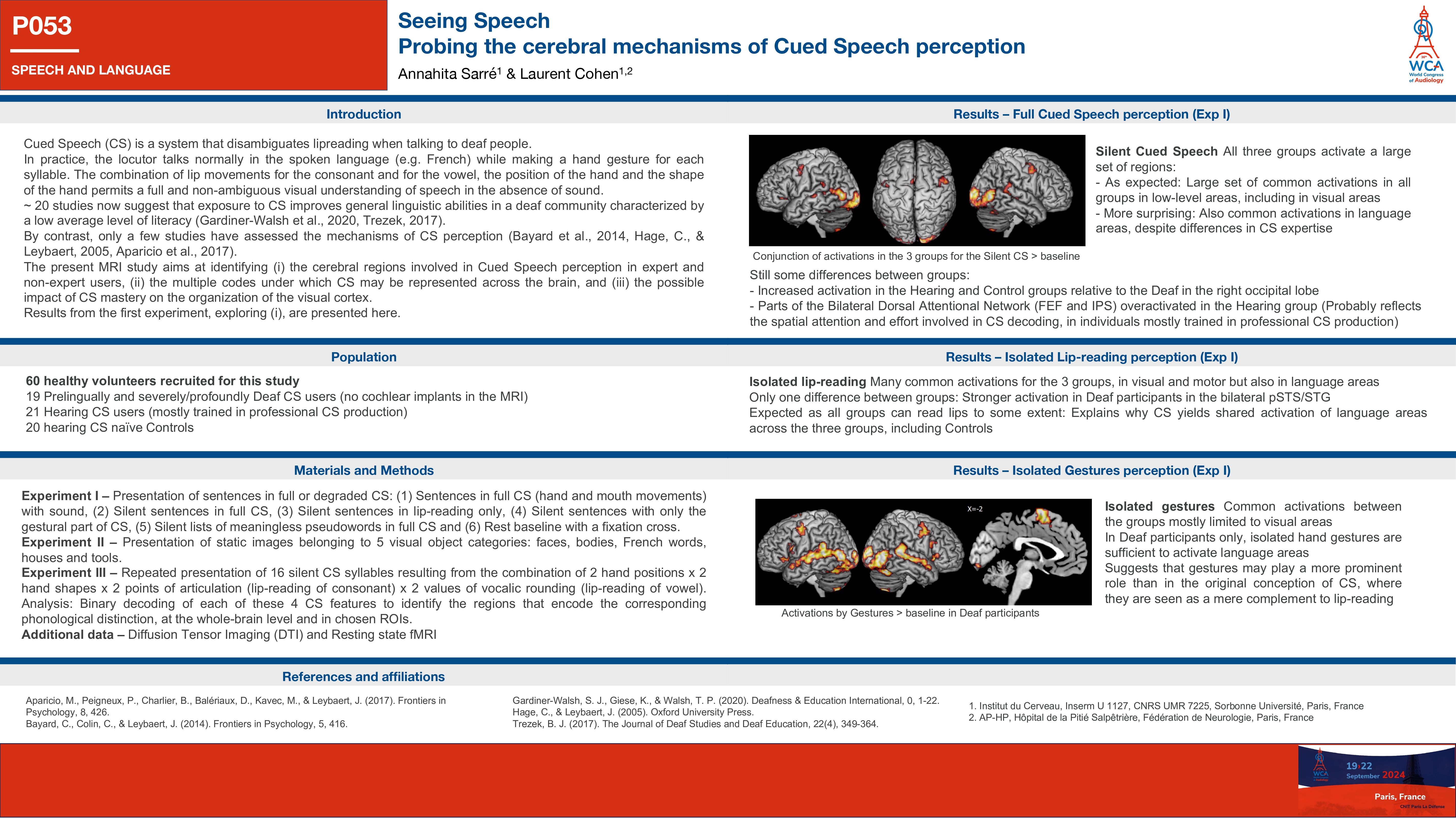 | P053 – Seeing Speech: Probing the cerebral mechanisms of Cued Speech perception | Speech and Language | speech-and-language | |