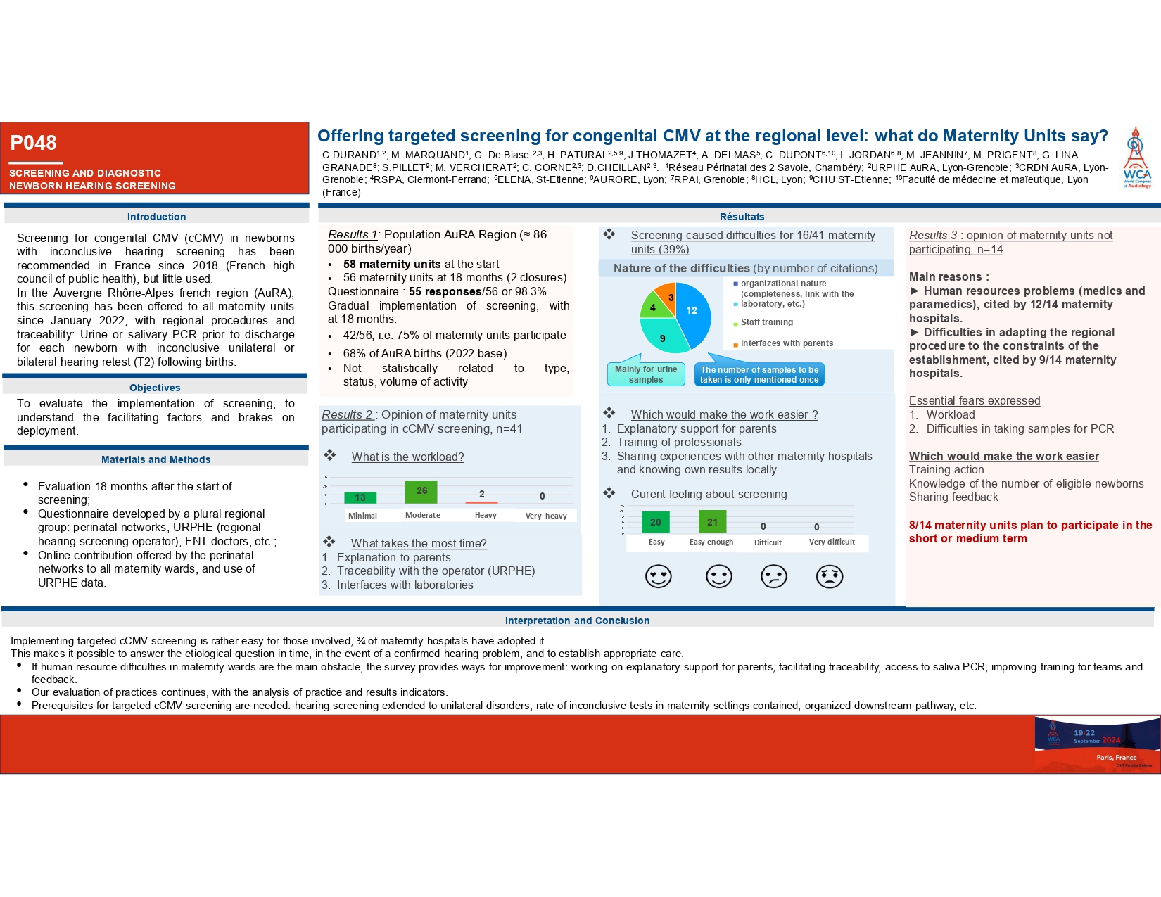 | P048 – Offering targeted screening for congenital CMV at the regional level: what do Maternity Units say? | Screening and Diagnostic | screening-and-diagnostic | |