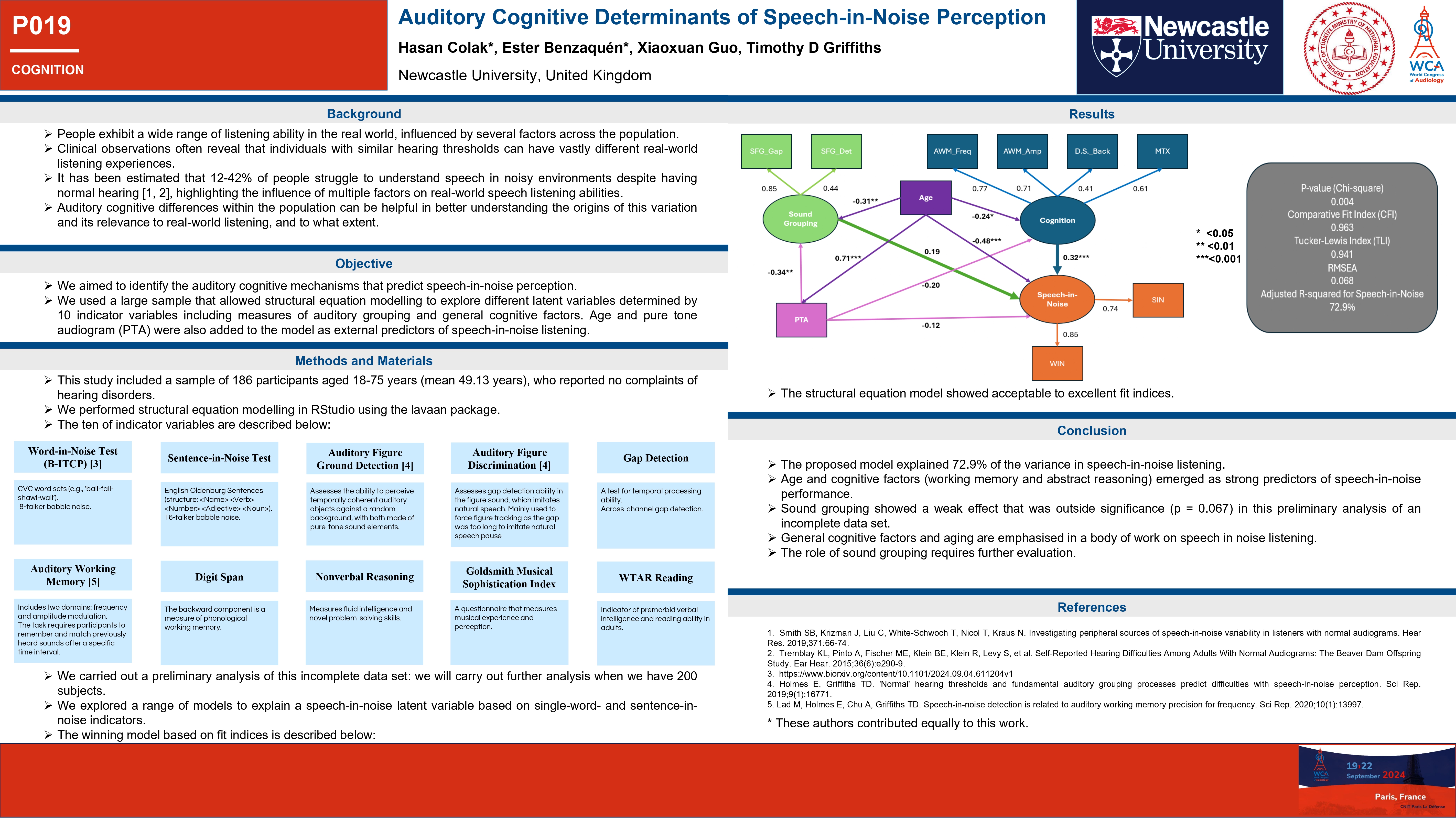 | P019 – Auditory Cognitive Determinants of Speech-in-Noise Perception | Basic and Translational Research | basic-and-translational-research | |
