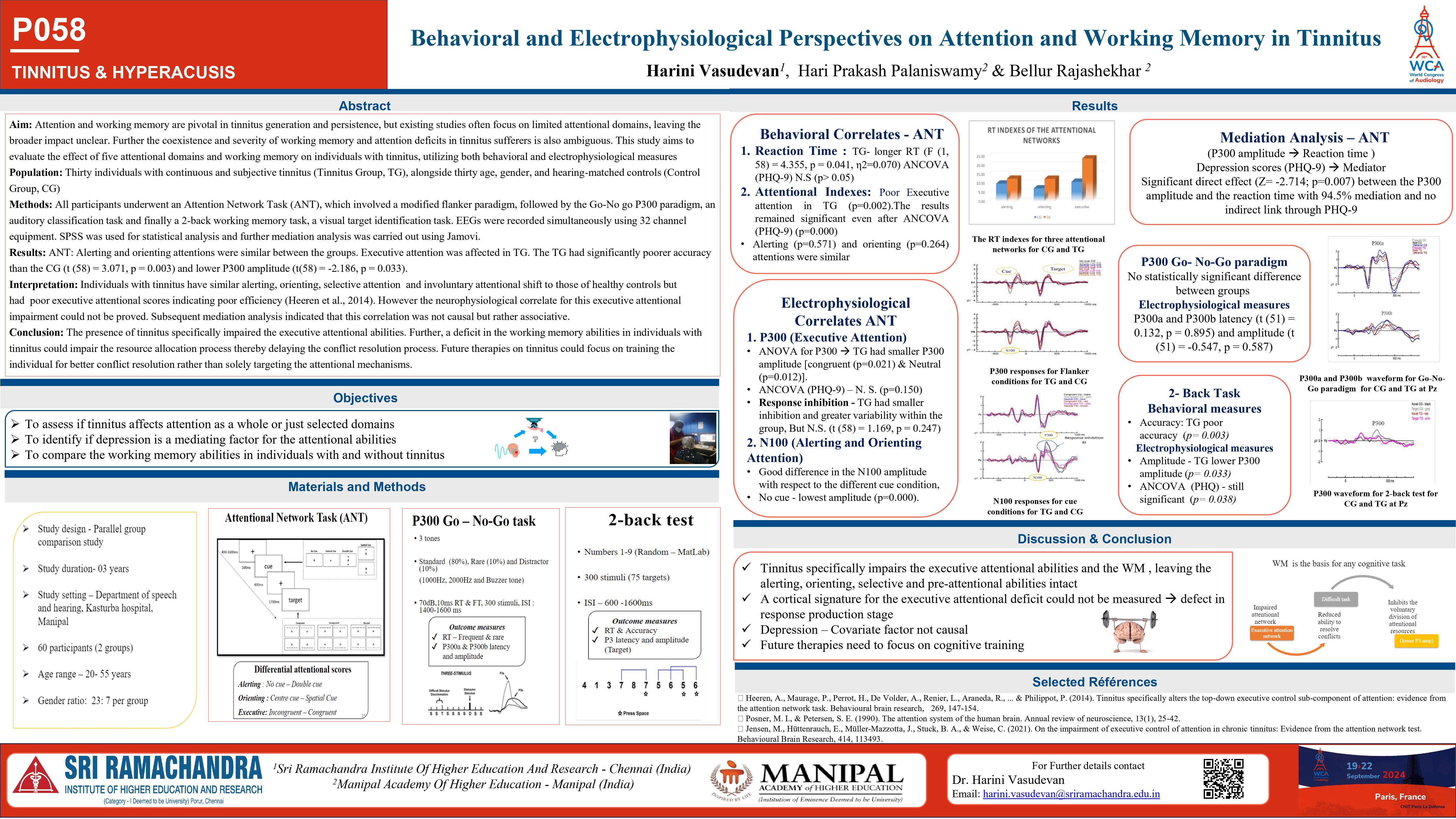 | P058 – Behavioral and Electrophysiological Perspectives on Attention and Working Memory in Tinnitus | Tinnitus and Hypercusis | tinnitus-and-hypercusis | |