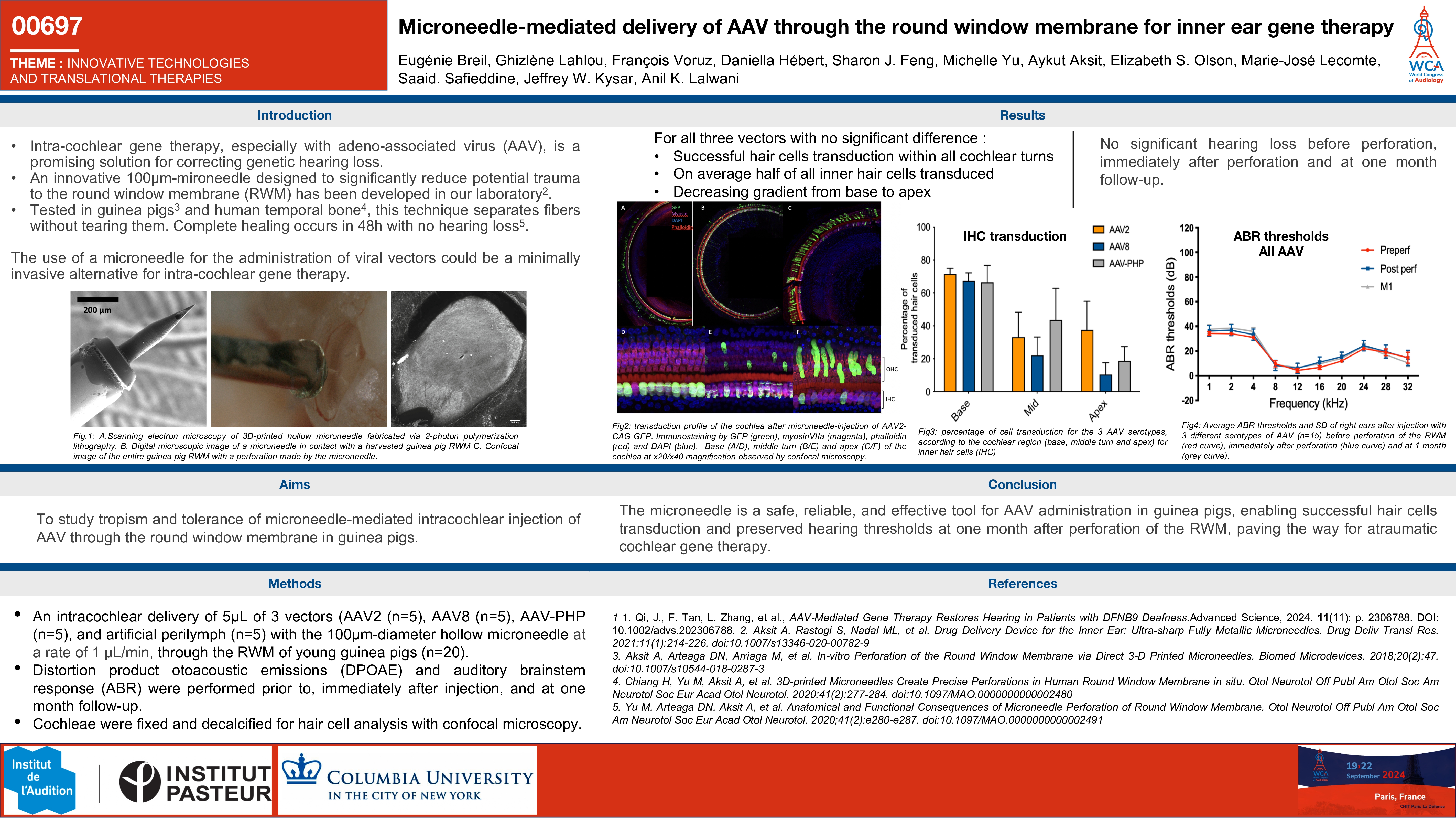 | P036 – Microneedle-mediated delivery of AAV through the round window membrane for inner ear gene therapy | Innovative Technologies and Translational Therapies | innovative-technologies-and-translational-therapies | |