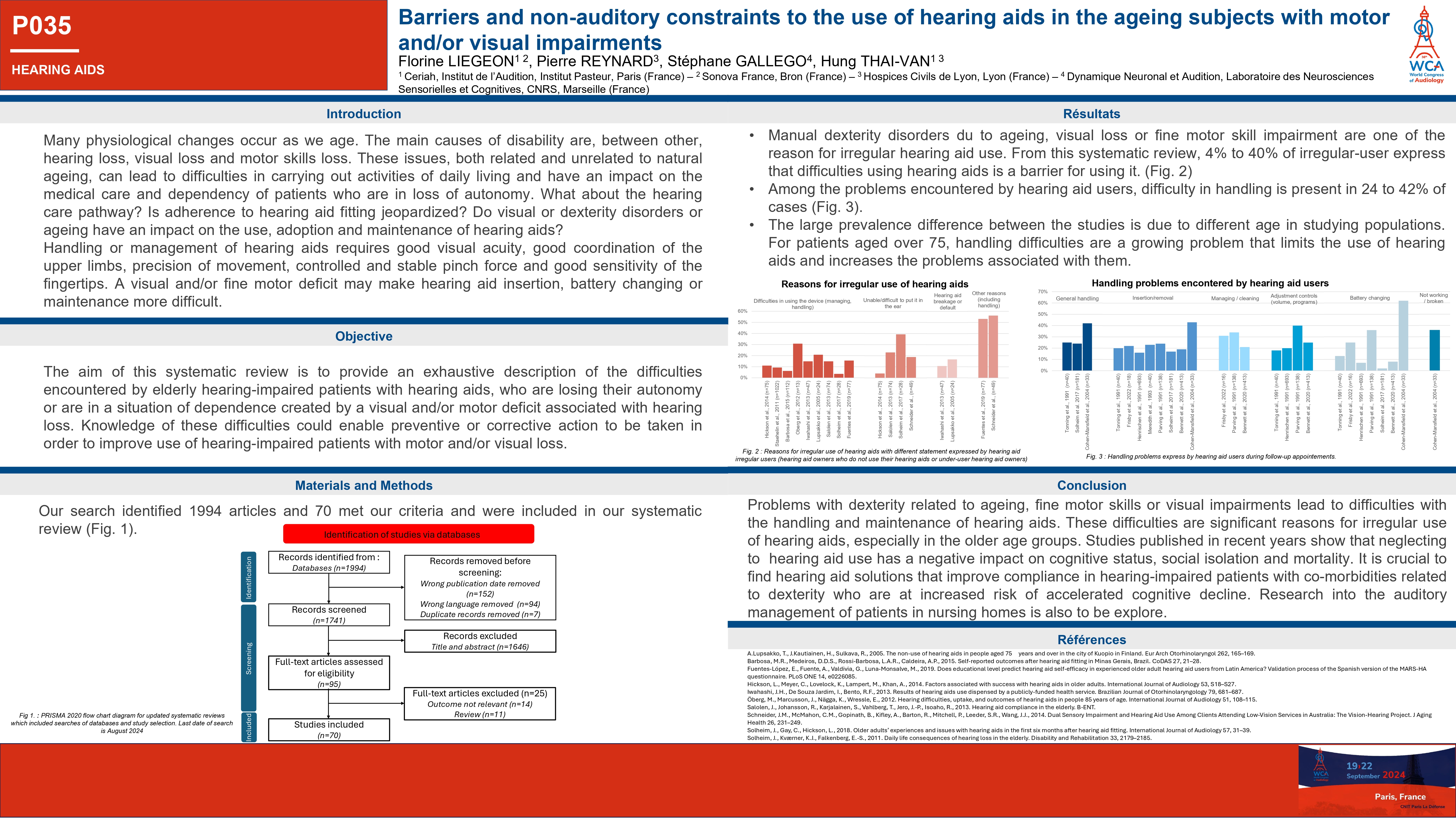 | P035 – Barriers and non-auditory constraints to the use of hearing aids in subjects with motor and/or visual impairments | Hearing aids | hearing-aids | |