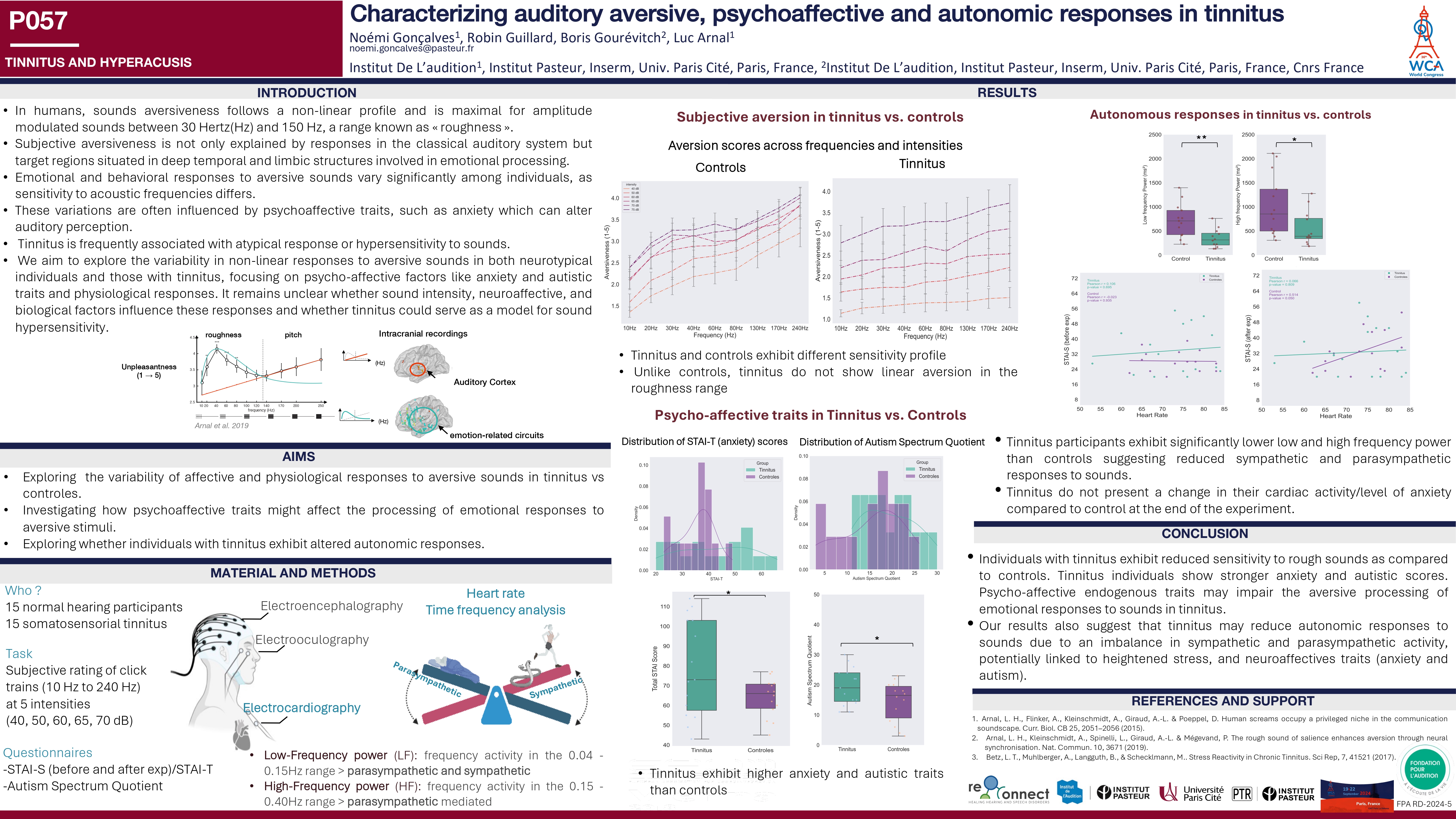 | P057 – Rough sounds processing: effects on autonomic, behavioral and neural responses in population with heightened sensitivity to sounds | Tinnitus and Hypercusis | tinnitus-and-hypercusis | |