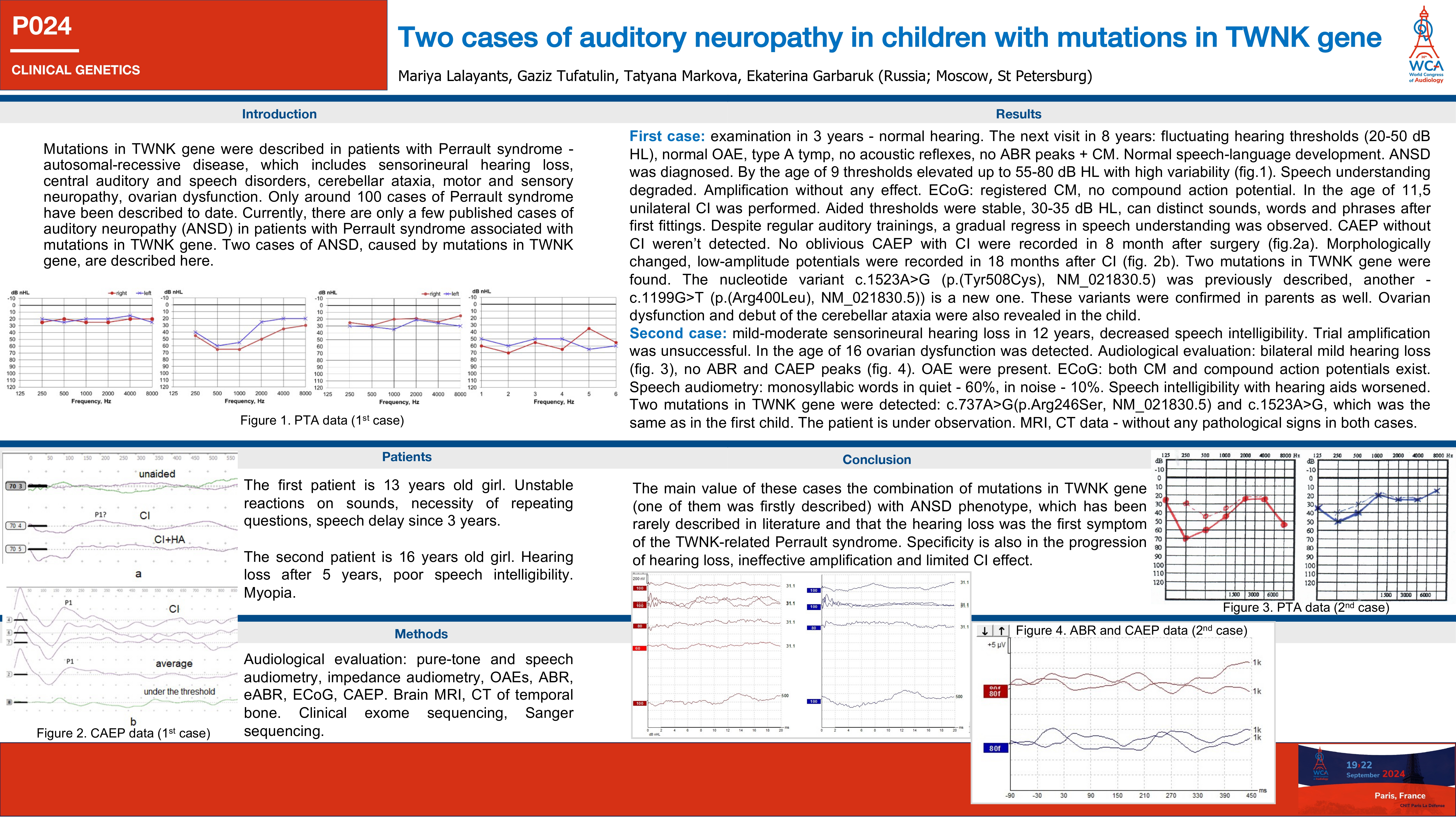 | P024 – Two cases of auditory neuropathy in children with mutations in TWNK gene | Clinical Genetics | clinical-genetics | |