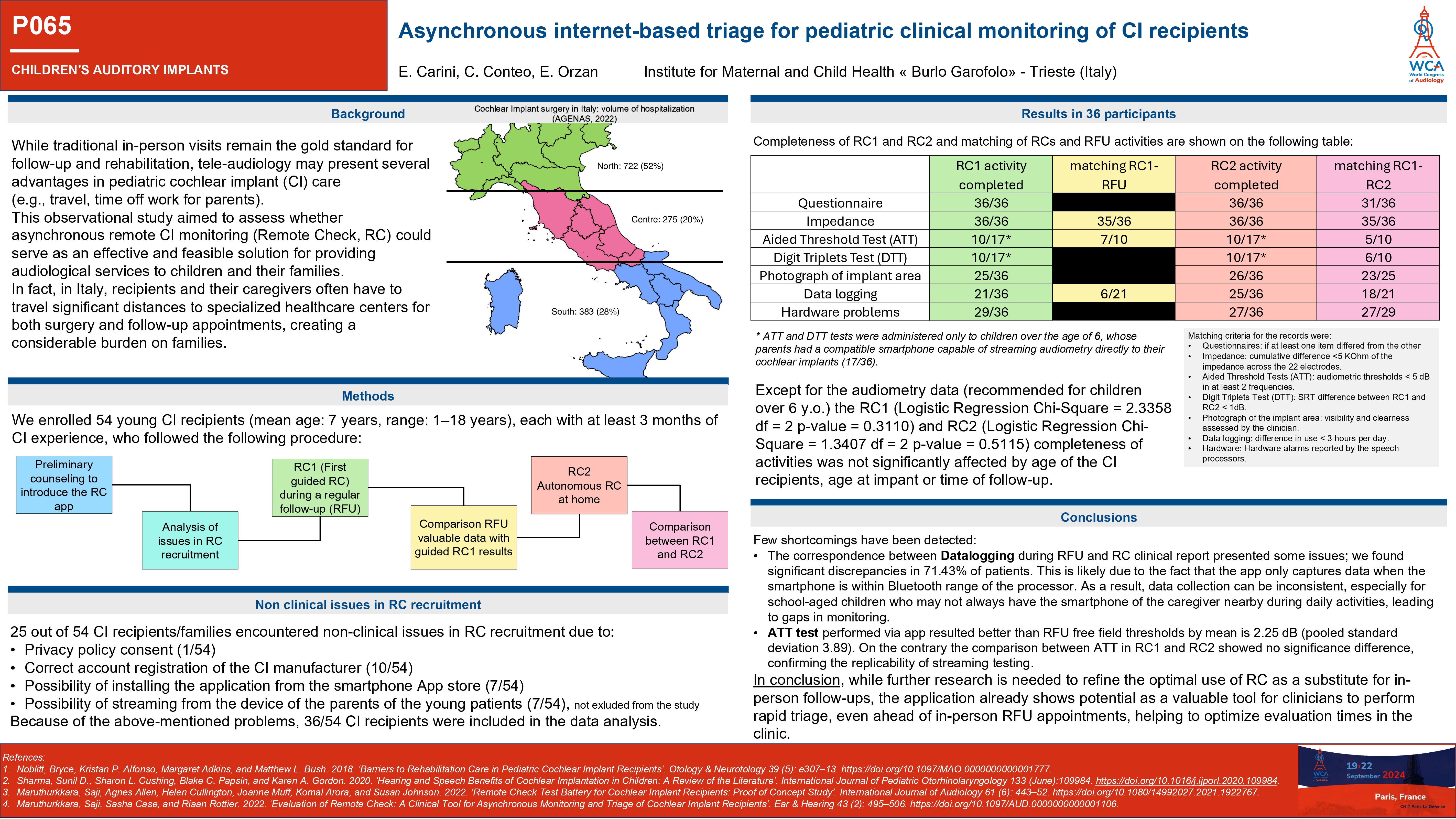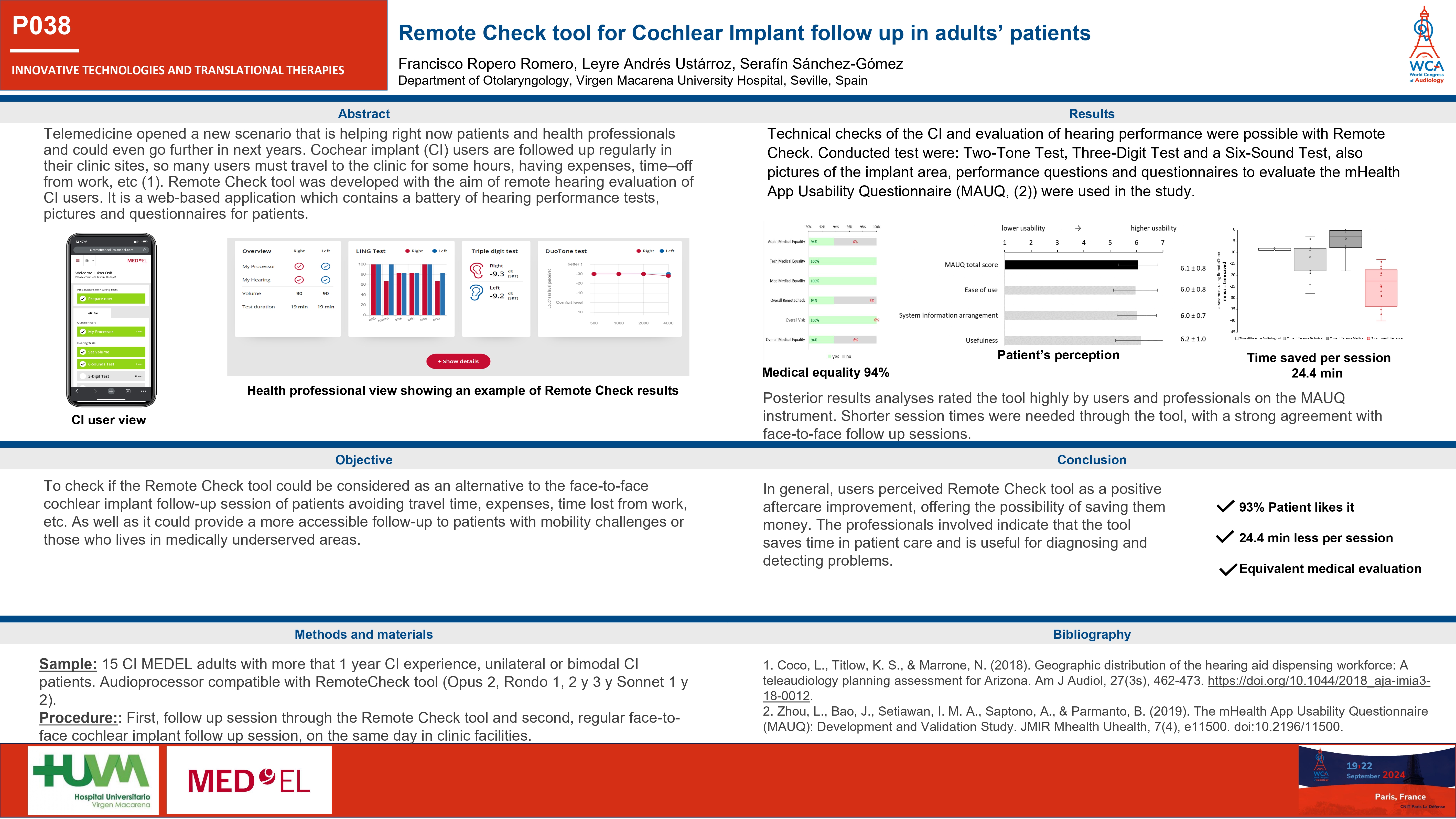 | P038 – Remote Check tool for Cochlear Implant follow up in adults’ patients | Innovative Technologies and Translational Therapies | innovative-technologies-and-translational-therapies | |