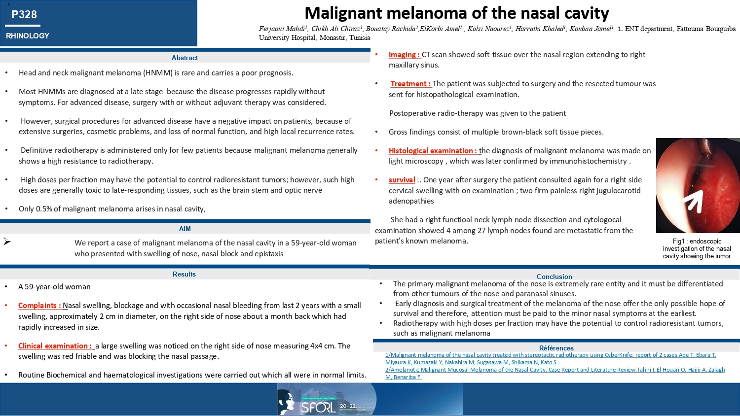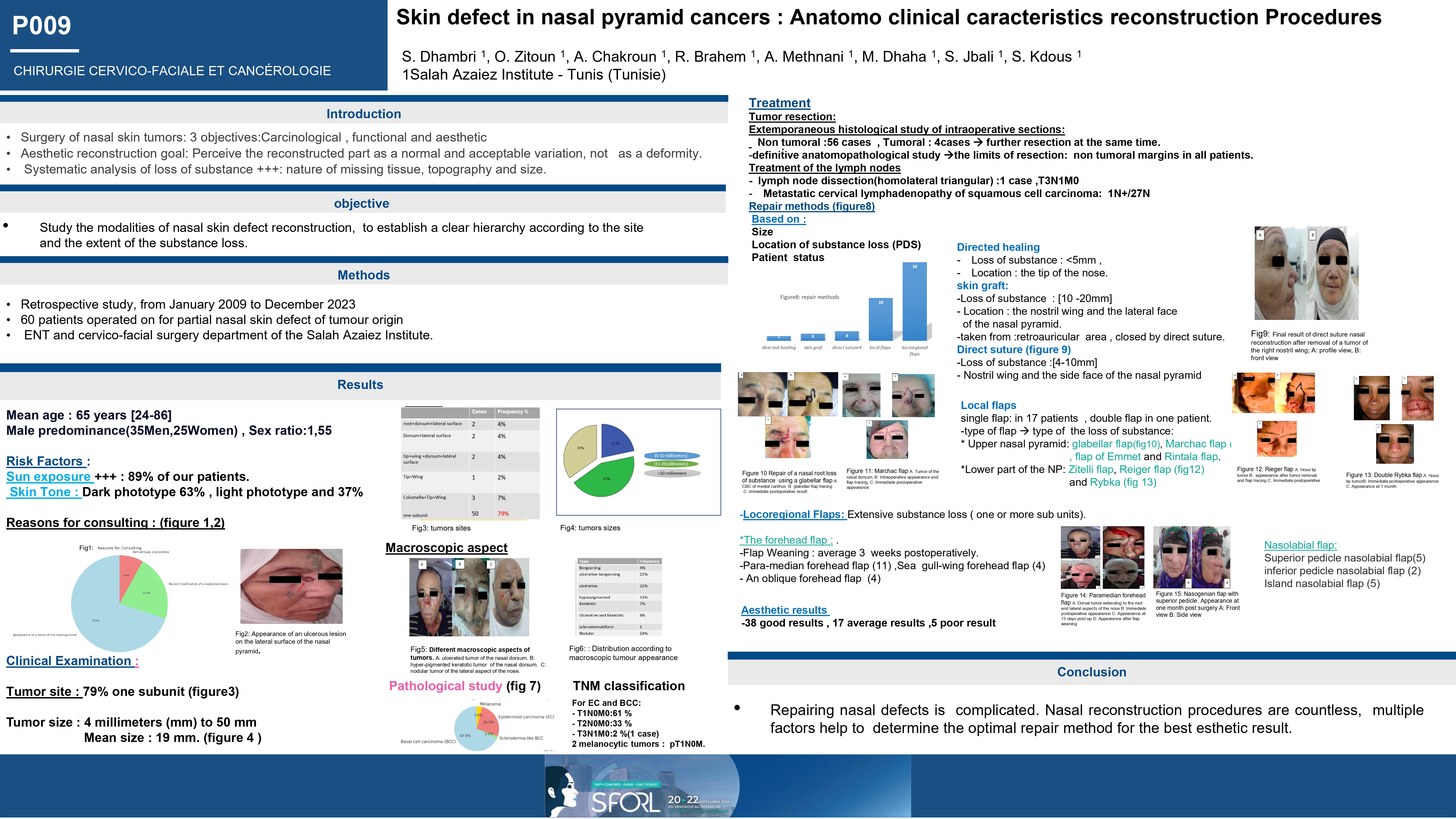 | P009 – Skin defect in nasal pyramid cancers : Anatomo clinical caracteristics reconstruction Procedures | Chirurgie cervico-faciale et Cancérologie | chirurgie-cervico-faciale-et-cancerologie | |