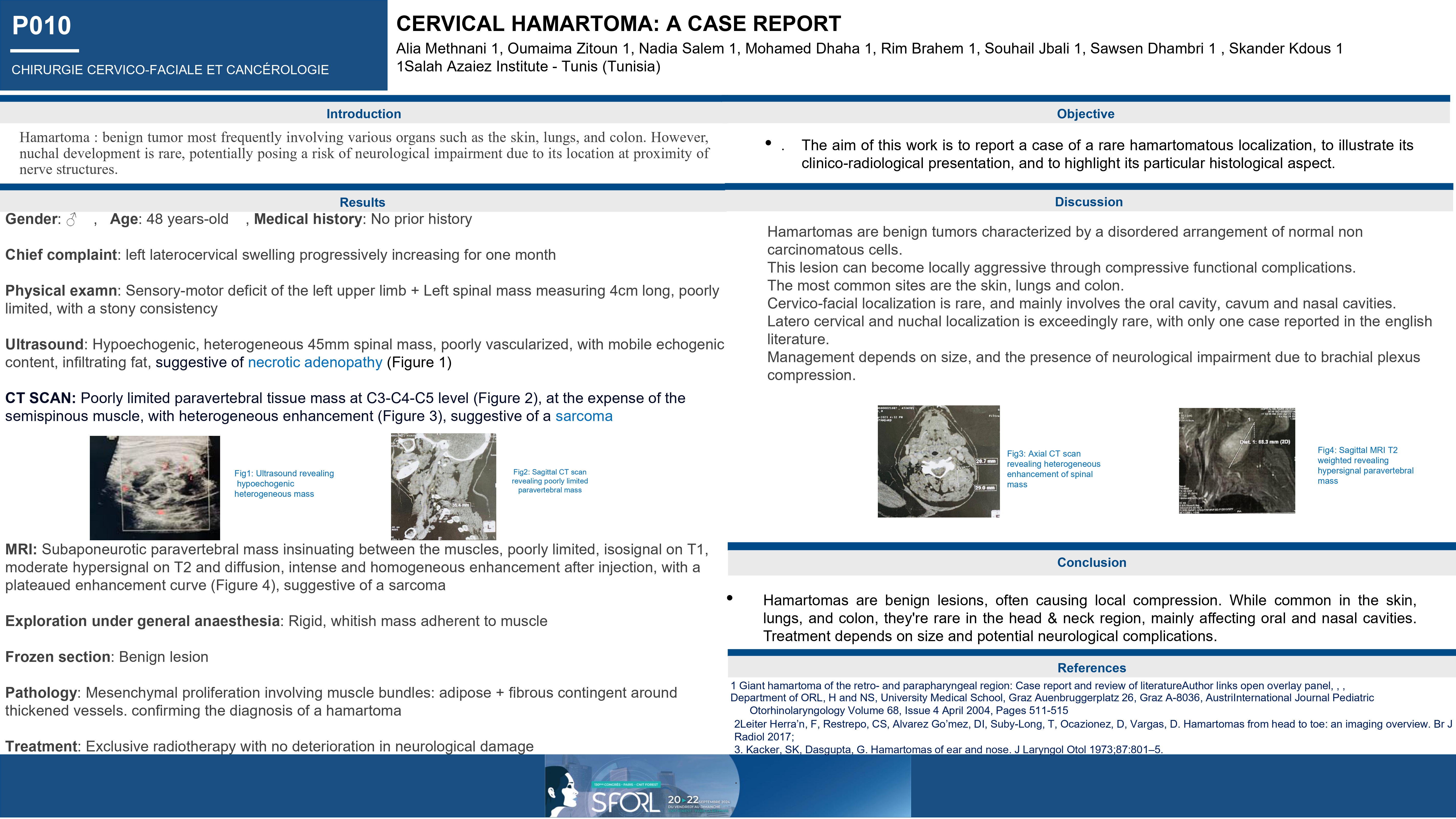 | P010 – Cervical hamartoma: A case report | Chirurgie cervico-faciale et Cancérologie | chirurgie-cervico-faciale-et-cancerologie | |