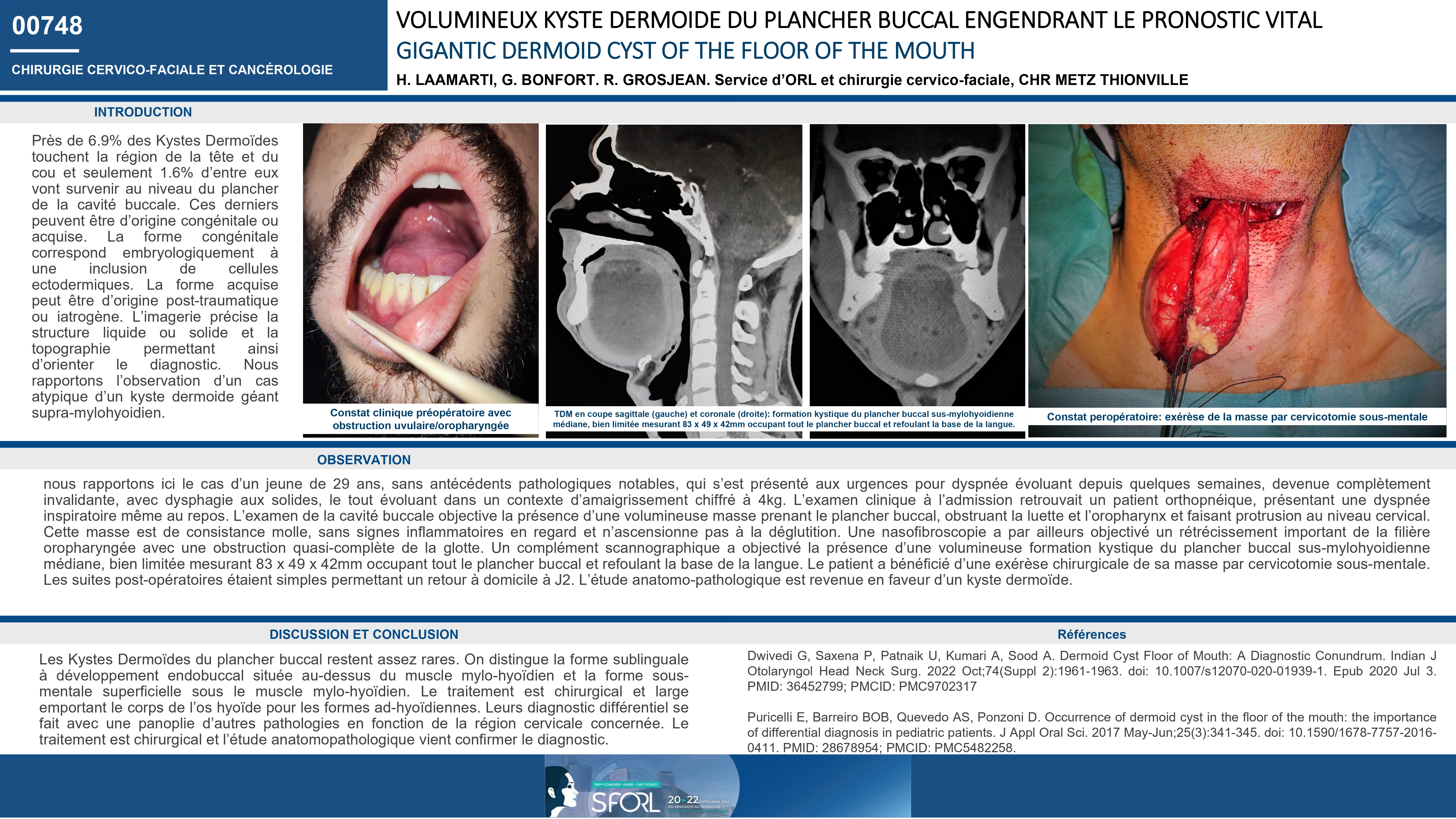 | P027 – Volumineux kyste dermoïde du plancher buccal engendrant le pronostic vital | Chirurgie cervico-faciale et Cancérologie | chirurgie-cervico-faciale-et-cancerologie | |
