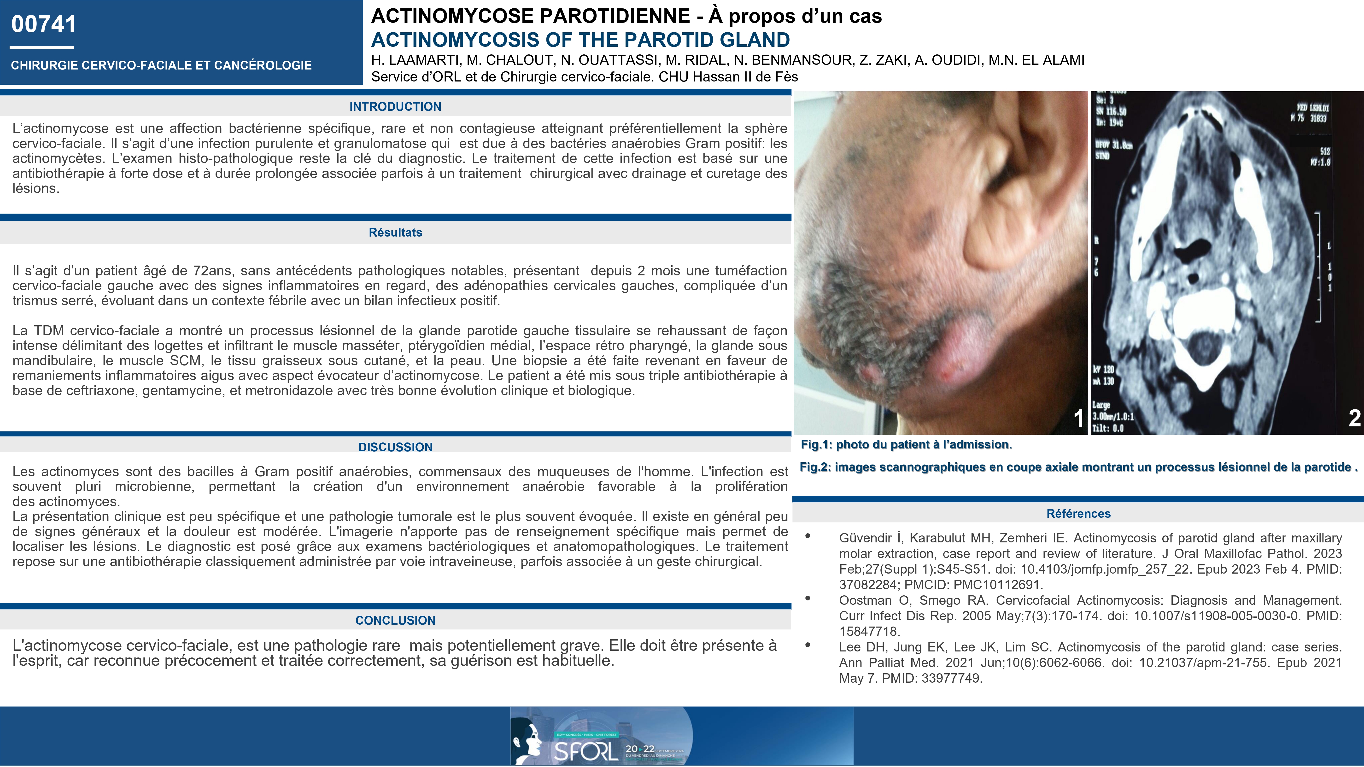 | P028 – ACTINOMYCOSE PAROTIDIENNE – À propos d’un cas | Chirurgie cervico-faciale et Cancérologie | chirurgie-cervico-faciale-et-cancerologie | |