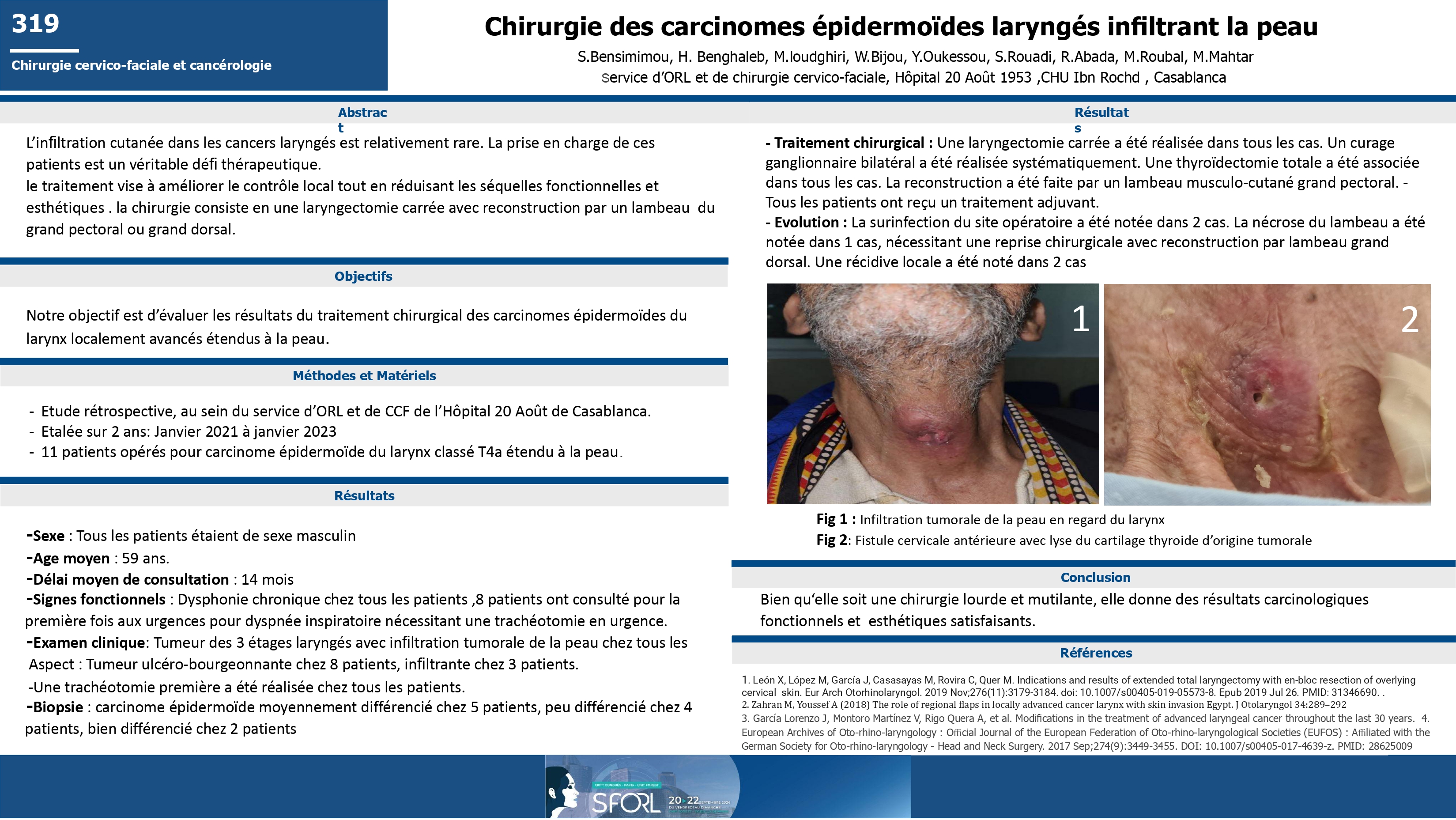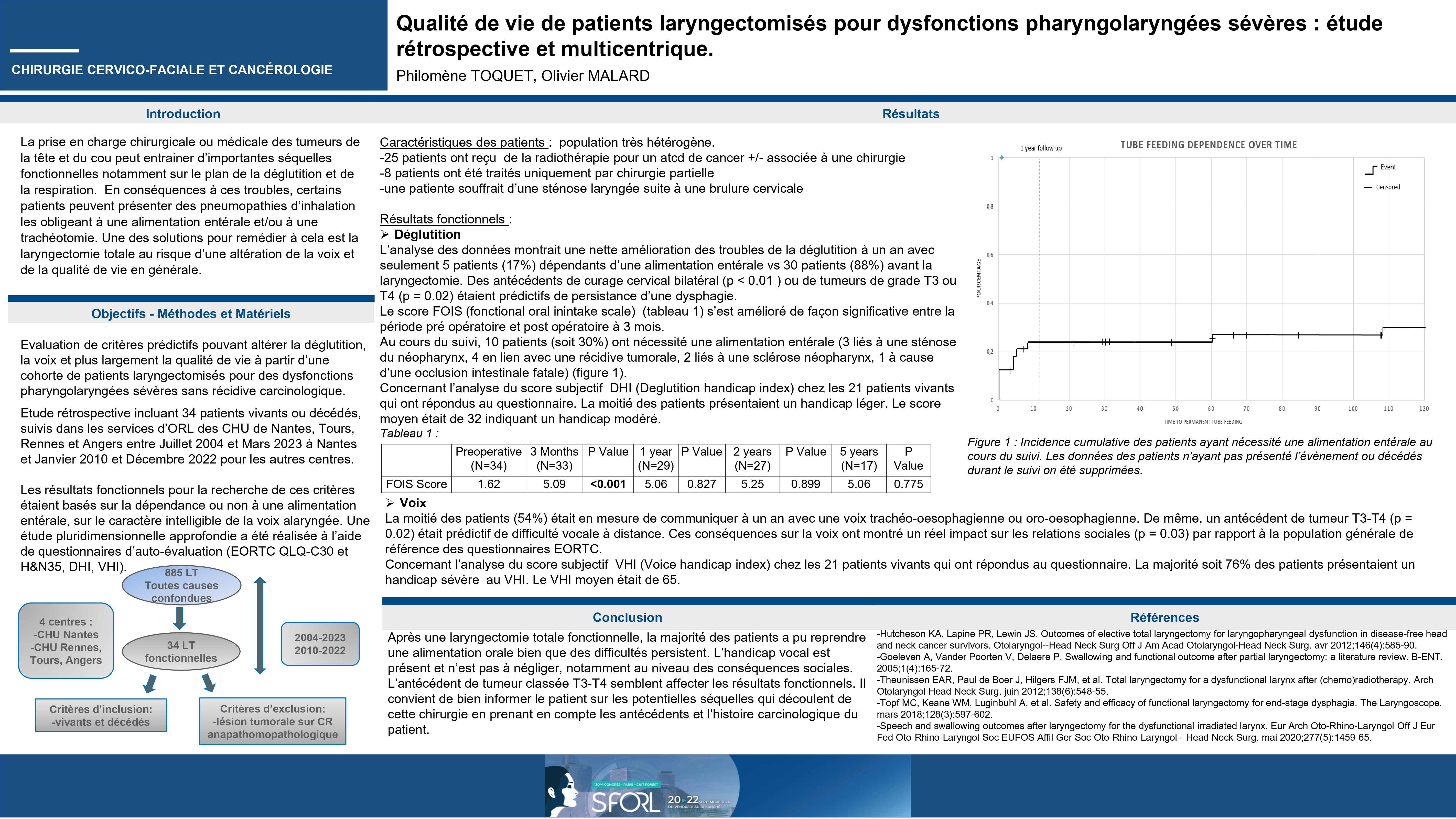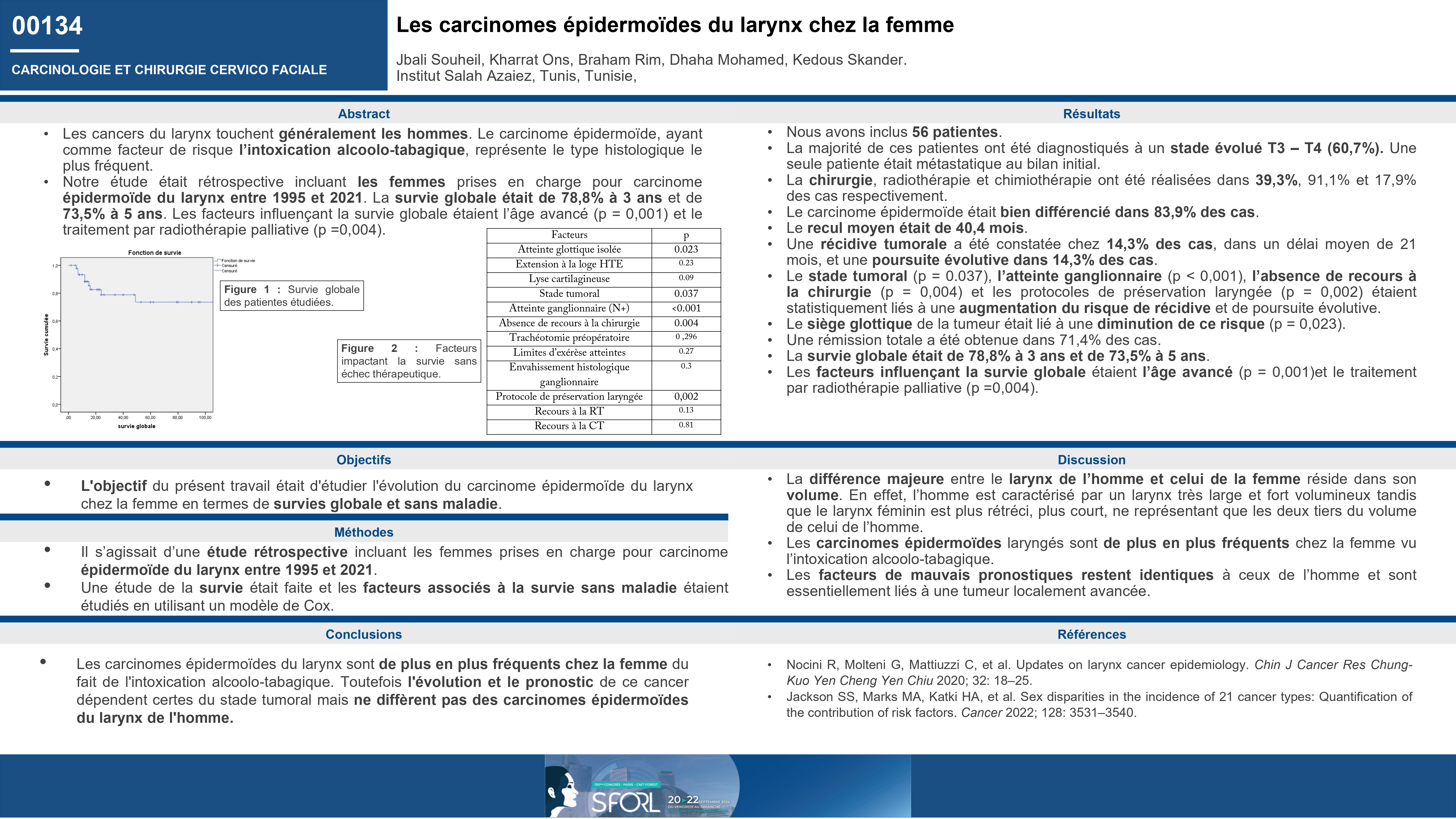 | P032 – Caractéristiques cliniques de la laryngectomie totale chez les sujets âgés | Chirurgie cervico-faciale et Cancérologie | chirurgie-cervico-faciale-et-cancerologie | |