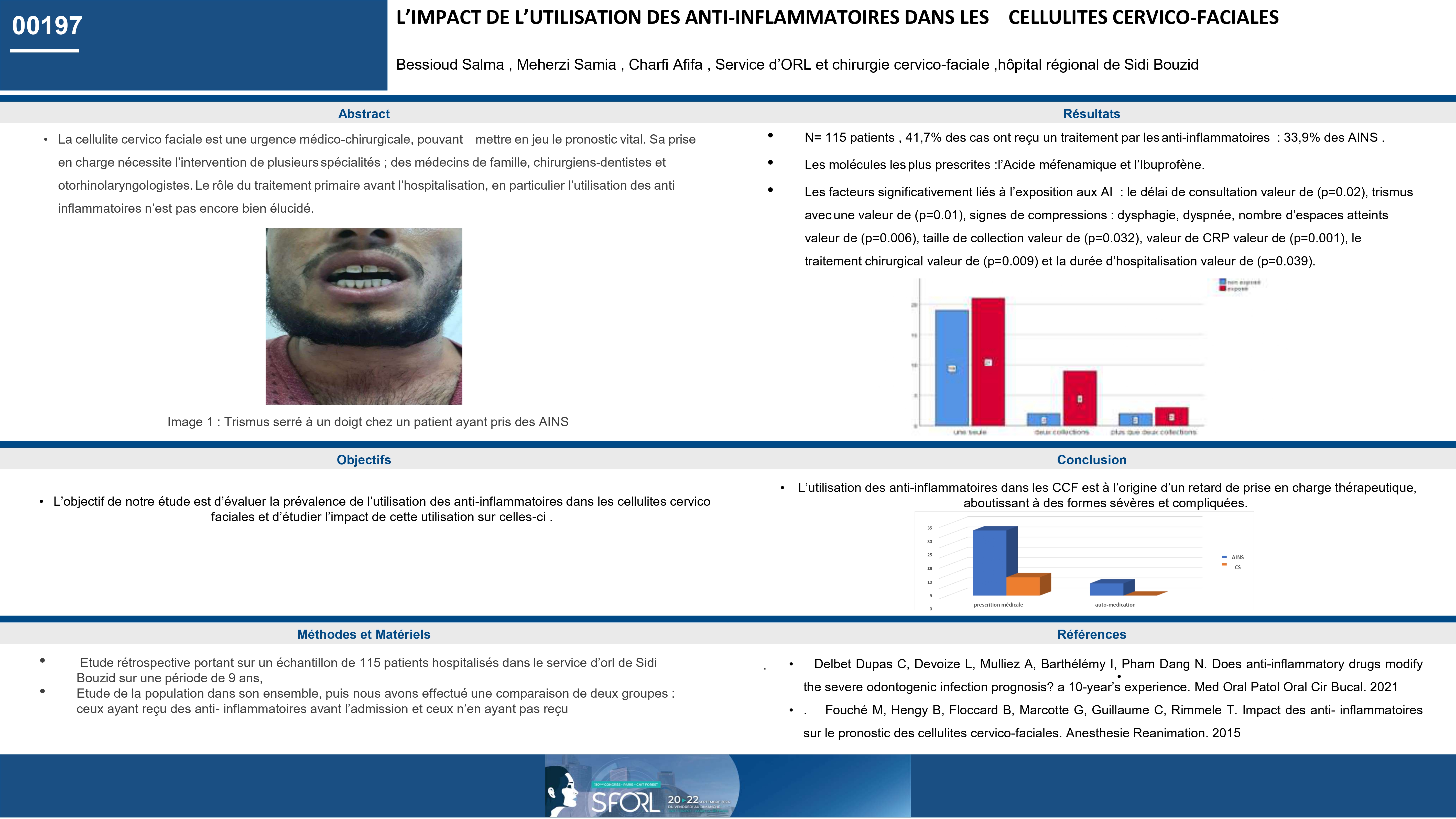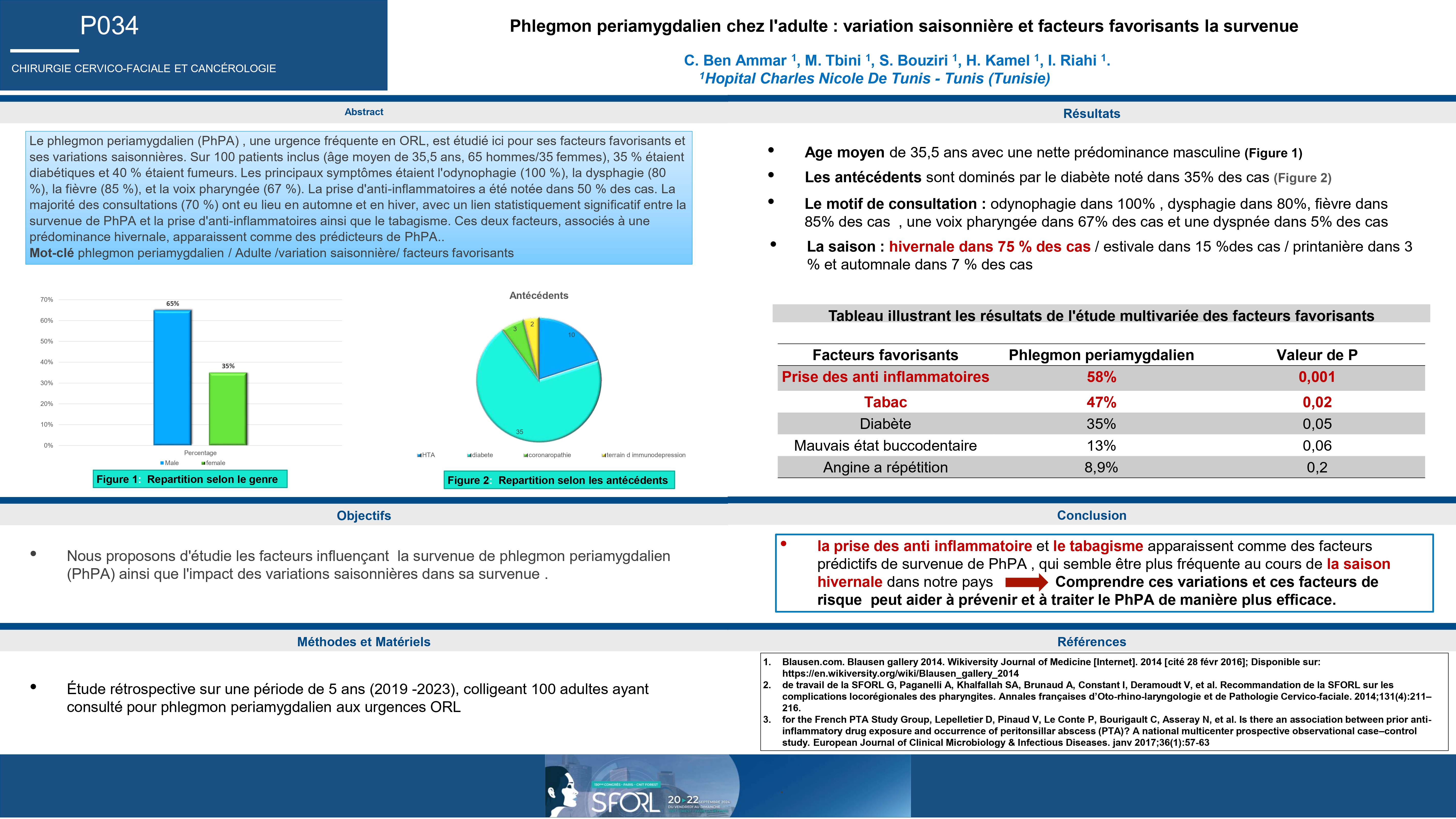 | P034 – phlegmon periamygdalien chez l’adulte : variation saisonnière et facteurs favorisants la survenue | Chirurgie cervico-faciale et Cancérologie | chirurgie-cervico-faciale-et-cancerologie | |